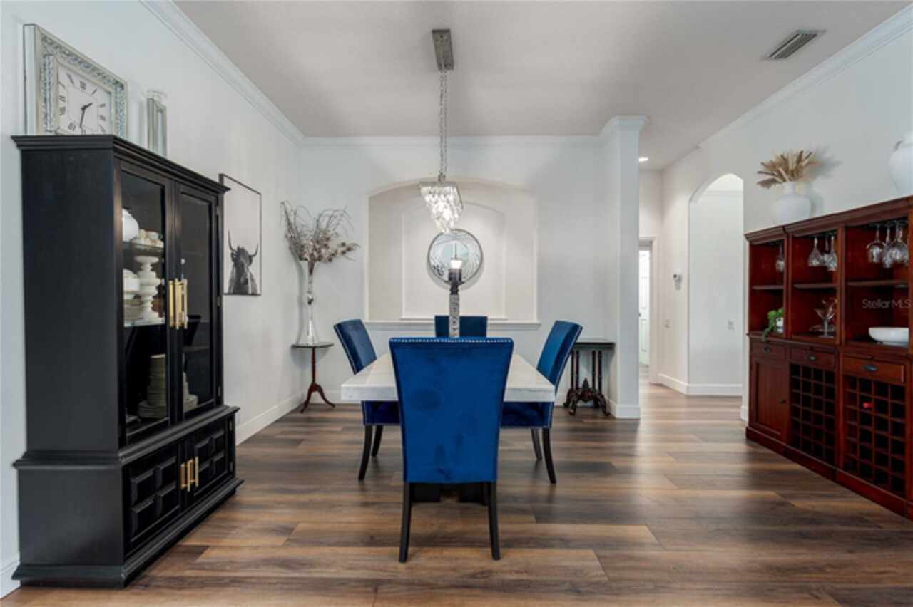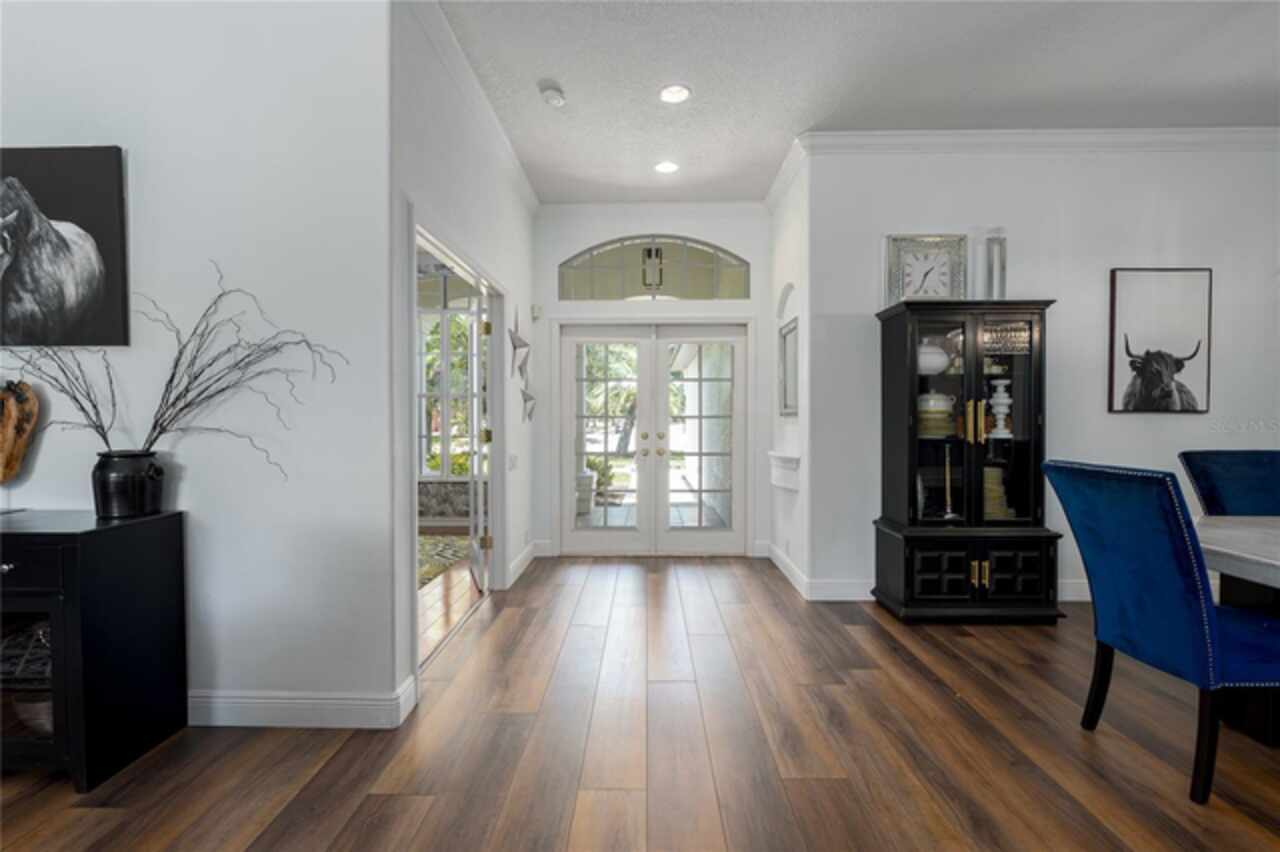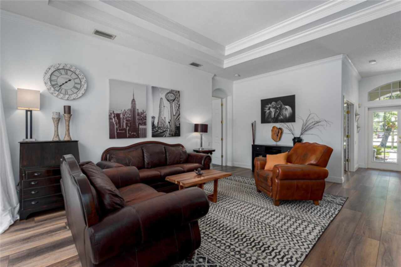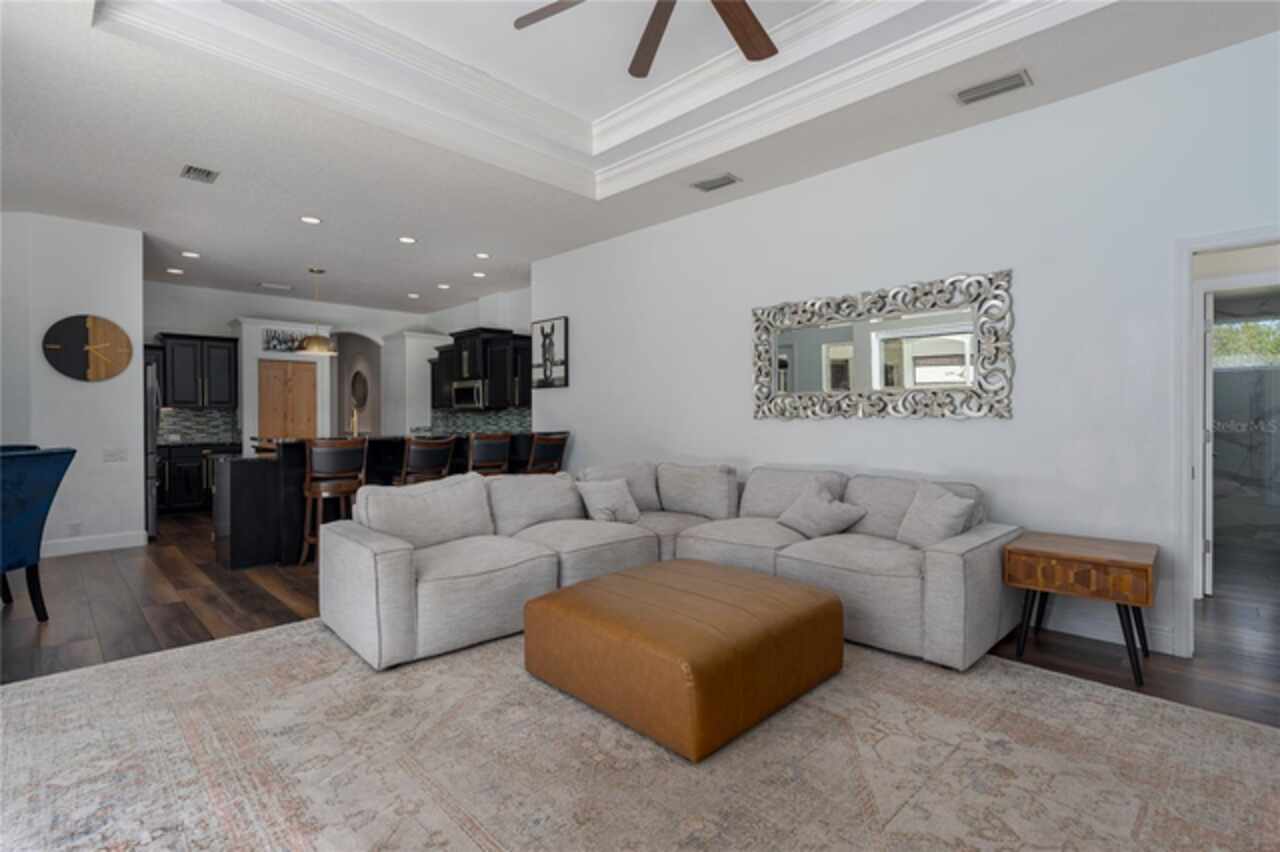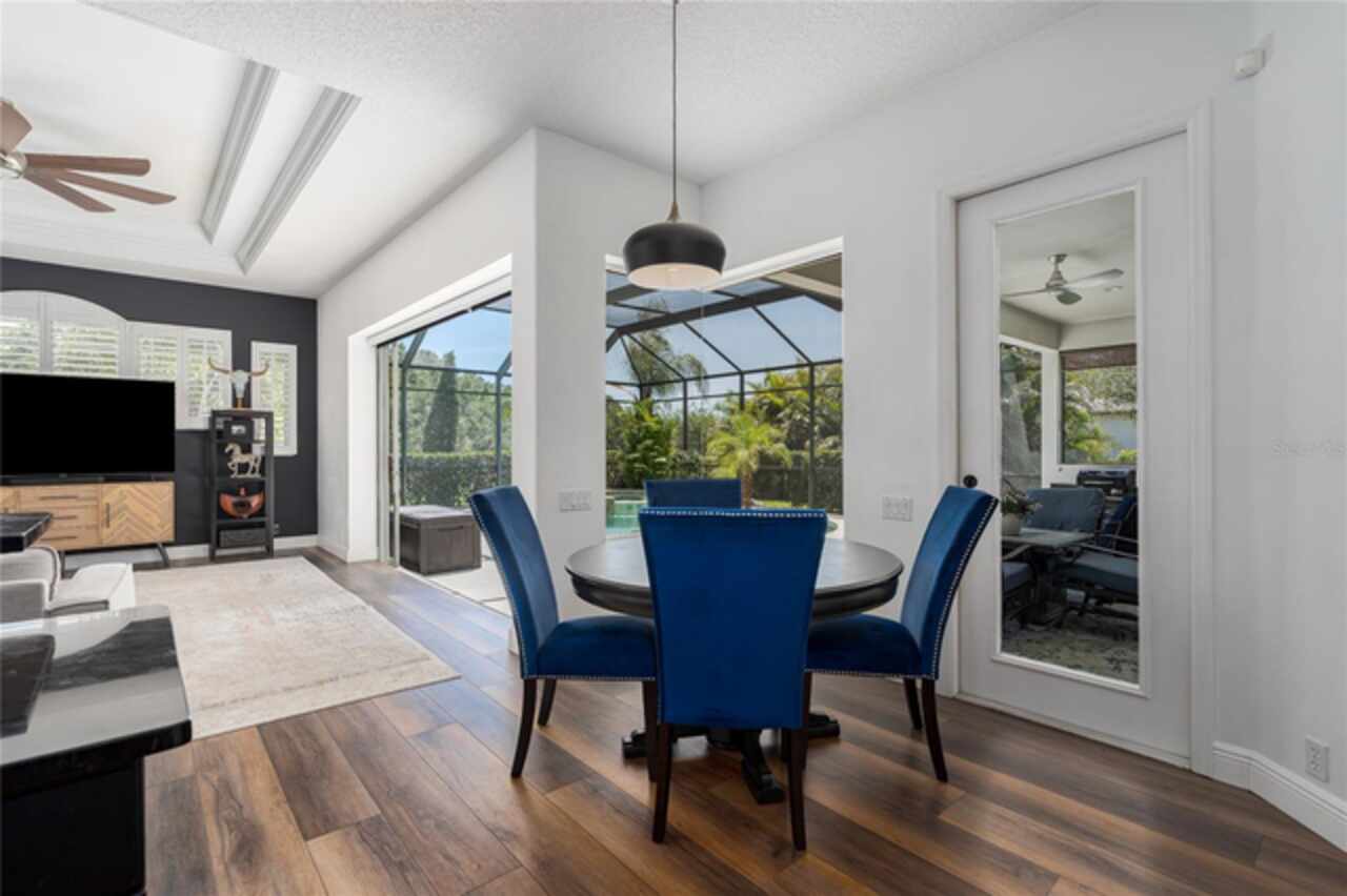 Nestled on a sprawling .72-acre lot with stunning preserve and water views, this spectacular, spacious contemporary gem, designed and built by local custom builder Arthur Rutenberg, stands as a testament to elegance, innovative design and quality. Built in 2004, the home features an open floor plan that seamlessly blends indoor and outdoor living. This extraordinary property has outstanding curb appeal, side entry three-car oversized garage with attic storage and an expansive driveway. The exterior was freshly painted in 2020, Roof 2022, and HVAC 2017. Upon entering the home, note the exquisiteness of arched doorways, decorative art niches, double tray ceilings, crown molding and 10-foot ceilings. The open floor plan features 4 Bedrooms, 3 Bathrooms, an Office, Formal Dining and Living Rooms. Recent upgrades include new luxury vinyl floors throughout the living areas and new carpet in the bedrooms, pool and guest bathrooms totally updated including new flooring, tile, sinks & hardware, glass shower doors, toilets and lighting. The Lanai was repainted, is plumbed for an outdoor kitchen, new lighting in all rooms and the Laundry Room has a new sink, countertop and hardware. The Kitchen is a chef’s delight with new black stainless-steel appliances, double ovens, stone countertops, wood cabinets, plenty of counter space and an island for additional food preparation area. The Dinette with an aquarium window overlooks the Pool area. The huge Family Room has direct access to the Pool area through pocket sliders that have new motorized blinds. Adjoining the Family Room is a large private bedroom or an in-law/teen suite with full bath and private entry. It also serves as the pool bath. The floor plan provides ample space for relaxing and entertaining formally in the Dining and Living rooms and working at home in the private Office. The Primary Bedroom is enormous, has private access to the pool area and features dual sinks, walk-in-closet, garden tub, and separate walk-in shower. This beautiful home offers an unparalleled living experience, combining aesthetic beauty with practical upgrades. Its unique features and recent improvements make it a standout property in Twin Rivers. Twin Rivers subdivision offers residents reclaimed water for irrigation, a private boat launch to the Manatee River, kayak/canoe racks, community park, picnic tables, fishing dock, basketball court, volleyball, soccer and playground. HOA fees are reasonable and there is no CDD. Schedule your private showing soon!