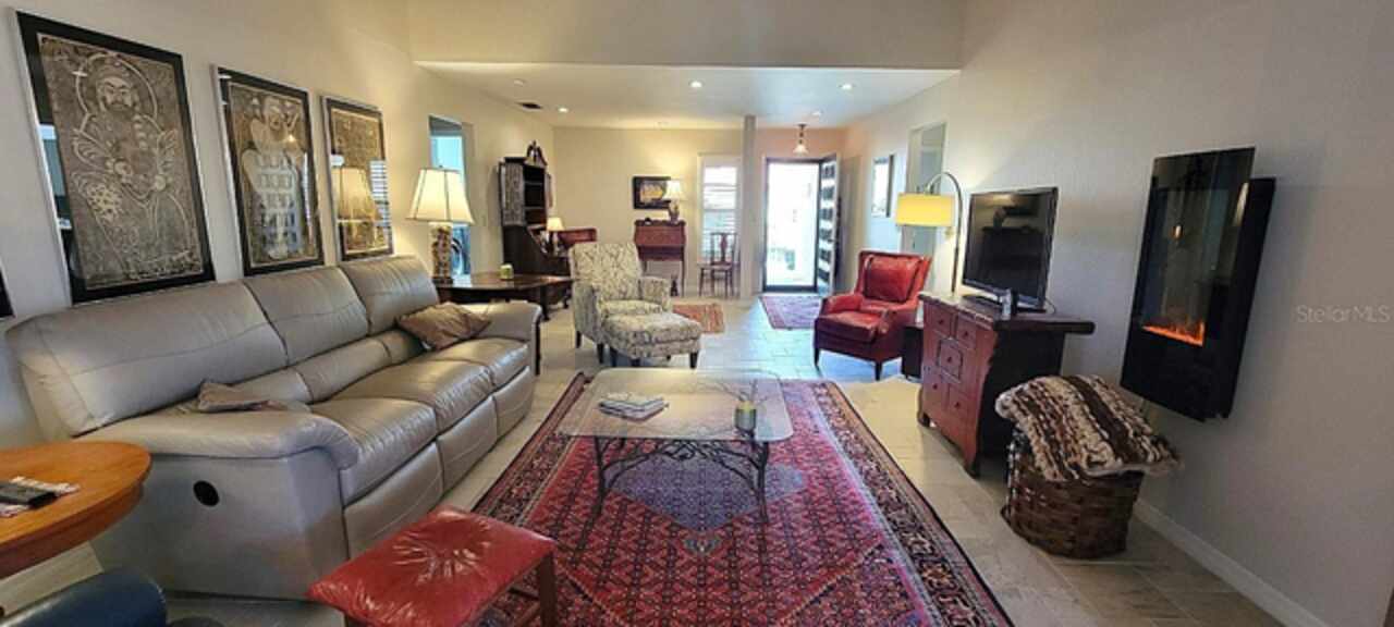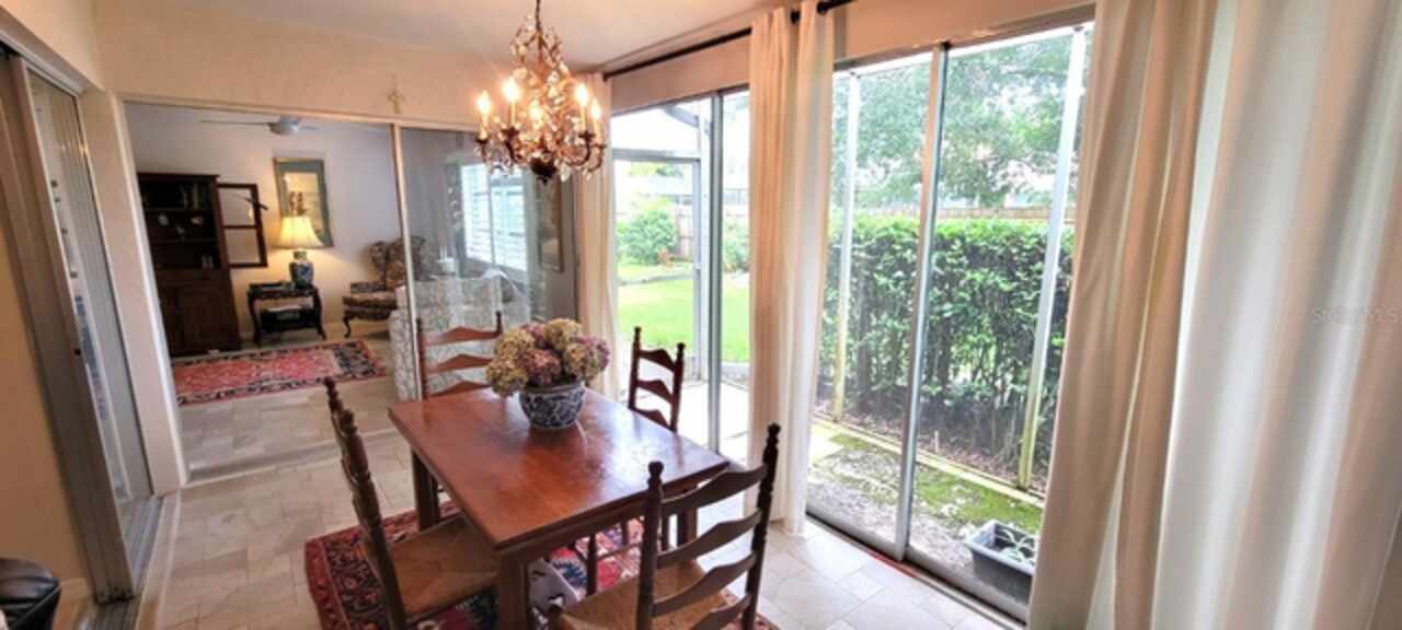 Charming villa in Village Plaza in the heart of Sarasota! This lovely ground-floor villa boasts vaulted living room ceiling, fresh paint, updated lighting, handsome expresso cabinetry, and neutral beige counter tops in the kitchen with stainless steel appliances, The updated neutral tile flows throughout the space. Relax in the sunroom overlooking a private green garden area with no rear neighbors. Additional features include a bright family room, a cozy screened patio, a dining area, and an indoor laundry room. The primary bedroom is very spacious with walls of closets in the dressing area and bathroom. Notable features/upgrades include custom shutters, raised-panel interior doors, custom closet shelving in primary closets and laundry room, newer water heater, an insulated garage door, and most popcorn ceilings replaced with flat ceilings. This has a slightly oversized 2-car garage as well. Village Plaza now features a mostly updated clubhouse! There is a large clubroom with kitchen, a billiards room, sauna, exercise room, shuffleboard, large library, heated swimming pool plus a grill area and tables for community gatherings. Village Plaza is close to all that Sarasota has to offer including I-75 (3.5 miles), Sarasota Memorial Hospital (3.5 miles), downtown Sarasota (4.5 miles), and Siesta Key (3.5 miles). This villa is only a short distance to Walgreen's, Publix, Starbuck's, restaurants, shopping, banks, and gym! Welcome to Village Plaza. An over 55 Community with many, many activities and clubs, including cards, book club, planned dinners and social events, and cruises!