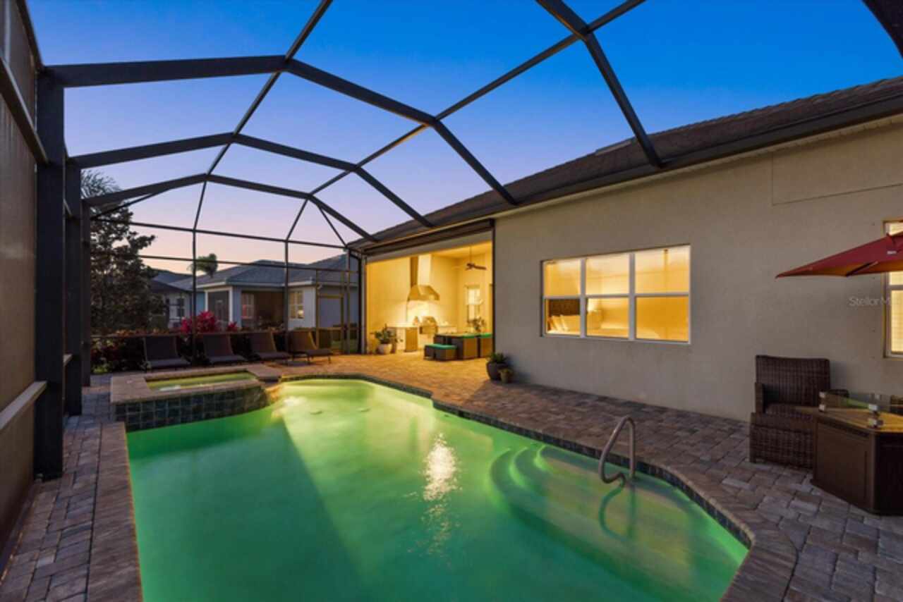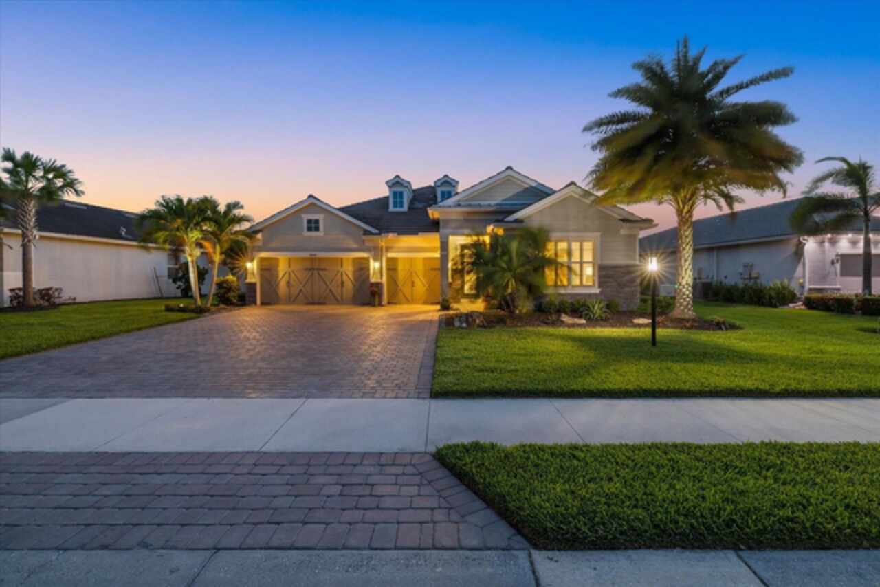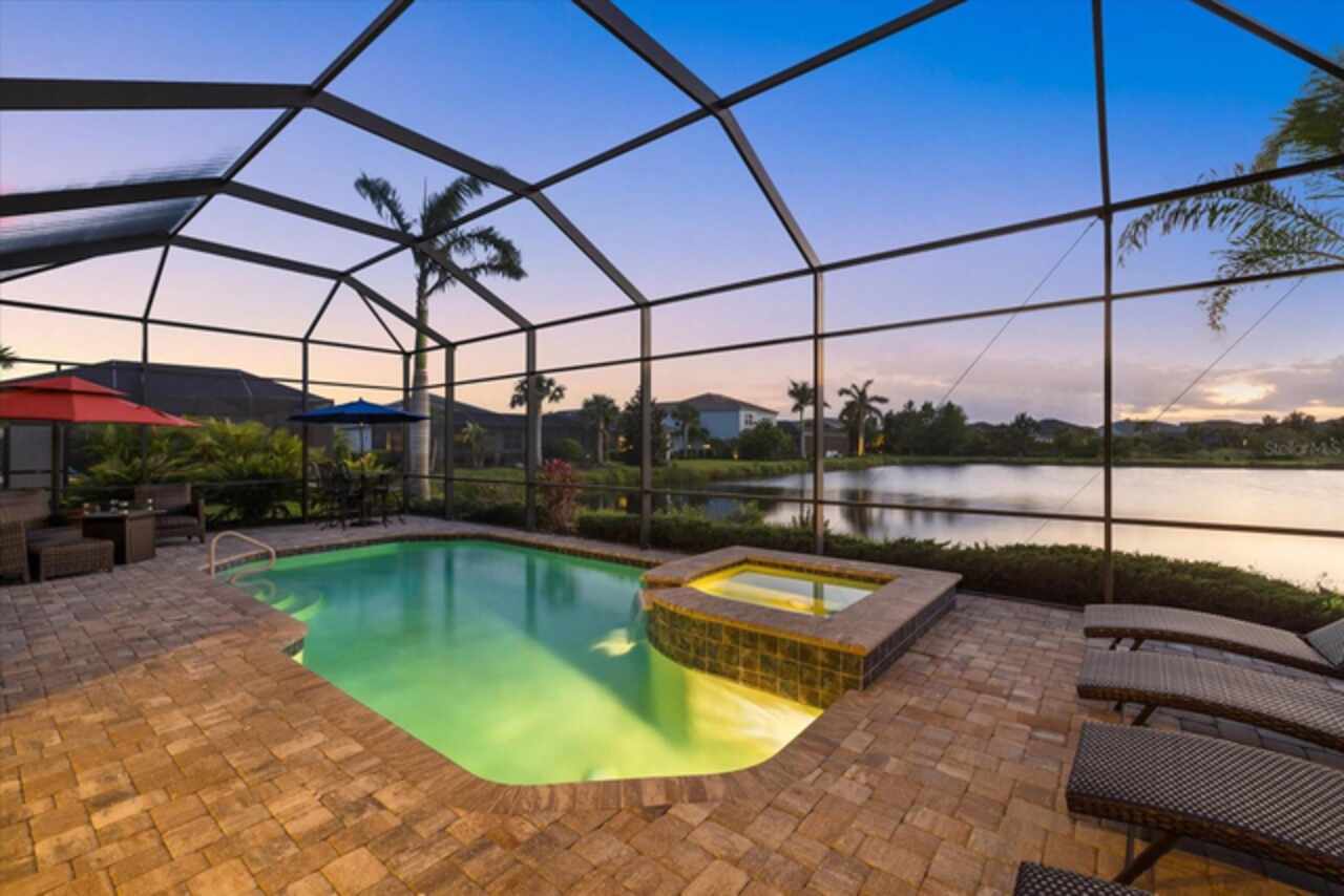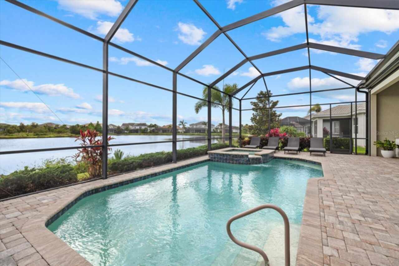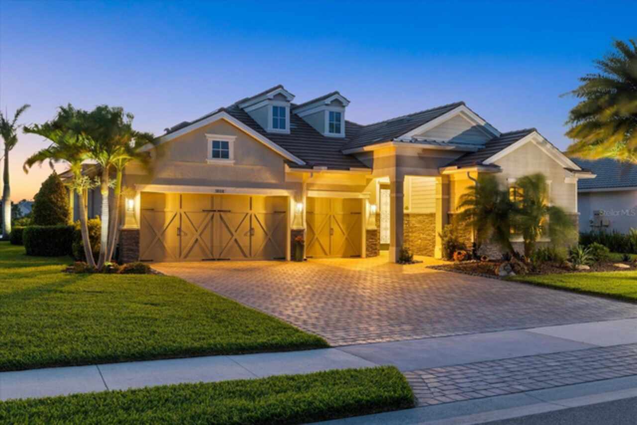 Stunning Single-Story Home on Premier Lot in Mallory Park at Lakewood Ranch. Welcome to your dream home in the heart of Lakewood Ranch, nestled within the highly sought-after village of Mallory Park. Perfectly positioned on arguably the best lot in the neighborhood, this 3-bedroom, 3-bathroom home with a versatile flex space offers breathtaking sunset and tranquil water views that will take your breath away. Step inside to discover an impressive great room with soaring 12-foot ceilings, creating an open and airy feel that's perfect for both everyday living and entertaining. The chef’s kitchen is the centerpiece, featuring a large island, ample cabinetry, and generous dining space—ideal for hosting family and friends. Tucked away in the rear of the home for ultimate privacy, the primary suite is a true retreat, offering water views, a tray ceiling, a luxurious en suite bathroom, and a spacious walk-in closet. Guests or family will feel right at home with two additional bedrooms—one featuring its own walk-in closet and private en suite bath. The flex room is a chameleon space—perfect for a media room, home office, game room, or even a fourth bedroom. Additionally, there’s a built-in office nook just off the living area and a convenient drop zone as you enter the three-car garage. Step outside to your massive screened lanai with a custom pool and outdoor kitchen, the ultimate backyard oasis for relaxing, BBQing, or watching the vibrant Florida wildlife and picturesque sunsets. Mallory Park residents enjoy a brand-new amenity center complete with a pool, fitness center, pickleball and basketball courts, BBQ area, fire pit, and more. Nature lovers will appreciate nearby Bob Gardner Park with walking trails, disc golf, a dog park, and ball fields. Families will love the short walk to top-rated BD Gullett Elementary and Dr. Mona Jain Middle School via the private community path. Lakewood Ranch continues to be the #1 multigenerational master-planned community in the nation, offering easy access to Sarasota, Bradenton, Tampa, Orlando, the Gulf beaches, and premier fishing spots. Don’t miss your chance to experience this exceptional home and lifestyle—schedule your private showing today!