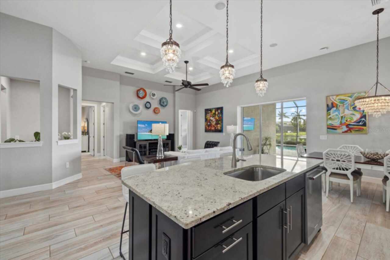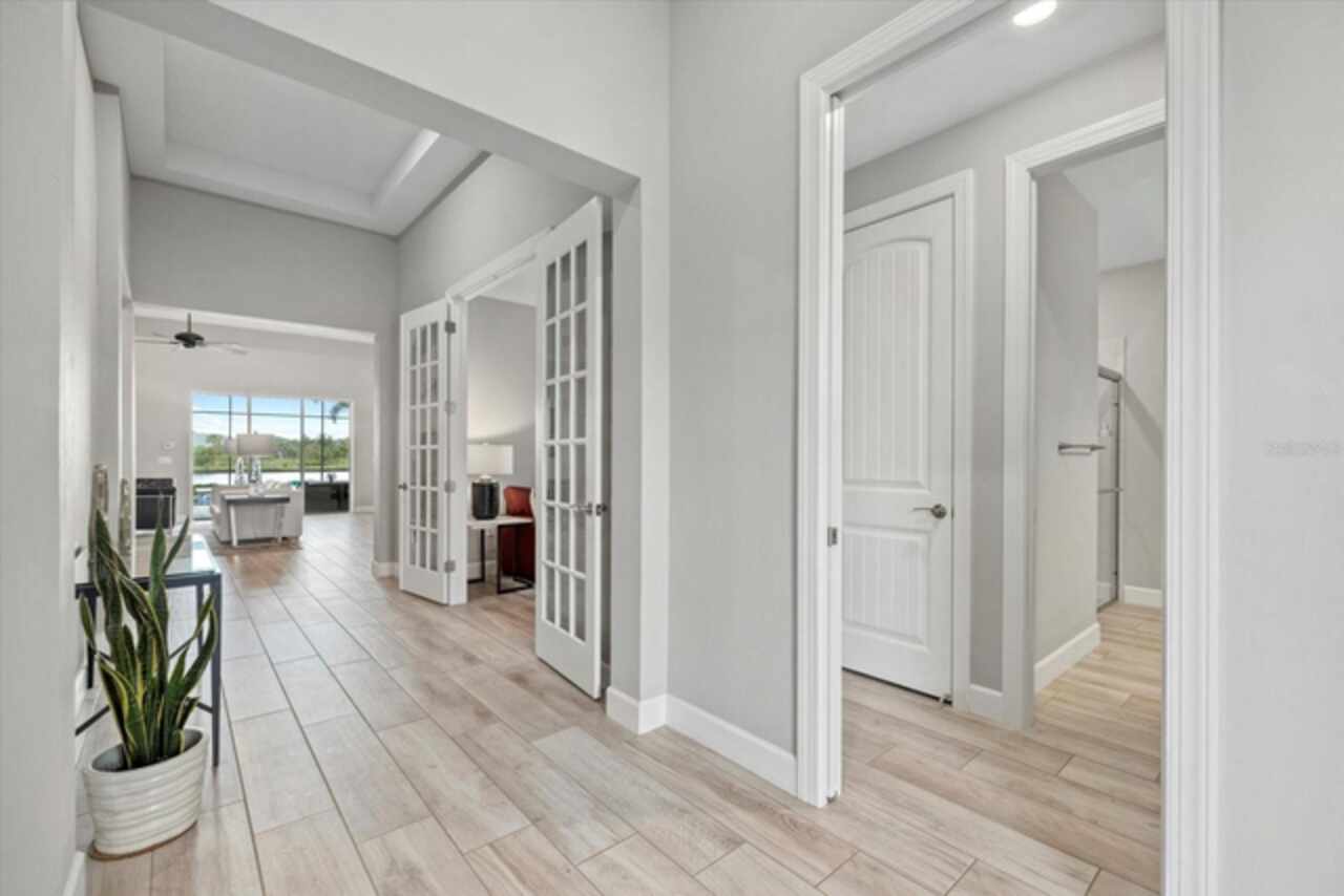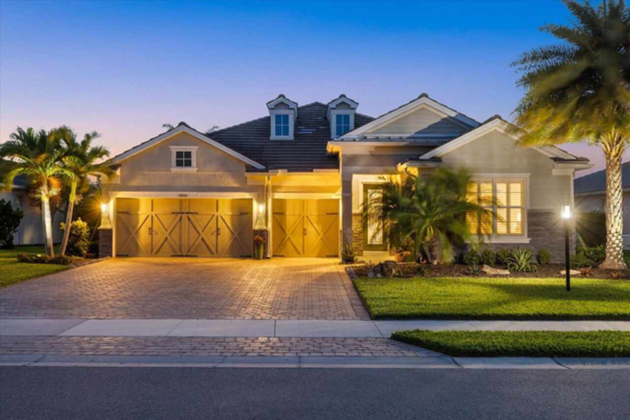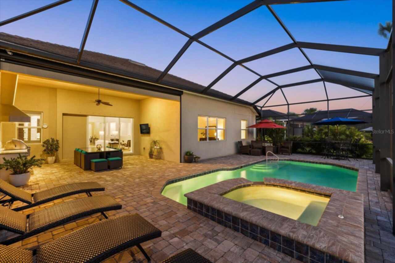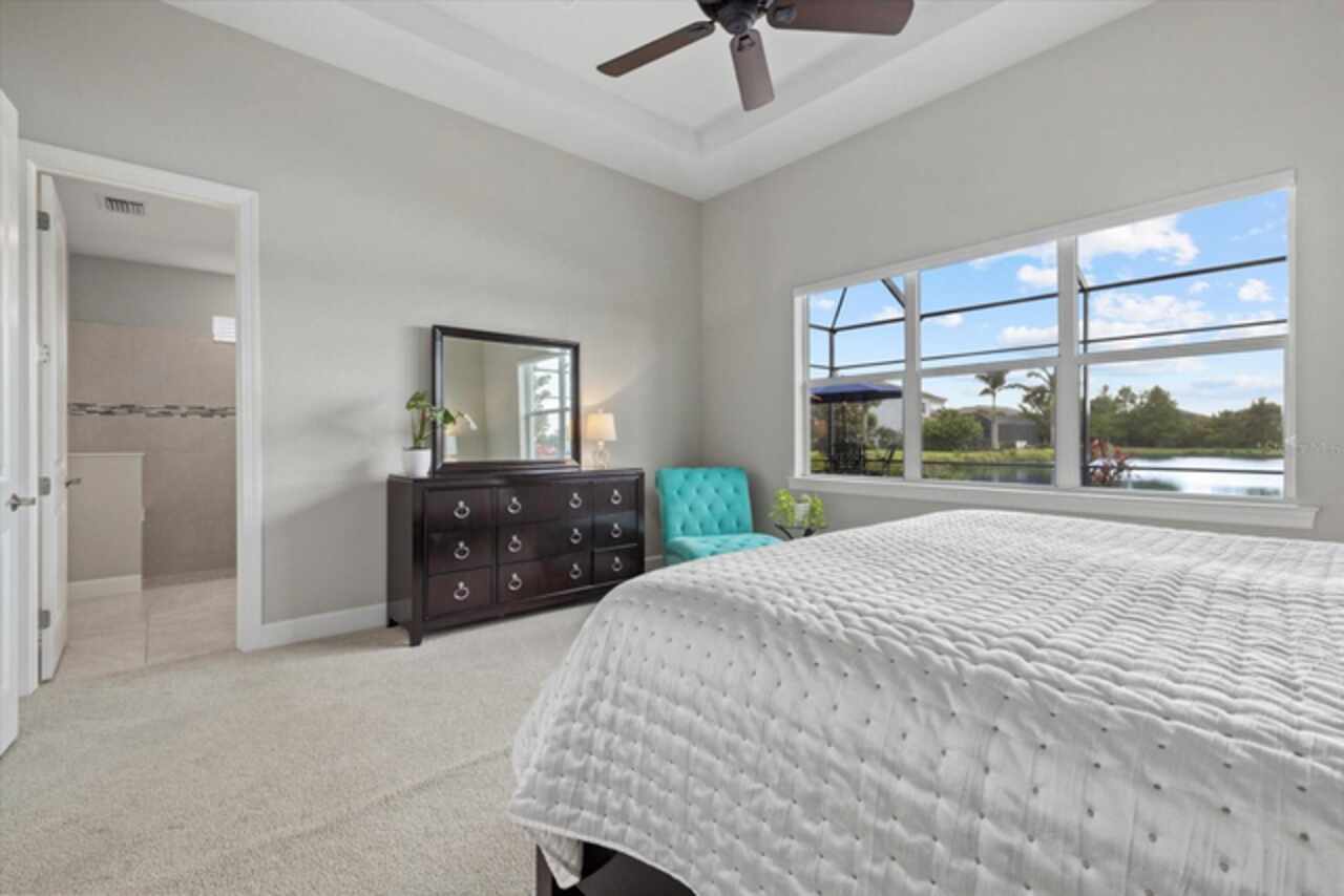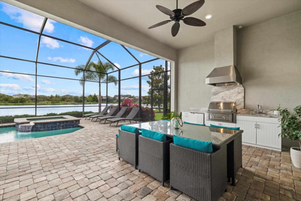 Stunning Single-Story Home on Premier Lot in Mallory Park at Lakewood Ranch. Welcome to your dream home in the heart of Lakewood Ranch, nestled within the highly sought-after village of Mallory Park. Perfectly positioned on arguably the best lot in the neighborhood, this 3-bedroom, 3-bathroom home with a versatile flex space offers breathtaking sunset and tranquil water views that will take your breath away. Step inside to discover an impressive great room with soaring 12-foot ceilings, creating an open and airy feel that's perfect for both everyday living and entertaining. The chef’s kitchen is the centerpiece, featuring a large island, ample cabinetry, and generous dining space—ideal for hosting family and friends. Tucked away in the rear of the home for ultimate privacy, the primary suite is a true retreat, offering water views, a tray ceiling, a luxurious en suite bathroom, and a spacious walk-in closet. Guests or family will feel right at home with two additional bedrooms—one featuring its own walk-in closet and private en suite bath. The flex room is a chameleon space—perfect for a media room, home office, game room, or even a fourth bedroom. Additionally, there’s a built-in office nook just off the living area and a convenient drop zone as you enter the three-car garage. Step outside to your massive screened lanai with a custom pool and outdoor kitchen, the ultimate backyard oasis for relaxing, BBQing, or watching the vibrant Florida wildlife and picturesque sunsets. Mallory Park residents enjoy a brand-new amenity center complete with a pool, fitness center, pickleball and basketball courts, BBQ area, fire pit, and more. Nature lovers will appreciate nearby Bob Gardner Park with walking trails, disc golf, a dog park, and ball fields. Families will love the short walk to top-rated BD Gullett Elementary and Dr. Mona Jain Middle School via the private community path. Lakewood Ranch continues to be the #1 multigenerational master-planned community in the nation, offering easy access to Sarasota, Bradenton, Tampa, Orlando, the Gulf beaches, and premier fishing spots. Don’t miss your chance to experience this exceptional home and lifestyle—schedule your private showing today!