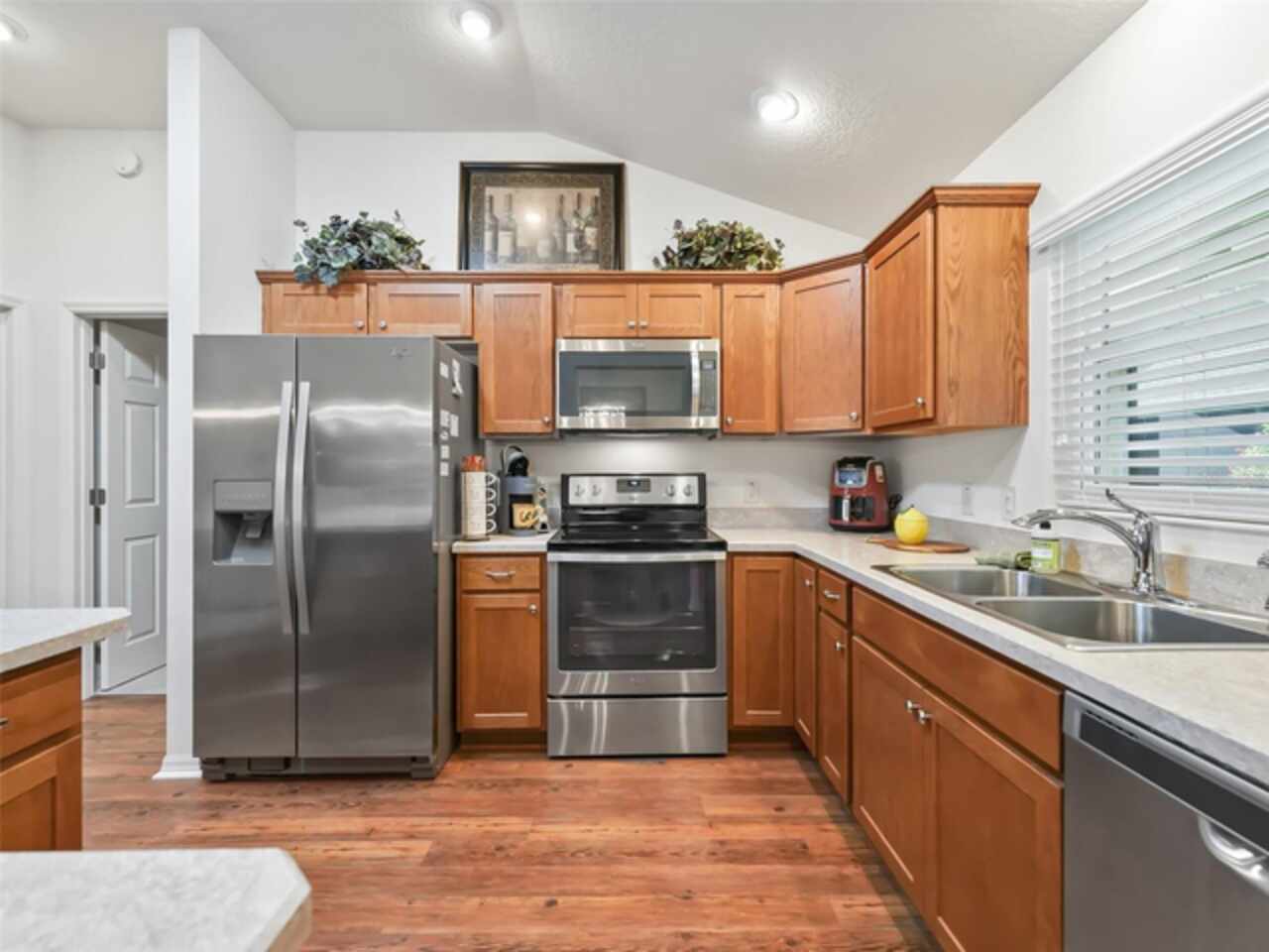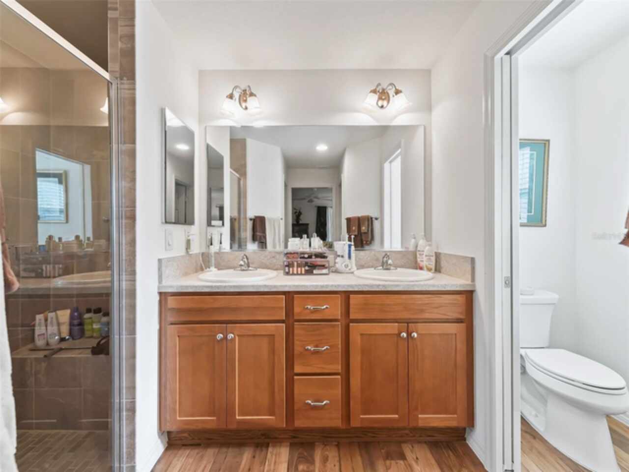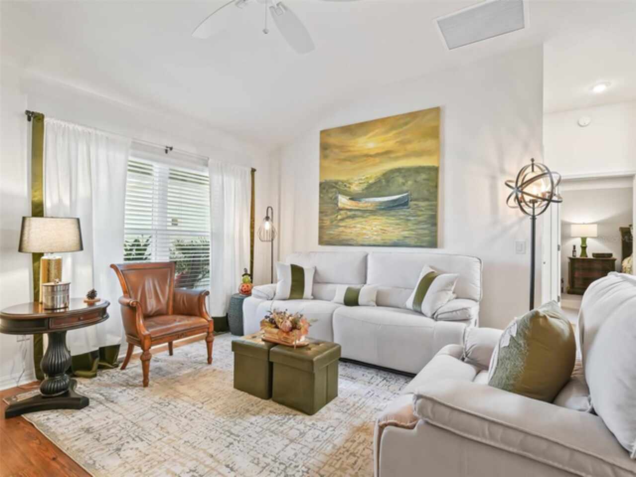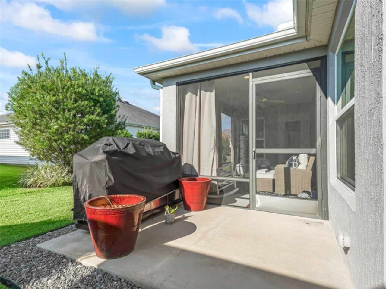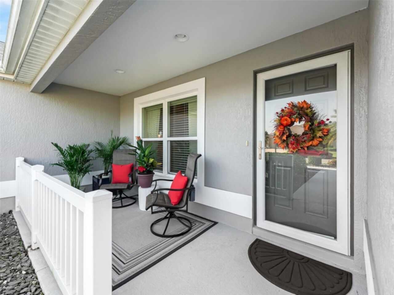 Stucco home with professional landscaping and meticulous care inside and out, now has a new price. Osceola Hills at Soaring Eagle Preserve is the Ultimate of Premier neighborhoods! This all electric home comes with a Solar tube in the kitchen that offers great natural lighting. The kitchen is complimented by a breakfast bar center island with roll out shelves in the bottom cabinetry and a lazy susan corner cabinet. The deep shelves in the pantry adds lots of room for every kitchen's needs. Luxury Vinyl Plank flooring is rich with color and sets the character of the open living area to compliment the expandable dining area that looks out to the 4 season Florida room with high end windows and a door to the screened in lanai which leads to an outdoor patio. The laundry room includes the washer & dryer with a utility sink plus storage cupboards. The primary bedroom has plush carpeting and a big walk in double closets with organizers and a hidden jewelry closet. The ensuite bathroom has handicap accessible bars and tiled walk in shower with shaving seat plus his and her's sinks which completes the upscale customization design in this home. The 2 guest bedrooms are separated by a guest bath and more linen and utility storage. For the most picky buyers, there are smooth ceilings throughout this Quailty home. The living room has a vaulted ceiling and the double windows look out to a covered rocking chair porch and landscaped yard. The block and stucco exterior is alive with character. The new Energy Star roof (with added insulation) was installed in 2020 because of defective underlayment from the original roofer, who was not used to install the new roof. Besides the solid metal overhead garage door, the owner added a new electric overhead screen door with optimal electric door opener, new in 2024 (comes with a transfeable 10 year warranty). This home is protected by an Omni Shield Fire and lightening detection system which is an alert system & includes an added alert app. on your the phone with an alarm alert in the home. Omni charges No monthly fee for the system. Buyer should call Omni for details of the future. For heavy sleepers, the system includes a system in the bedroom that alerts a heavy sleeper to wake up. The system also includes an alert system in the attic for smoke and fire before it ever reaches the interior of the home. Also included is a C O system. The Custom landscaped yard is sprinklered front and back. Lastly there's a patio off the screened lanai for grilling.