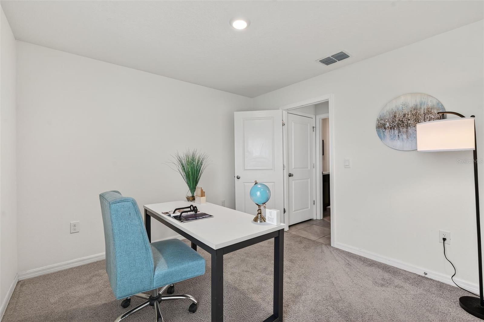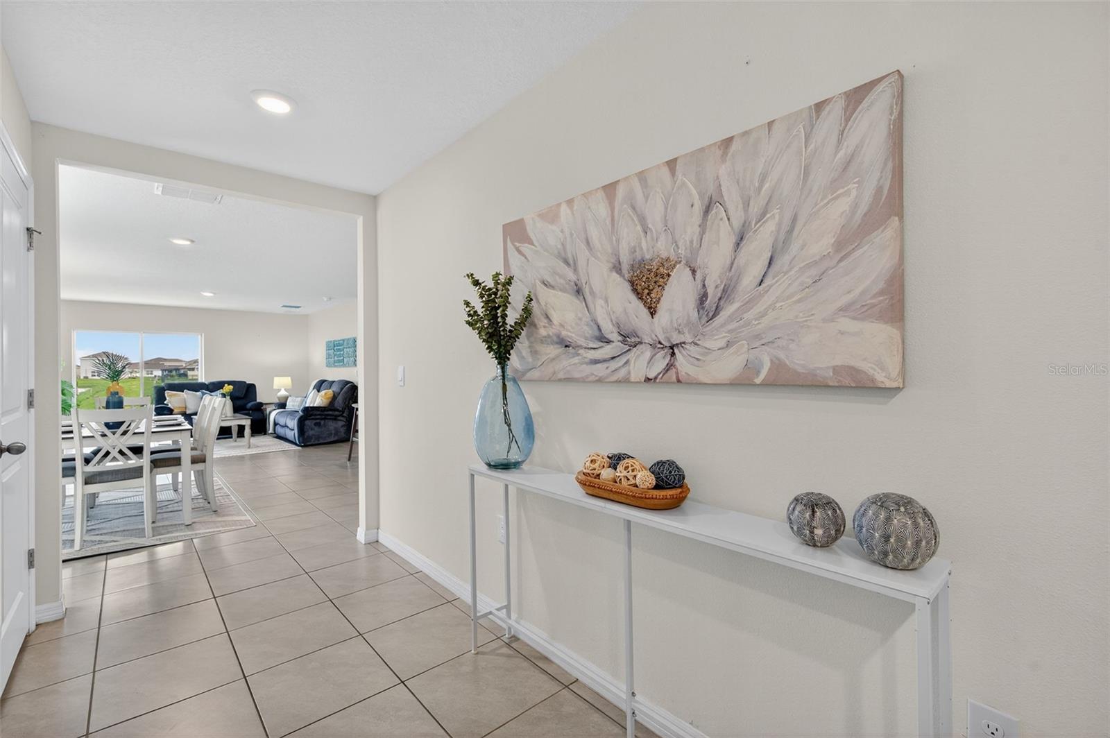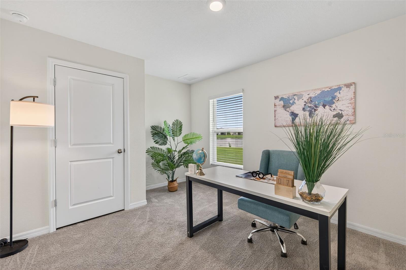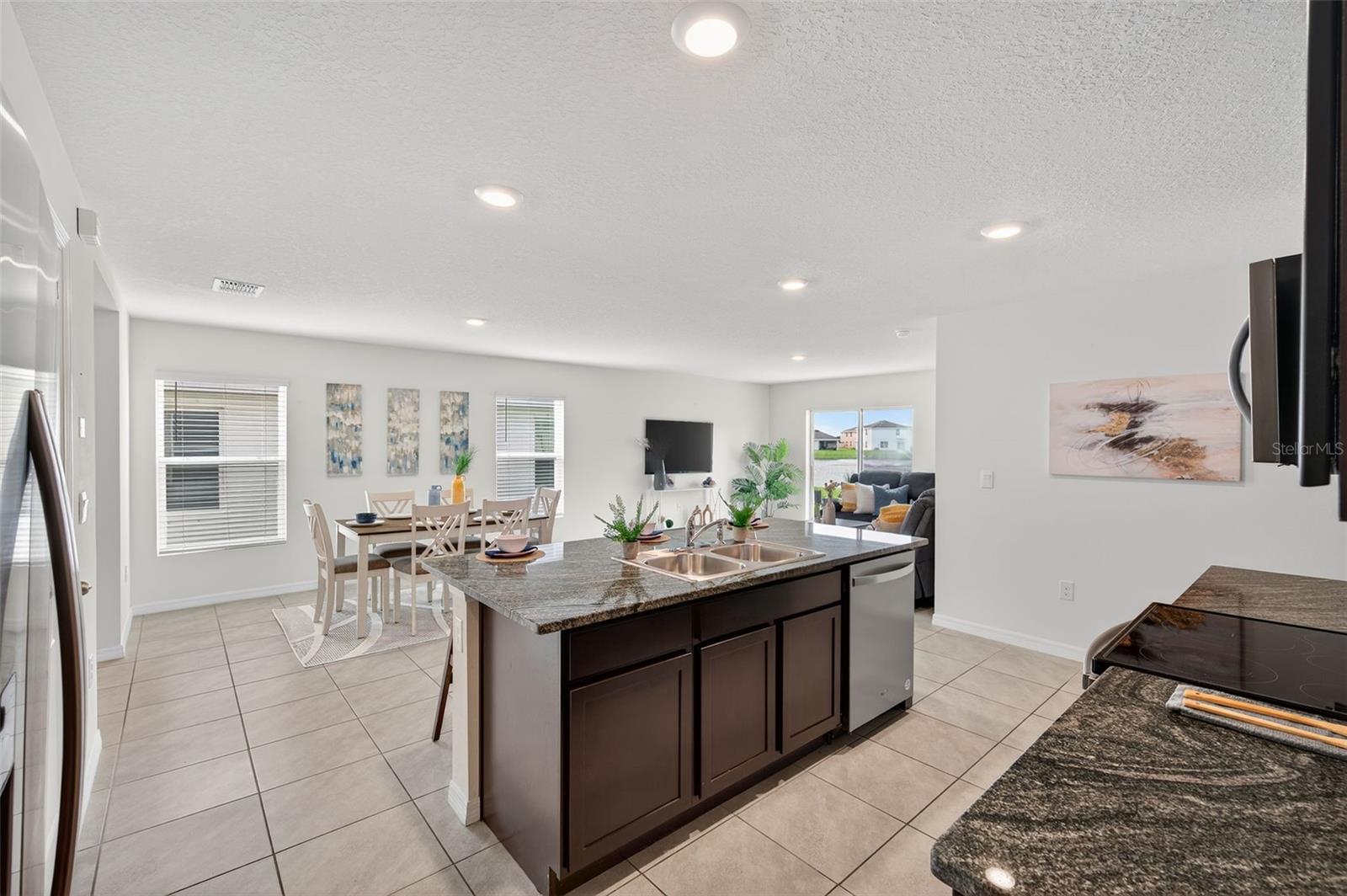High Ceilings, Kitchen/Family Room Combo, Open Floorplan, Solid Surface Counters, Split Bedroom, Thermostat, Walk-In Closet(s), Window Treatments