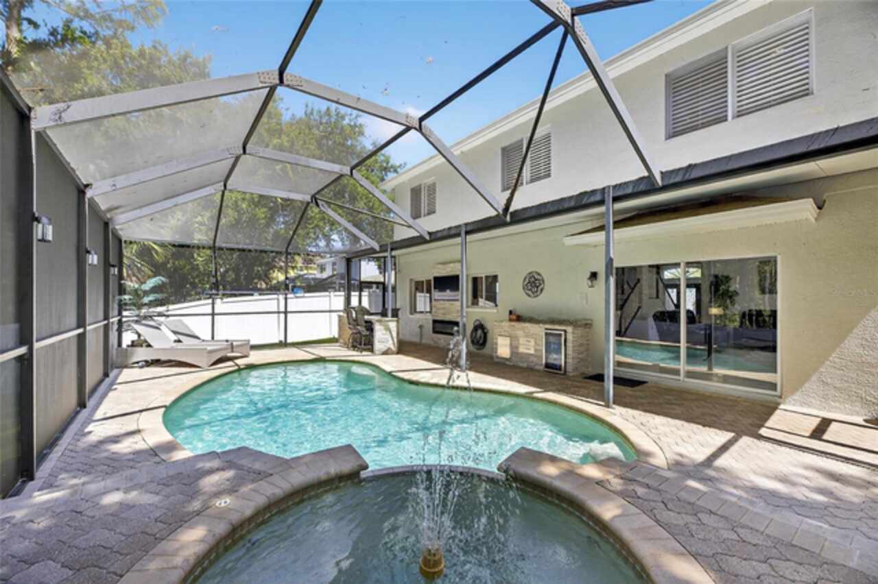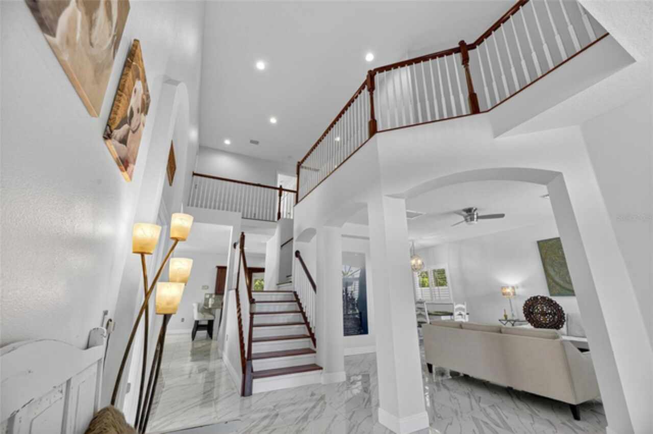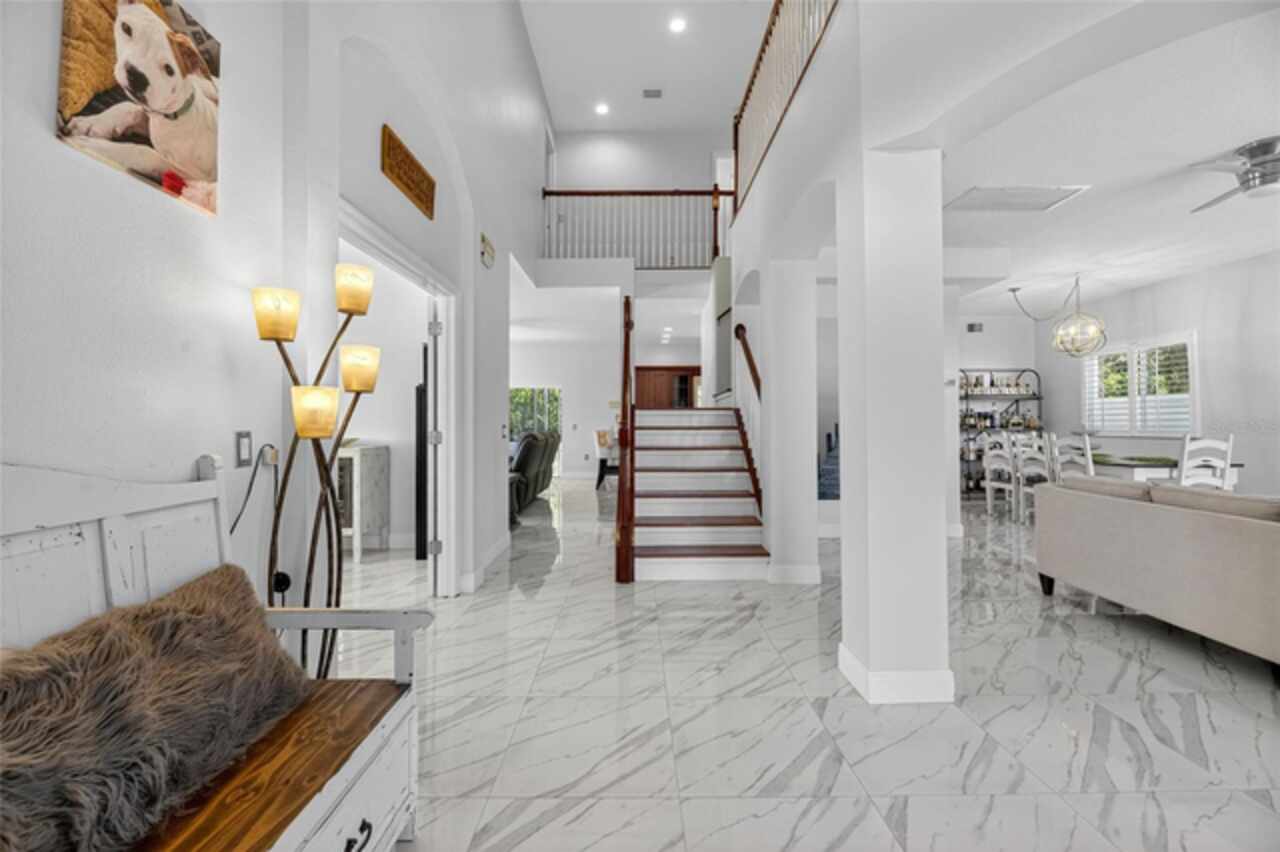 Welcome to 382 Rosalind Ln., an extraordinary home in the exclusive gated community of Bay Arbor in Oldsmar. This thoughtfully upgraded and impeccably maintained residence offers over 4, 000 square feet of elegant living space, combining luxury, privacy, and smart-home functionality. Situated on a quiet cul-de-sac and backed by a peaceful conservation lot, the home features soaring ceilings, abundant natural light, Italian marble-look tile, a formal living and dining room, a spacious office, and a beautifully updated full bath. The open-concept main living area opens to a stunning screened-in patio with a heated spa, pool, waterfall, and wooded views — ideal for relaxation and entertaining. The chef’s kitchen boasts cherry cabinetry, granite countertops, stainless steel appliances, purified water, wine storage, a breakfast bar, and an eat-in nook. Upstairs you'll find four spacious bedrooms and a soundproofed 18' x 20' media room, easily converted into a second primary suite or flex space. The luxurious primary suite includes two walk-in closets, a spa-style bathroom with soaking tub and walk-in shower. The fully fenced backyard oasis includes a new outdoor luxury kitchen, pet turf, and smart-controlled pool and spa with a waterfall and fountain feature. Additional upgrades include new pool equipment, attic insulation, UV air purification, custom shutters, new water heater, full security system, vinyl fencing, lightning and surge protection, new AC unit upstairs, and more. Just 20 minutes from Tampa International Airport and close to top beaches, this rare gem delivers the ultimate in Florida luxury living.