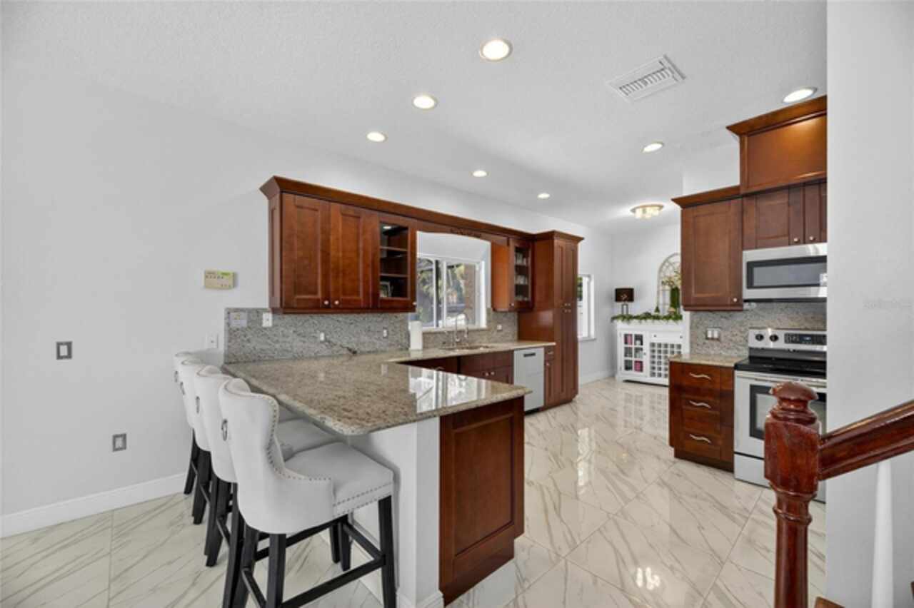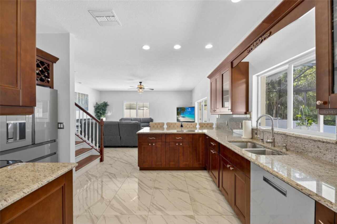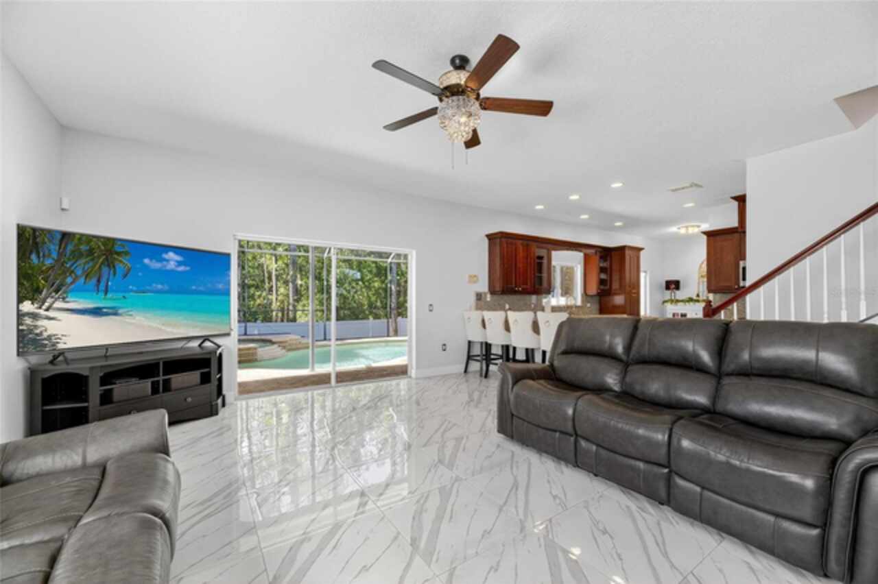 Welcome to 382 Rosalind Ln., an extraordinary home in the exclusive gated community of Bay Arbor in Oldsmar. This thoughtfully upgraded and impeccably maintained residence offers over 4, 000 square feet of elegant living space, combining luxury, privacy, and smart-home functionality. Situated on a quiet cul-de-sac and backed by a peaceful conservation lot, the home features soaring ceilings, abundant natural light, Italian marble-look tile, a formal living and dining room, a spacious office, and a beautifully updated full bath. The open-concept main living area opens to a stunning screened-in patio with a heated spa, pool, waterfall, and wooded views — ideal for relaxation and entertaining. The chef’s kitchen boasts cherry cabinetry, granite countertops, stainless steel appliances, purified water, wine storage, a breakfast bar, and an eat-in nook. Upstairs you'll find four spacious bedrooms and a soundproofed 18' x 20' media room, easily converted into a second primary suite or flex space. The luxurious primary suite includes two walk-in closets, a spa-style bathroom with soaking tub and walk-in shower. The fully fenced backyard oasis includes a new outdoor luxury kitchen, pet turf, and smart-controlled pool and spa with a waterfall and fountain feature. Additional upgrades include new pool equipment, attic insulation, UV air purification, custom shutters, new water heater, full security system, vinyl fencing, lightning and surge protection, new AC unit upstairs, and more. Just 20 minutes from Tampa International Airport and close to top beaches, this rare gem delivers the ultimate in Florida luxury living.