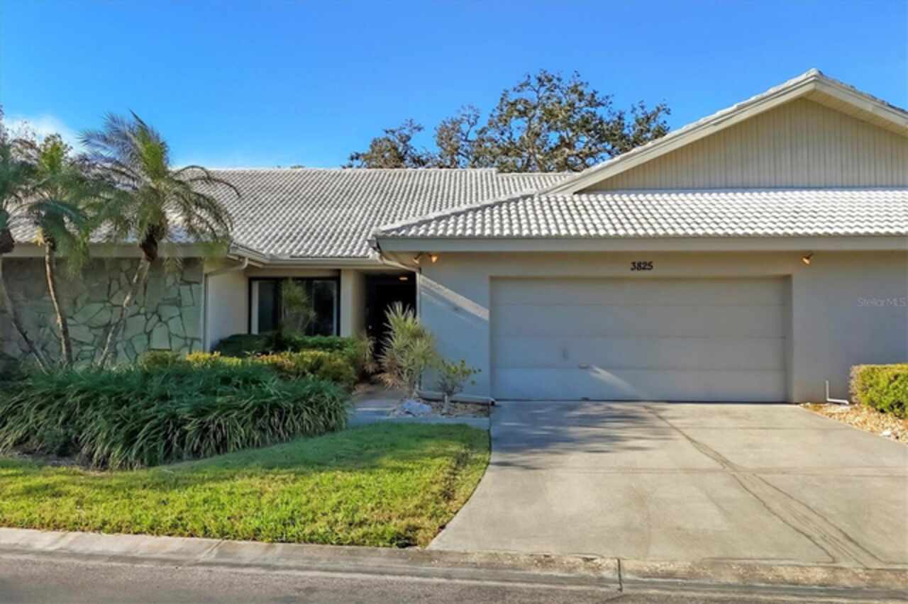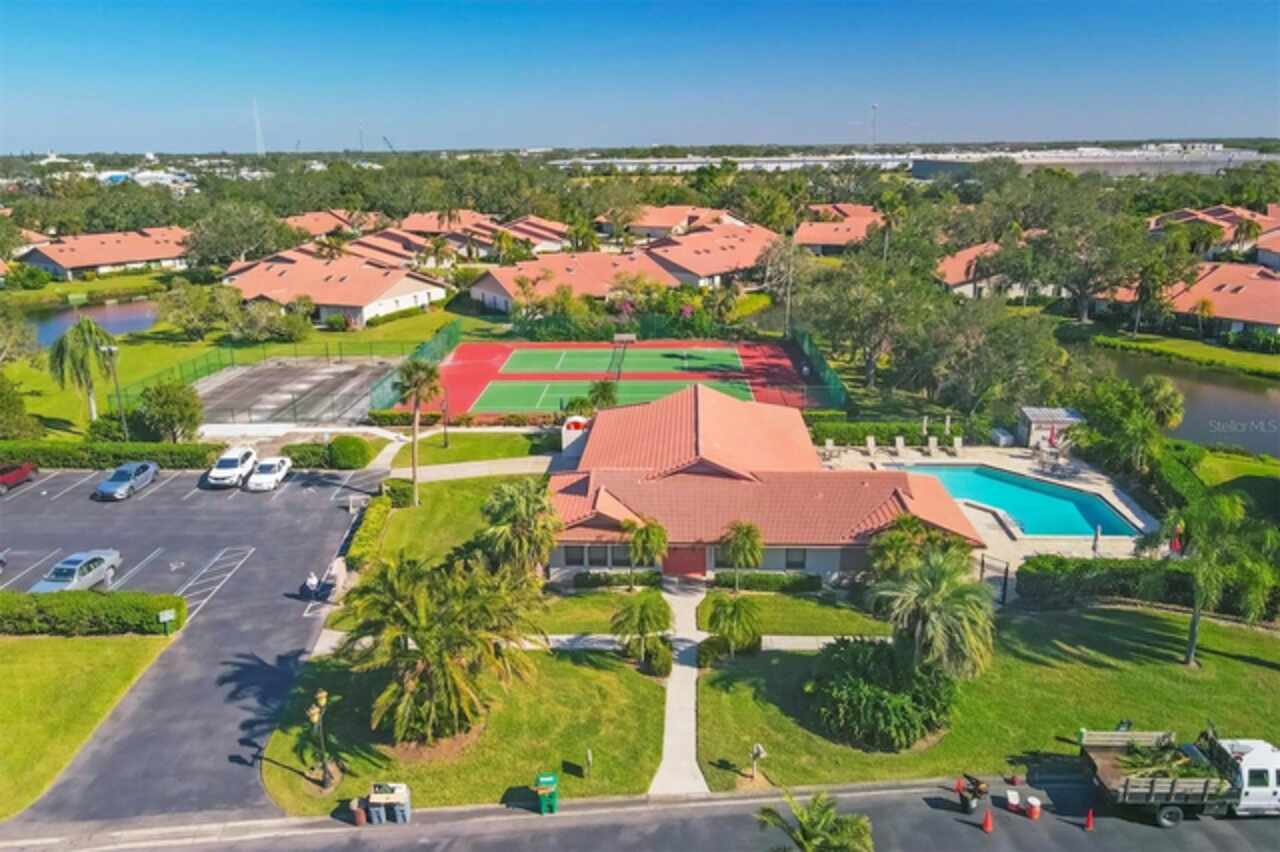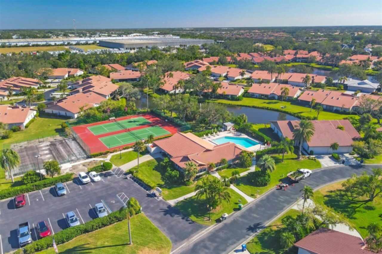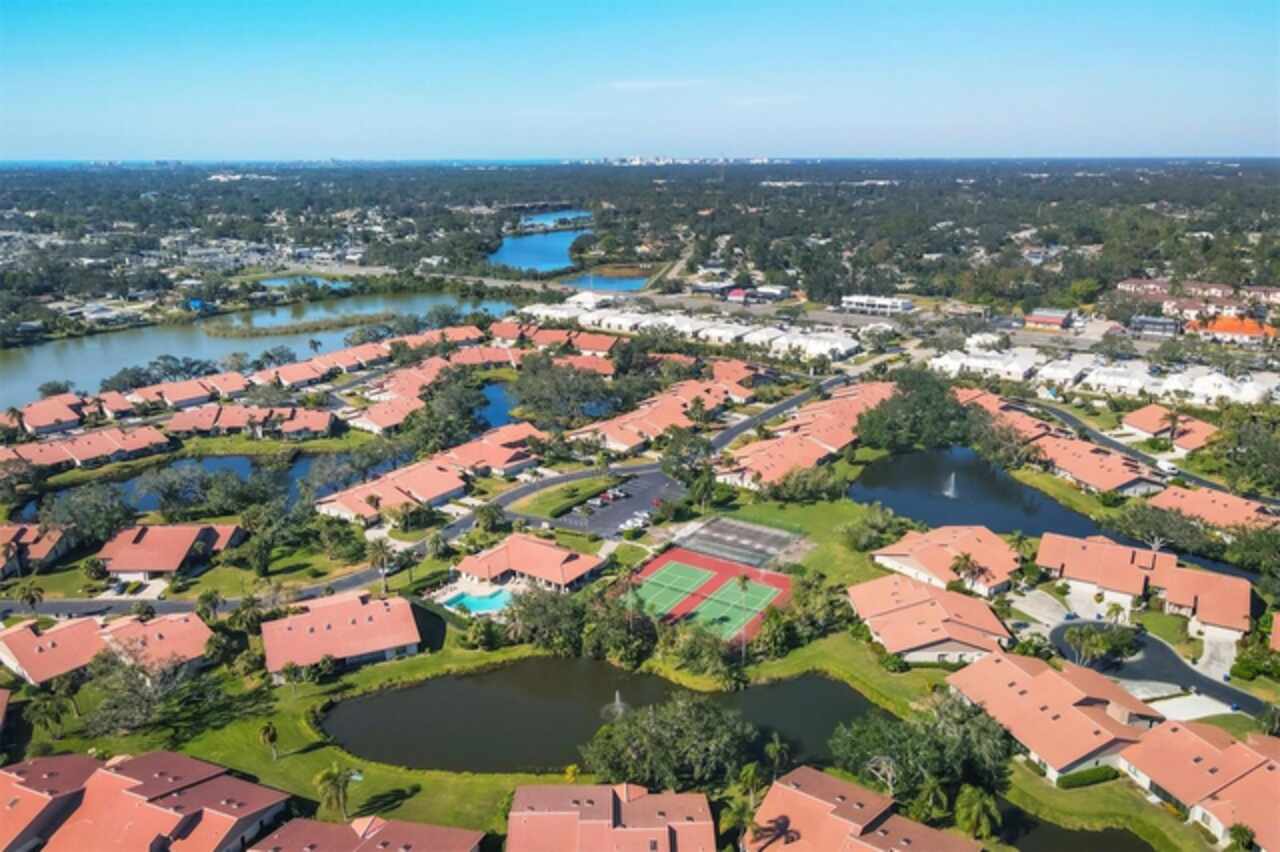Welcome to Lakeshore Village South, a serene 55-plus pet-friendly community! Just minutes from the stunning Siesta Key Beach, this charming villa offers a relaxed, stress-free lifestyle with roof maintenance and landscaping covered in your quarterly fee. Experience the meaning of Florida living in a small, exclusive community with only 32 villas and a beautiful community pool. This rarely available is just 1 of 5 spacious villas in this community with three-bedroom, two-bath, two-car garage with an impressive 2, 433 (includes covered lanai/sunroom) square feet and features versatile rooms that can be customized to suit your personal needs. Step inside through double front doors and be greeted by an expansive 27-by-18-foot living room with vaulted ceilings, creating an open and airy atmosphere. The large primary bedroom with dual walk-in closets for ample storage space. Many rooms throughout this home offer flexibility and the guest bedroom is set up as an office with built-in cabinets but could easily be converted to suit your lifestyle. The kitchen is equipped with a convenient passthrough window to the dining room and includes a cozy dinette area for your morning coffee. The attached laundry room provides plenty of cabinetry for additional storage. Enjoy the indoor-outdoor living with the lanai featuring all-around glass sliding doors and screens, giving you the option of fresh air or a comfortable sunroom retreat. For just $200 per year, residents can enjoy access to fantastic amenities, including two new pickleball courts, two tennis courts, a heated saltwater pool, a large clubhouse with a full kitchen and dining area, horseshoe pits and a billiards table. Don't miss out on this opportunity to live in a wonderful, low-maintenance community. Make this villa your new home today. Villa was repiped in 2015, New A/C in 2020, New tile roof is scheduled for replacement in 2026 by HOA
