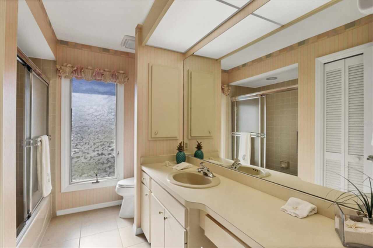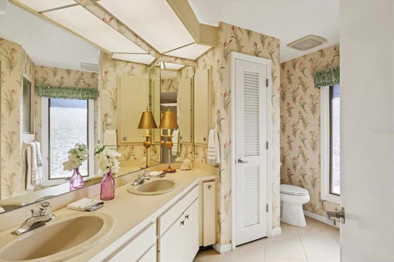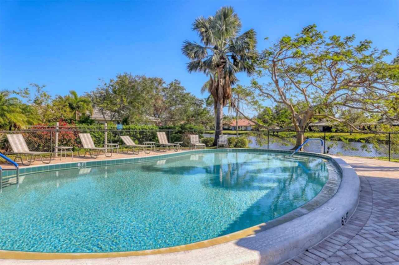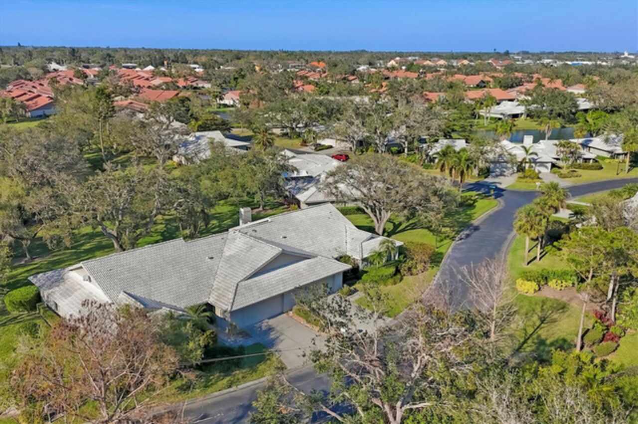 Welcome to Lakeshore Village South, a serene 55-plus pet-friendly community! Just minutes from the stunning Siesta Key Beach, this charming villa offers a relaxed, stress-free lifestyle with roof maintenance and landscaping covered in your quarterly fee. Experience the meaning of Florida living in a small, exclusive community with only 32 villas and a beautiful community pool. This rarely available is just 1 of 5 spacious villas in this community with three-bedroom, two-bath, two-car garage with an impressive 2, 433 (includes covered lanai/sunroom) square feet and features versatile rooms that can be customized to suit your personal needs. Step inside through double front doors and be greeted by an expansive 27-by-18-foot living room with vaulted ceilings, creating an open and airy atmosphere. The large primary bedroom with dual walk-in closets for ample storage space. Many rooms throughout this home offer flexibility and the guest bedroom is set up as an office with built-in cabinets but could easily be converted to suit your lifestyle. The kitchen is equipped with a convenient passthrough window to the dining room and includes a cozy dinette area for your morning coffee. The attached laundry room provides plenty of cabinetry for additional storage. Enjoy the indoor-outdoor living with the lanai featuring all-around glass sliding doors and screens, giving you the option of fresh air or a comfortable sunroom retreat. For just $200 per year, residents can enjoy access to fantastic amenities, including two new pickleball courts, two tennis courts, a heated saltwater pool, a large clubhouse with a full kitchen and dining area, horseshoe pits and a billiards table. Don't miss out on this opportunity to live in a wonderful, low-maintenance community. Make this villa your new home today. Villa was repiped in 2015, New A/C in 2020, New tile roof is scheduled for replacement in 2026 by HOA