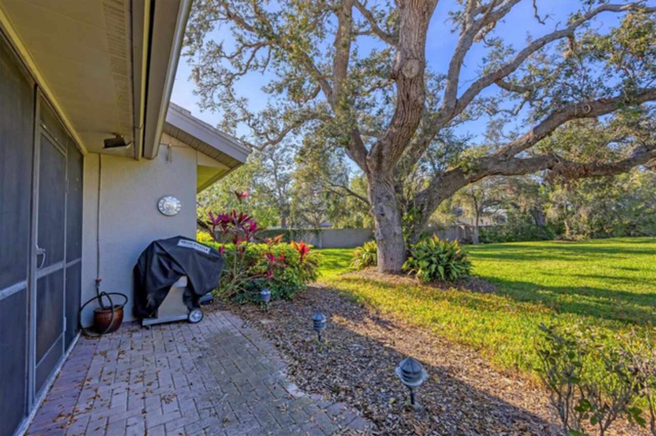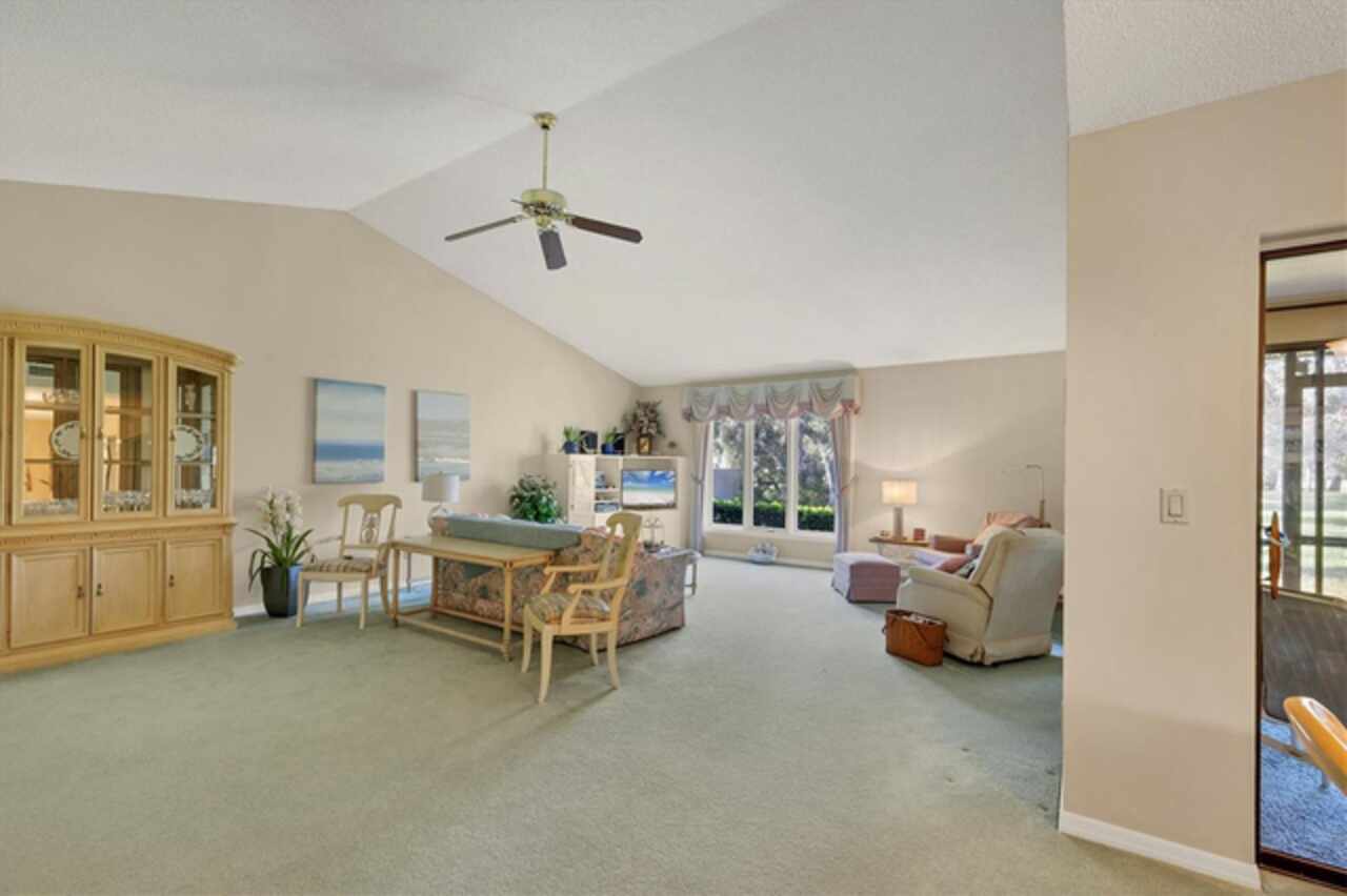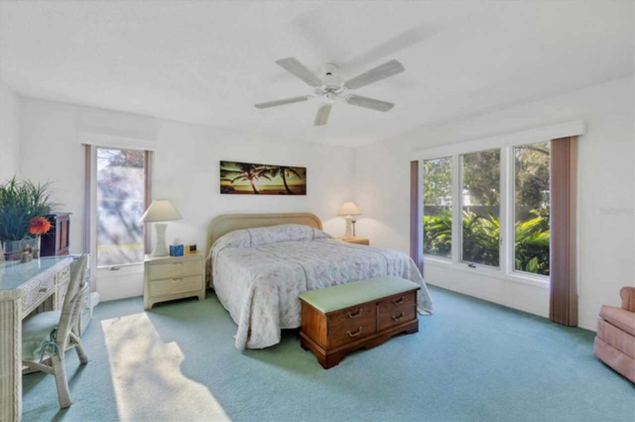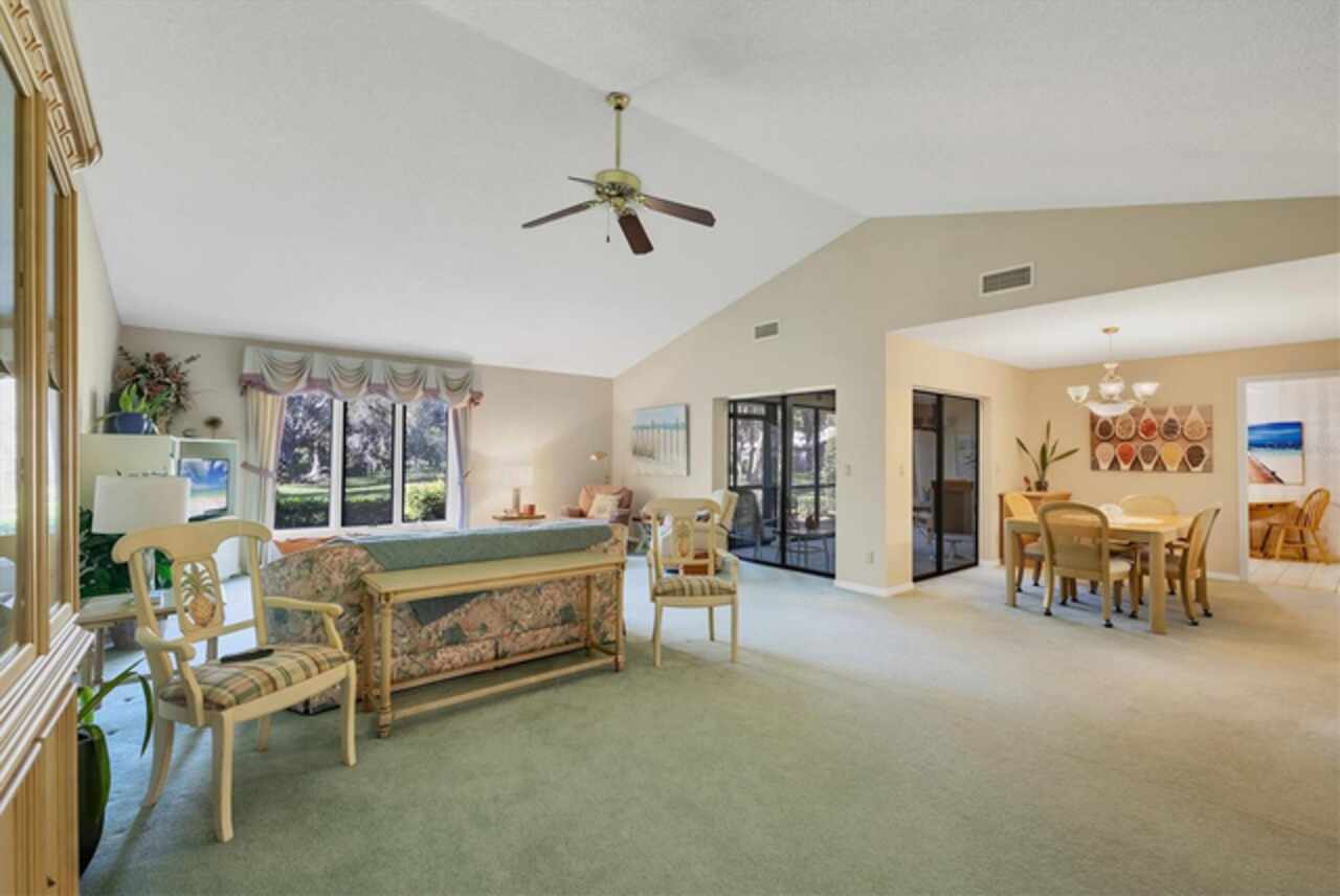 Welcome to Lakeshore Village South, a serene 55-plus pet-friendly community! Just minutes from the stunning Siesta Key Beach, this charming villa offers a relaxed, stress-free lifestyle with roof maintenance and landscaping covered in your quarterly fee. Experience the meaning of Florida living in a small, exclusive community with only 32 villas and a beautiful community pool. This rarely available is just 1 of 5 spacious villas in this community with three-bedroom, two-bath, two-car garage with an impressive 2, 433 (includes covered lanai/sunroom) square feet and features versatile rooms that can be customized to suit your personal needs. Step inside through double front doors and be greeted by an expansive 27-by-18-foot living room with vaulted ceilings, creating an open and airy atmosphere. The large primary bedroom with dual walk-in closets for ample storage space. Many rooms throughout this home offer flexibility and the guest bedroom is set up as an office with built-in cabinets but could easily be converted to suit your lifestyle. The kitchen is equipped with a convenient passthrough window to the dining room and includes a cozy dinette area for your morning coffee. The attached laundry room provides plenty of cabinetry for additional storage. Enjoy the indoor-outdoor living with the lanai featuring all-around glass sliding doors and screens, giving you the option of fresh air or a comfortable sunroom retreat. For just $200 per year, residents can enjoy access to fantastic amenities, including two new pickleball courts, two tennis courts, a heated saltwater pool, a large clubhouse with a full kitchen and dining area, horseshoe pits and a billiards table. Don't miss out on this opportunity to live in a wonderful, low-maintenance community. Make this villa your new home today. Villa was repiped in 2015, New A/C in 2020, New tile roof is scheduled for replacement in 2026 by HOA