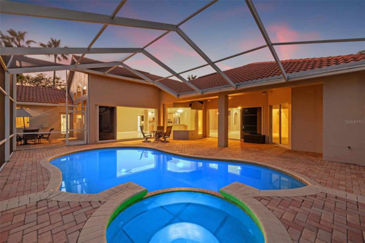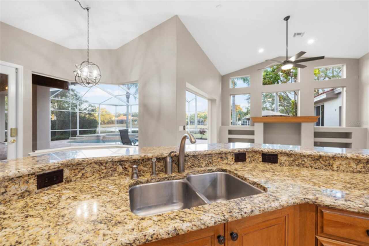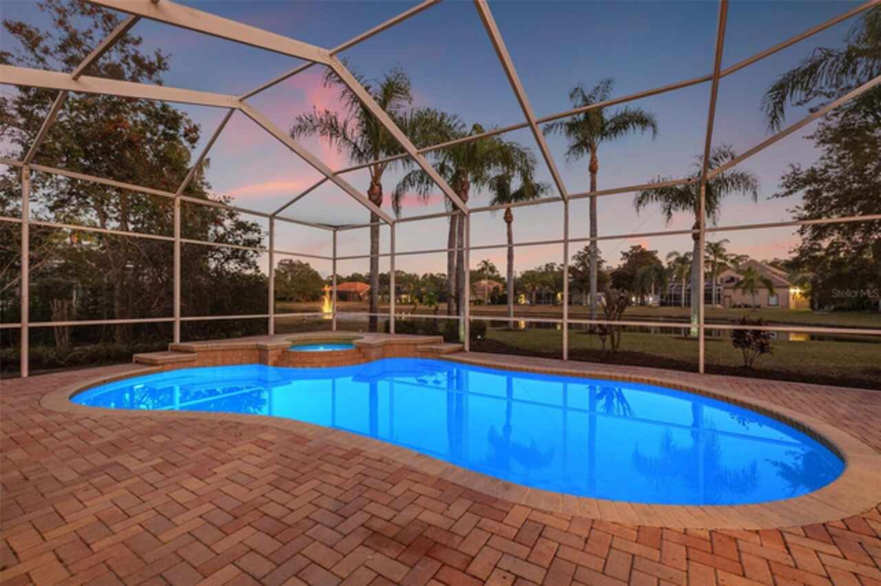 PRICE REDUCTION MAKES THIS THE BEST VALUE IN THE ENTIRE COMMUNITY ON A PRIME LOT LOCATION WITHIN LANSBROOK! Nestled in the East Lake corridor of Palm Harbor, this stunning pond front home offers the perfect blend of luxury, comfort, and space. Boasting 4 spacious bedrooms, 3 full bathrooms, an office with double-door entry, and a large game room, this home features an expansive open floor plan that seamlessly connects the living areas. The heart of the home is the oversized kitchen, complete with plentiful wood cabinetry, walk-in pantry and elegant stone countertops, ideal for both casual dining and entertaining. Enjoy the Florida lifestyle year-round with a large saltwater pool and spa and patio that overlook the tranquil pond, all enclosed within a screened lanai for ultimate privacy and relaxation. With just under 3, 700 square feet of beautifully designed living space, this home is all on one level, making it perfect for easy accessibility. This home also features a large 3-car garage plus a circular driveway for extra parking and easy access. Additional highlights include a recently refreshed interior and exterior paint job, 2 newer HVAC systems, newer appliances, newer lighting fixtures and ceiling fans and a recently added ‘wine bar’ with wine coolers in the main living room. Located in the community of Myrtle Point at Lansbrook, the sought-after serene lakefront community of tree-canopied streets, miles of walking/biking trails, parks and playgrounds. This residence is a rare find in northern Pinellas County, combining elegance, practicality, and breathtaking natural surroundings. Lansbrook is convenient to the Fred Marquis Pinellas Trail (over 30 miles of biking trail from Tarpon Springs to St. Petersburg), within 15 minutes to Honeymoon Island Beach (Dunedin), and within 30 minutes to Tampa International Airport and St. Pete/Clearwater Airport. Don’t miss the opportunity to make this exceptional property your forever home!