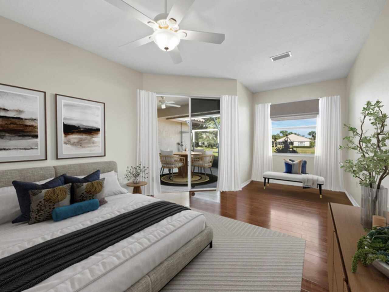 Under contract-accepting backup offers. One or more photo(s) has been virtually staged. The top selling model with a premium lakefront location, huge lanai with big sunset views and a feeling of privacy. Semi-open floor plan and high ceilings make this home light and bright while maximizing the view. The family room, living room and primary bedroom all boast large windows and slider access to the huge screened lanai. The well-designed kitchen is open to the large family room (17-by-15-foot) and has incredible views of the lake. The spacious living room (13' x 20') with three panel sliders to access the lanai, creates the ultimate indoor/outdoor Sarasota Lifestyle. Great opportunity, your design ideas can turn this home into a beautiful and smart investment. A renovated version of this model with similar location set a record price of $875, 000 at the end of 2023. The living is easy in Mira Lago at Palmer Ranch, one of our most popular maintenance-free, gated communities. Low HOA fees also include exterior maintenance and cable TV! ! Enjoy everything Sarasota has to offer with quick access to world-famous beaches, great dining, shopping and our vibrant downtown for arts and entertainment.