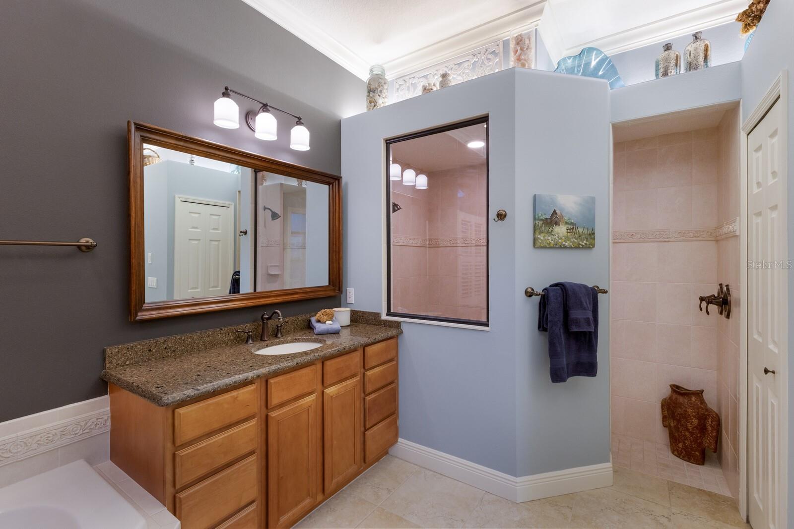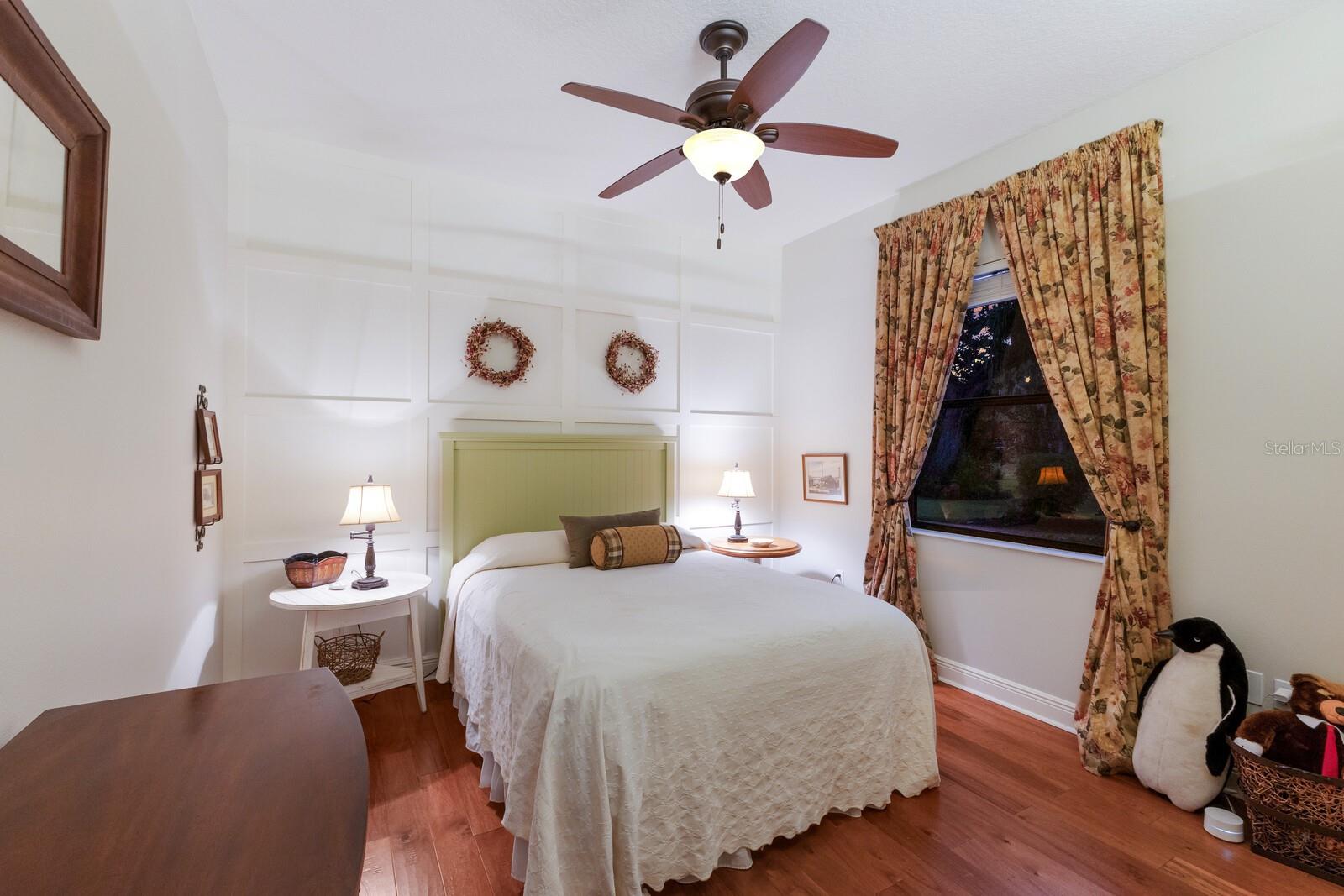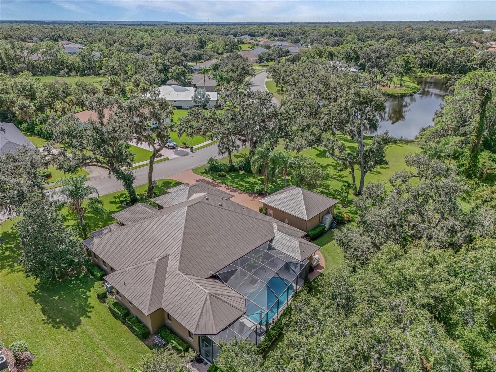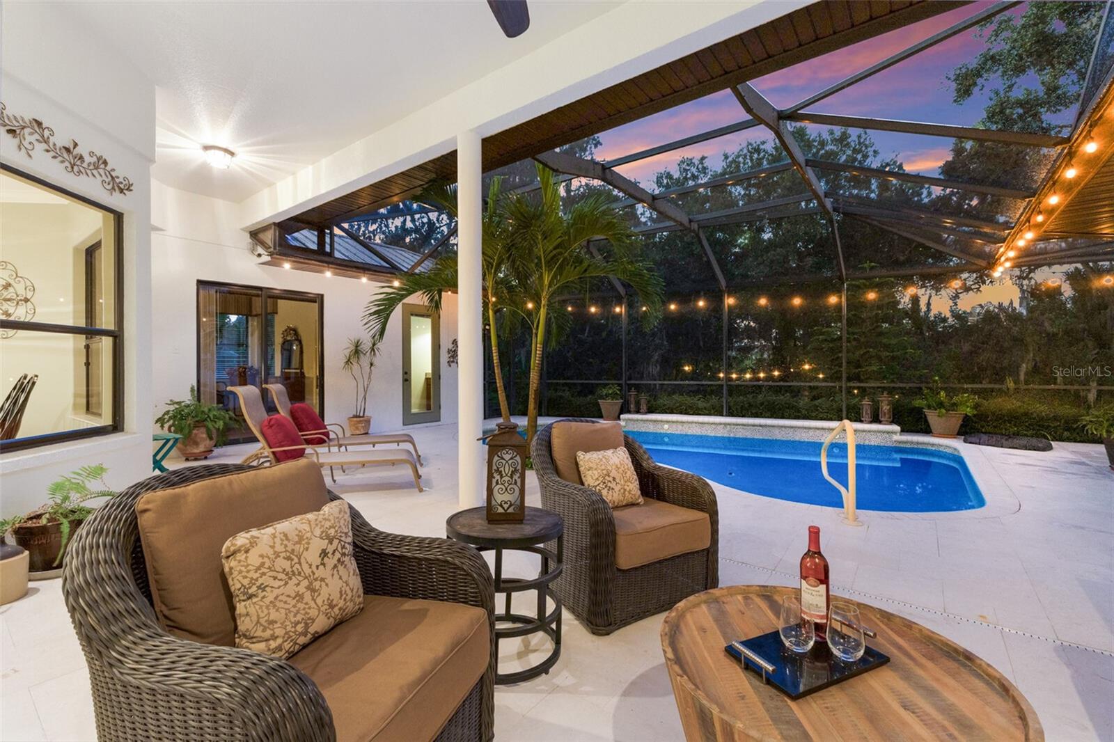 Highly sought-after Twin Rivers is where you’ll find this stunning, custom-built Mark Cahill home — perfectly positioned in a serene, park-like setting surrounded by majestic oaks, swaying palms, and lush lawns. This immaculately maintained residence blends timeless craftsmanship with thoughtful recent upgrades and incredible 'Old Florida' curb appeal. Step through the beautiful glass double doors into the inviting foyer and take in the open, well-designed floor plan. Beyond the wall of disappearing sliders, the private lanai and refreshed pool and decking create a true outdoor oasis framed by the tranquil natural preserve. Boasting 3, 235 sq. ft. of living space, the home includes three bedrooms, three full baths, a spacious great room that flows effortlessly into the kitchen and pool areas, a formal living and dining room, and a dedicated office/den with French doors and built-in shelving — ideal for working from home or nursery. The chef’s kitchen is a showstopper — complete with double ovens, two prep sinks with disposals, granite counters, abundant 42” solid wood cabinetry with crown molding, a separate pantry, and a butler’s pantry with glass-front display cabinets. Ample natural light pours in from solar tubes, while under- and over-cabinet lighting enhances both style and function. The split bedroom floor plan ensures privacy for everyone. The luxurious primary suite offers his-and-her walk-in closets, plantation shutters, dual vanities, an oversized jetted soaking tub, and a fully tiled walk-in shower “room” with dual shower heads. The en-suite guest bedroom features its own large tiled shower and walk-in closet — perfect for extended stays. Throughout the home, you’ll find 6” crown molding and baseboards, upgraded lighting and ceiling fans, complete interior painting including ceilings, and updated fixtures that give the entire home a fresh, sophisticated feel. Outdoor living shines on the private, screened lanai — perfect for lounging by the sparkling pool, entertaining, or relaxing under the café lighting that adds a touch of evening magic. A new (2023) 5V painted metal roof crowns the home for years of beauty and durability. Garages & Storage- Main home: Oversized 612 sq. ft. two-car garage with tall ceilings and built-in storage. Detached garage: Additional 550 sq. ft. air-conditioned two-car garage ideal for hobby space, vehicles, or workshop use — both with pull-down attic storage. And a wide, paver driveway provides ample parking for guests. Additional Opportunity- An adjacent premium lakeside lot is also available under separate contract — ideal for additional privacy or future investment. Community Highlights- Residents enjoy a fishing dock, kayak/canoe launch, playground, basketball and volleyball courts, soccer field, and scenic walk/bike/golf cart-friendly streets throughout this beautiful Twin Rivers community.