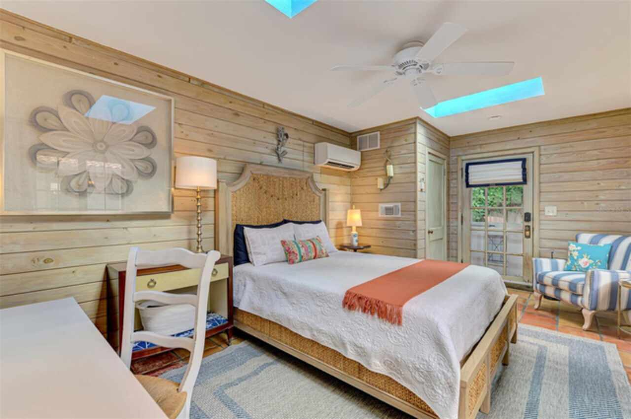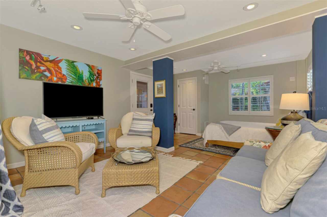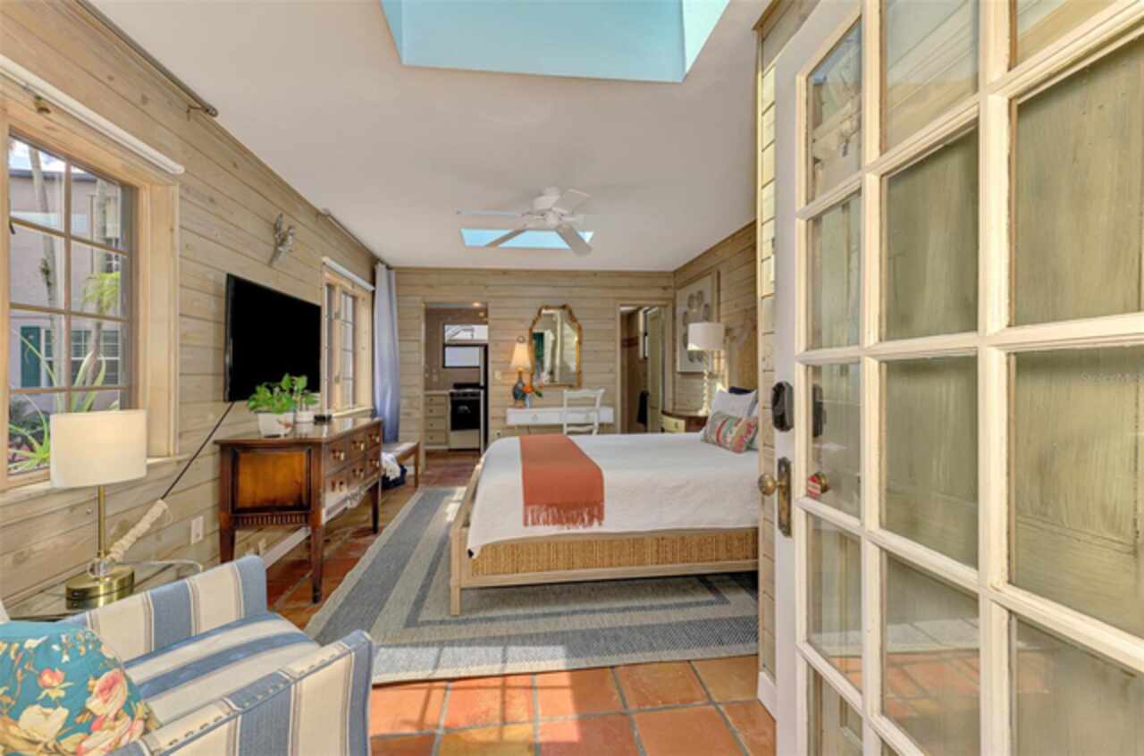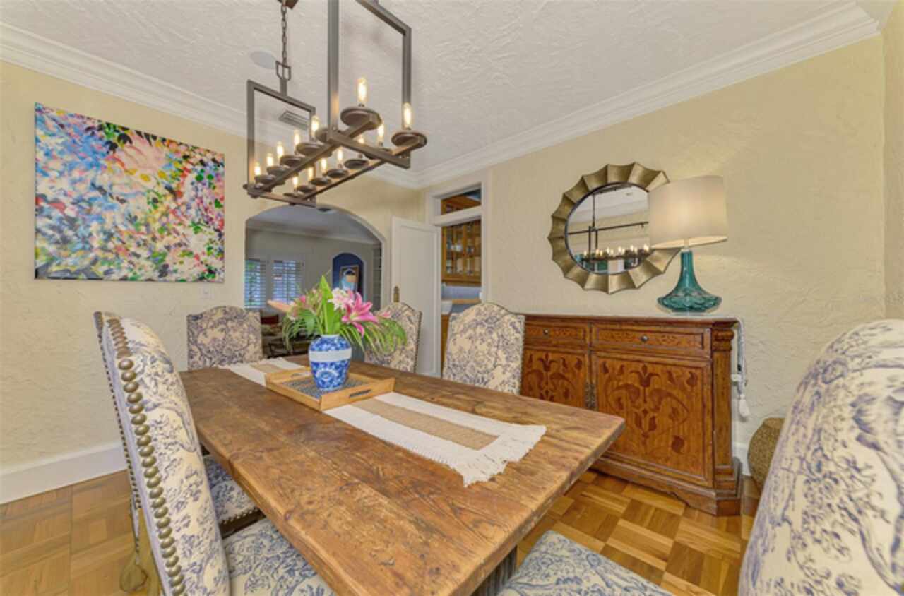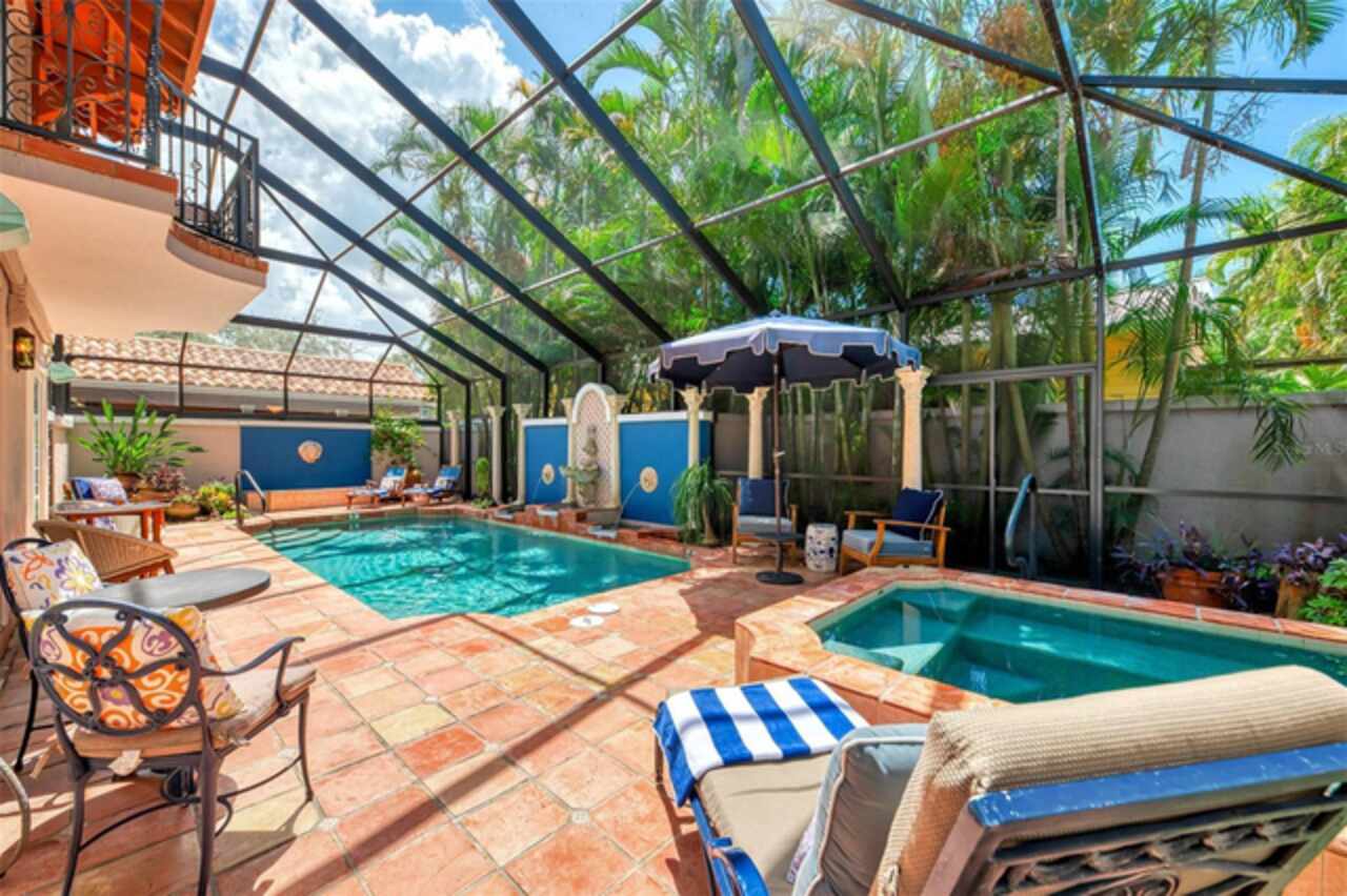Welcome to Casa de Flores, a one-of-a-kind, Spanish Revival estate nestled in the coveted, west of the trail, Granada neighborhood. Built in the 1920s, this beautifully restored residence includes a main home with two bedrooms and two baths, plus two separate guest cottages. The pool house cottage offers two-story living with a private balcony overlooking the pool courtyard, evoking the charm of a secluded European inn—perfect for quiet mornings or relaxing evenings. The first level features a bedroom, and convenient laundry access. Upstairs, a bedroom and a full-service kitchen with dining area. The second guest cottage includes a bedroom, full bath, kitchenette, and a comfortable sitting area with views of the courtyard. These detached spaces are ideal for hosting in-laws, college or guests, and also work beautifully as a private home office, art studio, or creative retreat. At the heart of the main house is a thoughtfully updated chef’s kitchen with a 6-burner Dacor gas stove, double ovens, Sub-Zero refrigerator, and beautiful tile accents—designed to inspire culinary creativity. The home also offers a formal dining room, a comfortable family room, and a welcoming front living room. The primary bedroom is large enough for a king-sized bed, includes a walk-in closet, and has a separate sitting area or reading nook, currently adorned with a daybed. Architectural details such as a hand-carved wood door, a charming clawfoot bathtub, original parquet and tile floors, arched doorways, textured plaster walls, and built-in bookcases all contribute to the home’s Spanish Mediterranean character, blending old-world warmth with modern comfort. Outdoors, a charming front patio sets the tone for relaxed Florida living, while the private walled courtyard is a resort-like retreat with a heated pool and spa, lush tropical landscaping, and a trellis ideal for shaded dining. Ample parking ensures effortless hosting for family and friends. Roofs were replaced in 2021, and additional features such as a whole-house generator and hurricane shutters provide peace of mind for year-round living or seasonal enjoyment. Whether you envision a forever home, multi-generational compound, flexible live/work setup, or a high-performing Airbnb, Casa de Flores offers unmatched character and lifestyle versatility. With its prime location just minutes from world-renowned Siesta Key Beach and the charming boutiques and dining spots of Southside Village, you’ll enjoy the best of Sarasota’s coastal living. Experience the magic for yourself—take a personal tour today by enjoying the walk-through video - https://vimeo.com/1110461692