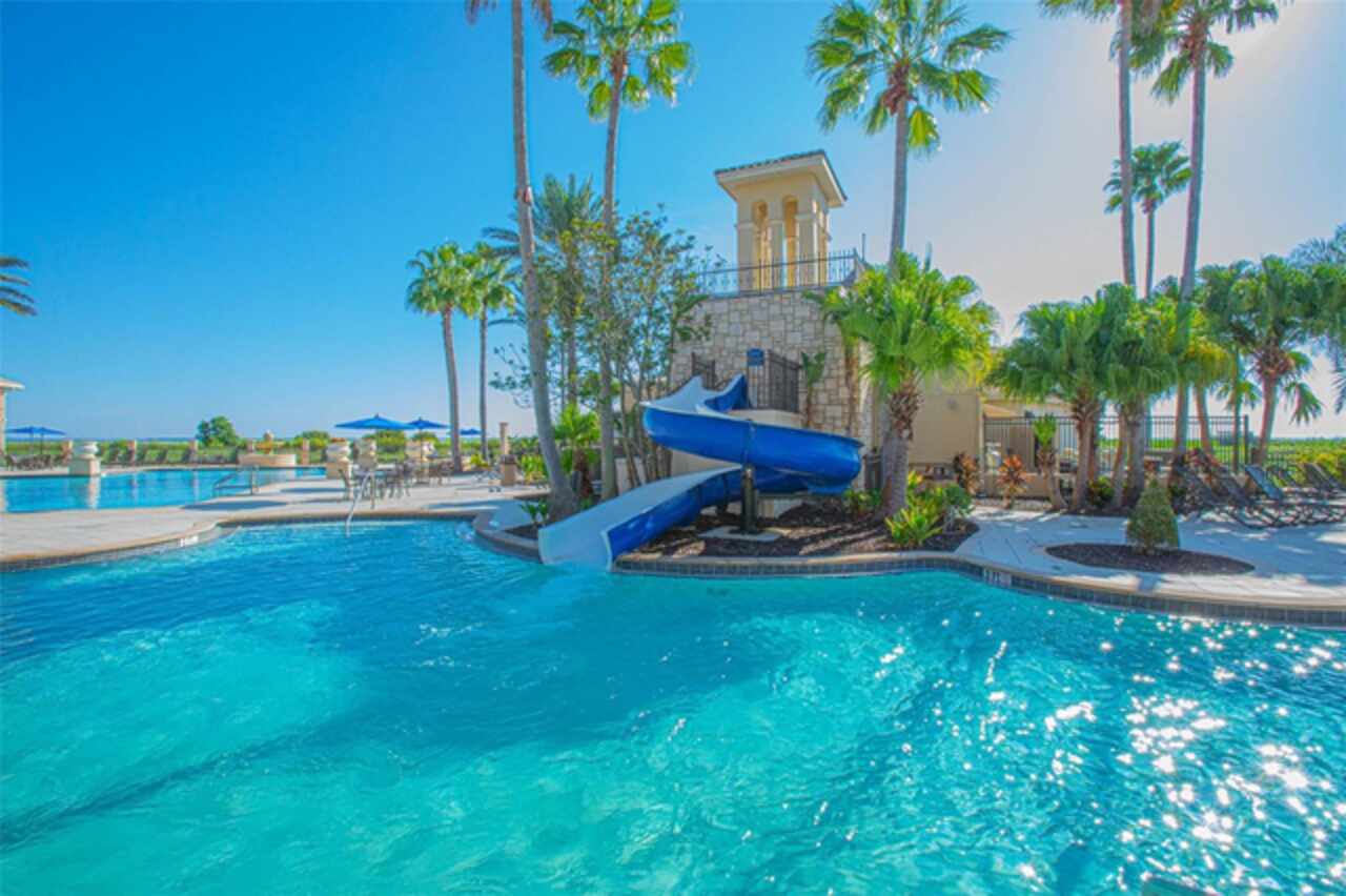 Step into unparalleled luxury at 3844 Bowfin Trail, a true Mediterranean masterpiece in Bellalago Community. Spanning 5, 280 sq ft, this custom “mini-mansion” boasts six bedrooms, a dedicated theatre room, private office/den and an expansive loft that opens to a balcony overlooking your resort-style pool and spa. From the moment you arrive, you’ll be greeted by meticulously landscaped grounds, elegant pavers and a Spanish-Mediterranean tile roof accented with a charming Romeo & Juliet balcony. Inside, soaring ceilings, 8-ft solid-core doors, designer light fixtures and a sweeping wood-and-spindle stairway create an immediate sense of grandeur. The gourmet kitchen features granite countertops, stainless-steel appliances, custom cabinetry and an oversized island ideal for casual meals or cocktail parties. Step through French doors onto the over-extended screened lanai, complete with a built-in outdoor kitchen, ambient lighting and panoramic views of the conservation-backed backyard—perfect for summer soirées or quiet morning coffees. Live like you’re on vacation every day with Bellalago’s 24-hour guard-gated security, championship-style pool, water-park slides, fitness center, lakeside fishing piers and “Flip Flops” poolside bar. All this just 35 minutes from Walt Disney World, Universal Orlando and Central Florida’s top attractions.