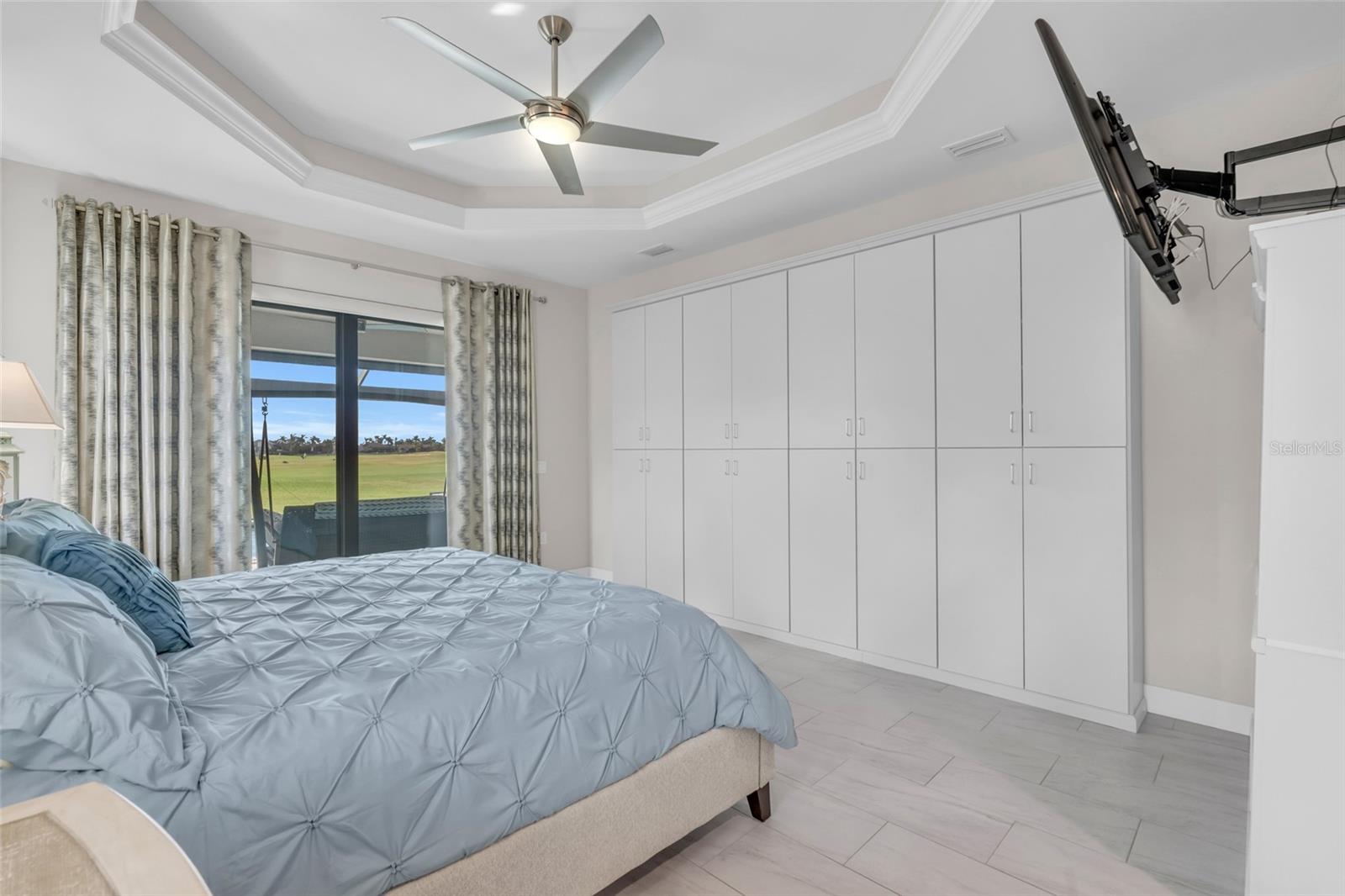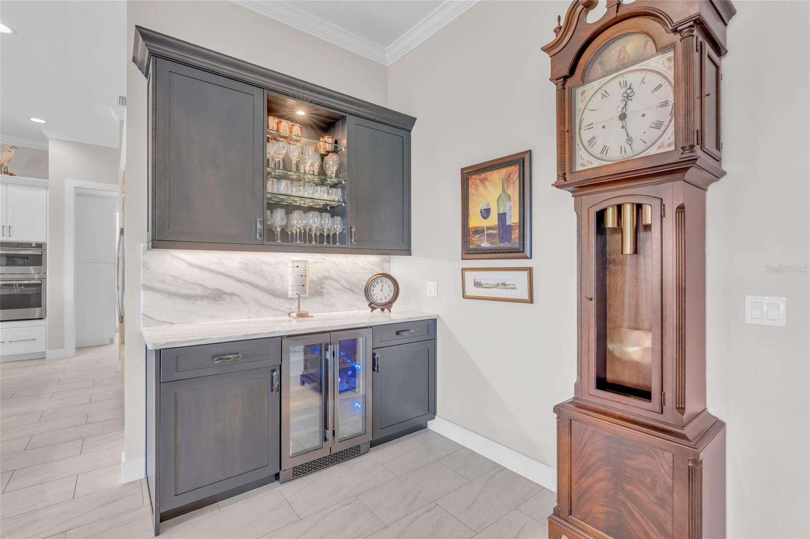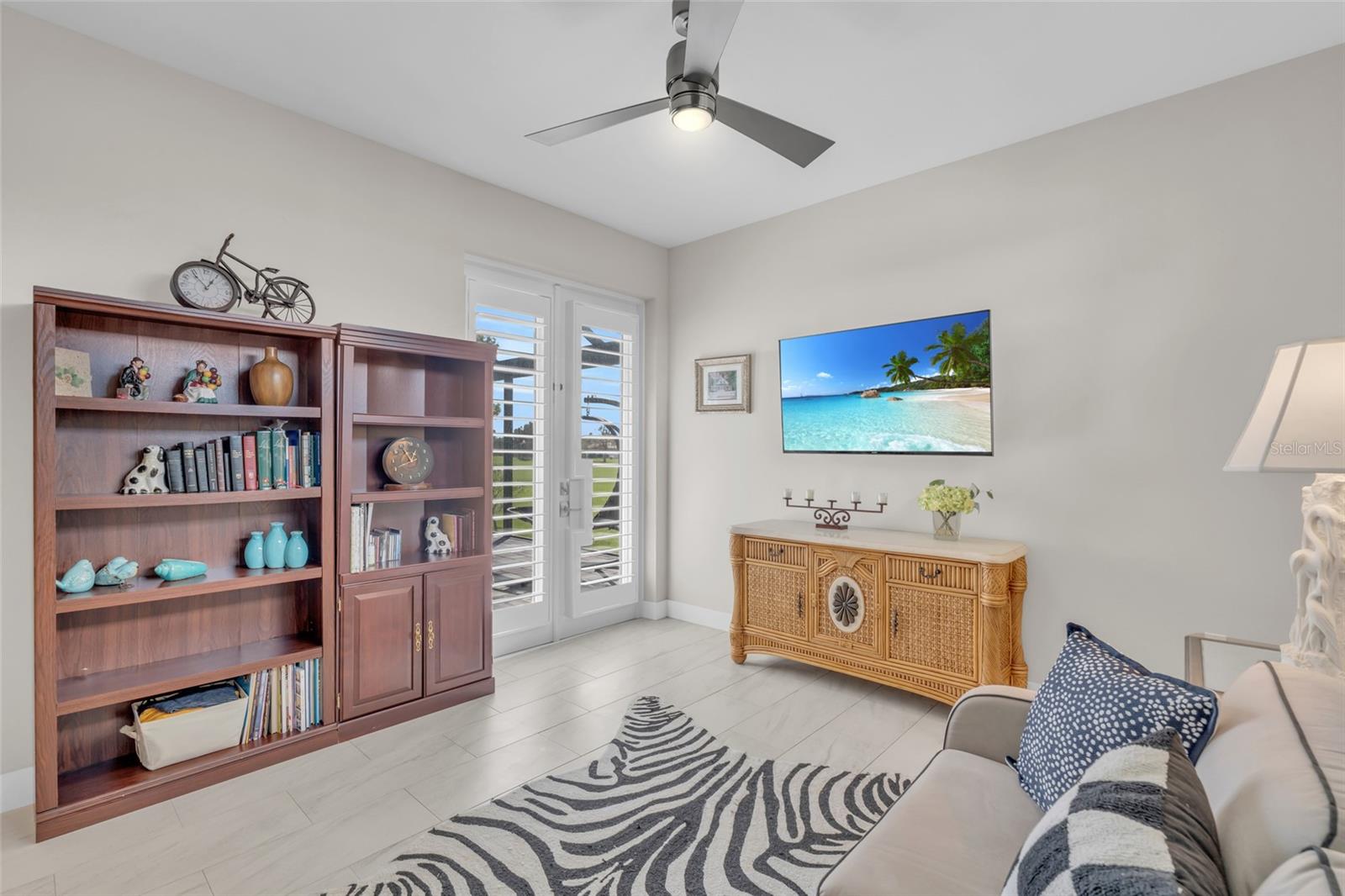 This exceptional residence, situated on the 13th hole of Twin Isles Golf Course, offers a captivating blend of contemporary design, high-end finishes, and picturesque southwestern views for unforgettable sunsets. From the moment you arrive, the expansive paver driveway and walkway, lush landscaping, elegant glass double doors, and Bahamian style accent shutters create a captivating first impression. Boasting a large open floor plan, this 2020-built three bedroom plus den home features impact glass windows and doors, and soaring coffered ceilings with elegant crown molding. A zero-corner slider seamlessly connects the living room to the outdoor oasis, where you will no doubt spend countless evenings unwinding as the sun sets over the large picture window screen enclosure. The expansive outdoor entertaining area features a handsome heated saltwater pool with spillover, Pebble Tec finish, inviting in-pool lounges, plus Pentair controls, all overlooking the expansive golf course. You will love to relax with friends or dine al fresco under the ample covered lanai with convenient pool bath access. The chef’s kitchen is a culinary dream, with abundant work/entertaining surfaces and storage. High end stone counters and backsplash add pizzazz to this killer kitchen, while GE Profile appliances, including a 48” wide refrigerator, cooktop, and built-in double oven support all of your culinary needs. Entertaining is a breeze with a dedicated bar with wine chiller, dual islands with breakfast bar seating, and a hidden oversized walk-in pantry. Throughout the home, you'll find a rich neutral color scheme, light colored plank tile flooring, custom lighting, crown molding, plantation shutters, and solid-core doors. The dedicated office, accessed via French doors, includes an impressive custom built-in office system. Prepare to be blown away by the oversized 22x40 air-conditioned 4 car garage, with epoxy floor and plenty of room for tinkering and storage! The luxurious master suite is a serene retreat featuring tray ceilings, motorized shades, private lanai access, dual walk-in closets, and bonus built in storage. The enticing spa-like bath offers split vanities, large soaking tub, and a custom walk-through shower. The split-bedroom layout ensures privacy for guests, with two generously sized suites…one with direct lanai access and ensuite bath and a second featuring ensuite with a walk-in closet. An impressive utility room completes this incredible home with tremendous storage to keep you organized. Impact windows plus a motorized roll down lanai shutter, installed in 2023, allows you to vacation with peace of mind. Burnt Store Isles is a deed-restricted golf and boating community, offering great proximity to downtown Punta Gorda, Fishermen’s Village, world-class fishing and boating, and beautiful parks.