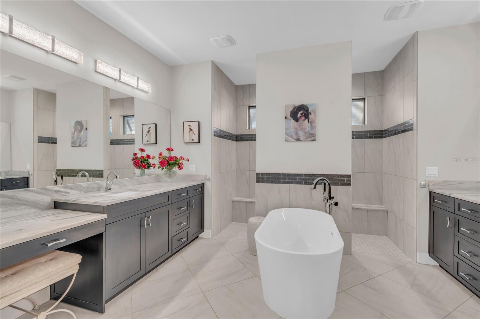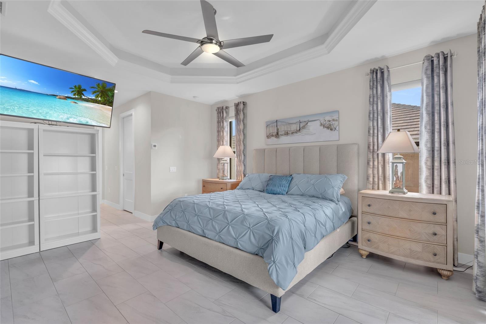 Ceiling Fans(s), Coffered Ceiling(s), Crown Molding, Dry Bar, Eat-in Kitchen, High Ceilings, Open Floorplan, Split Bedroom, Stone Counters, Tray Ceiling(s), Walk-In Closet(s), Window Treatments
