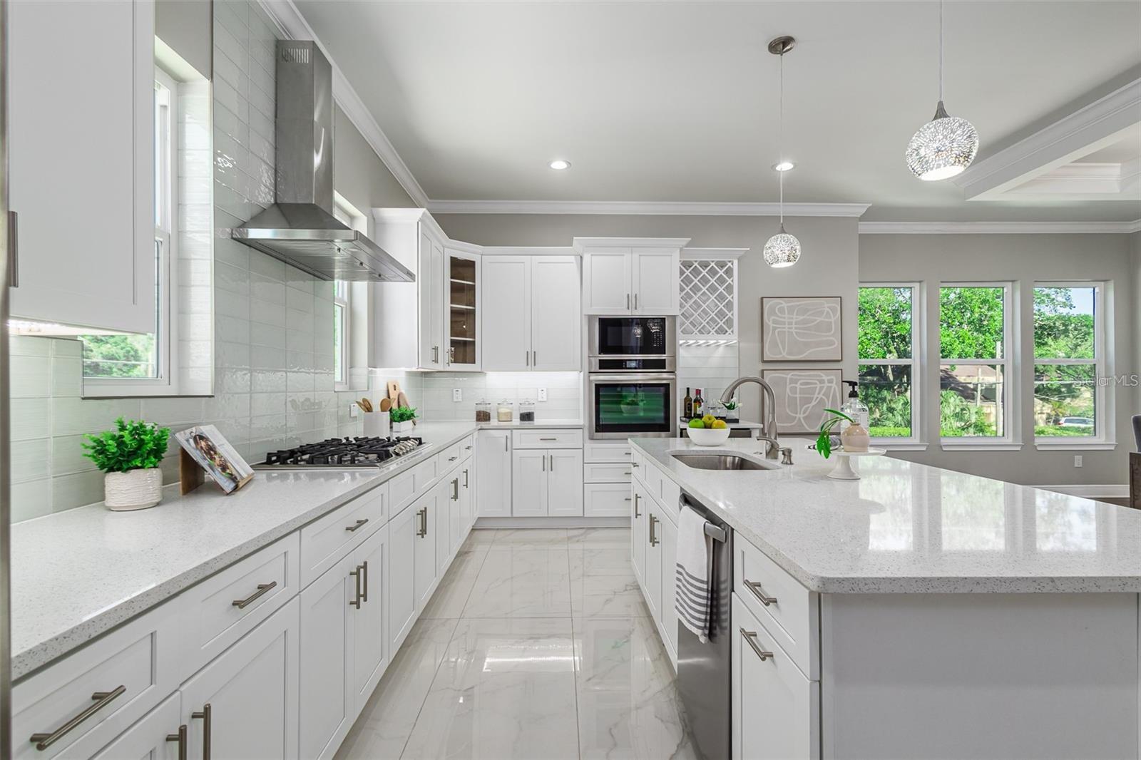 Built-In Oven, Cooktop, Dishwasher, Disposal, Microwave, Refrigerator, Tankless Water Heater, Wine Refrigerator