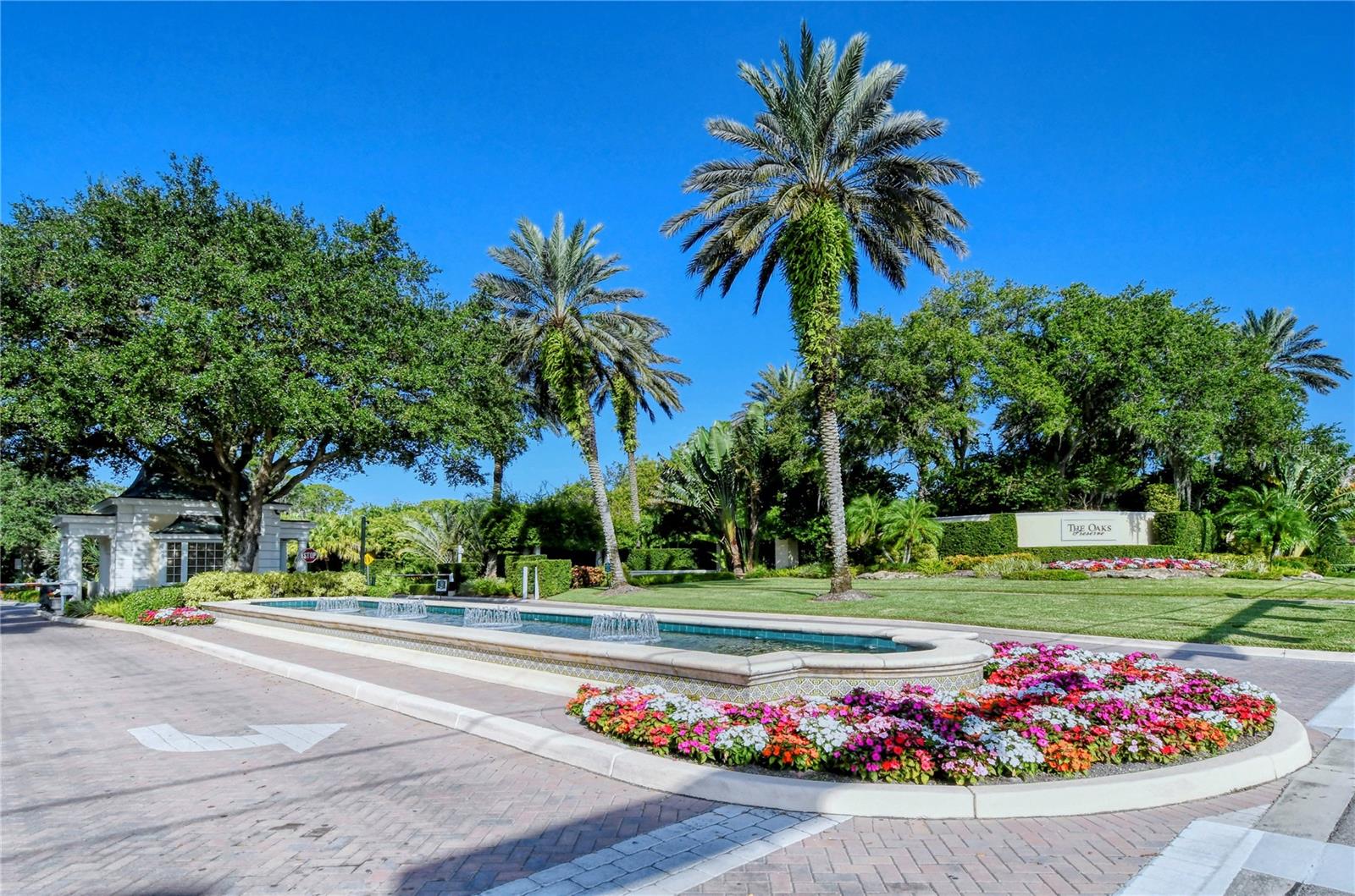One or more photo(s) has been virtually staged. From the moment the private elevator doors open, the panorama of the view has you at ‘hello, ” with a northwest-facing expanse over the preserve, the lagoon below, Sarasota Bay and the Gulf beyond. This orientation brings cooler interiors, dramatic natural light and unforgettable sunsets. Rare 10’ ceilings amplify the spaciousness and invite the light to flow freely throughout this 2, 778-sq.-ft. penthouse. The residence features tile flooring and walls of sliders leading to a large screened terrace perfect for relaxing or entertaining. The kitchen is both spacious and stylish, featuring stone countertops and harmonizing backsplash, stainless-steel appliances, and wood-toned cabinetry with glass details. Both an adjacent breakfast area and a formal dining space offer flexibility for everyday living or entertaining. The spacious primary suite is a tranquil retreat with its own terrace access, sitting/desk area, and spa-style bath with dual vanities, makeup counter, soaking tub and walk-in shower. Two guest bedrooms plus a dedicated office or den provide space for everyone. A standout among its peers, this residence includes a private 2-car garage and its own driveway – a rare and valuable amenity that provides easy front access and convenient guest parking just outside your door. The Oaks is a nationally recognized, 24-hour guarded country club community offering an unmatched lifestyle. Amenities include two 18-hole championship golf courses, an award-winning racquets program with 12 Har-Tru Hydro-Grid tennis courts, 4 pickleball courts, a croquet lawn, state-of-the-art fitness center, junior Olympic heated pool, bocce, basketball, playground and more. Meridian residents enjoy access to their own private amenity center featuring a heated pool & spa, fitness facility and outdoor grilling area. Membership is required, with no waitlist for golf or social membership.