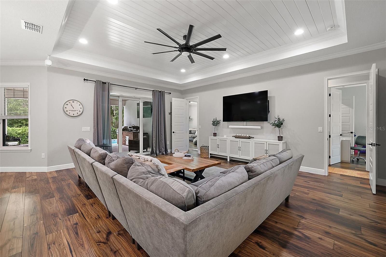 Built-in Features, Ceiling Fans(s), Coffered Ceiling(s), High Ceilings, Open Floorplan, Split Bedroom, Stone Counters, Tray Ceiling(s), Walk-In Closet(s)