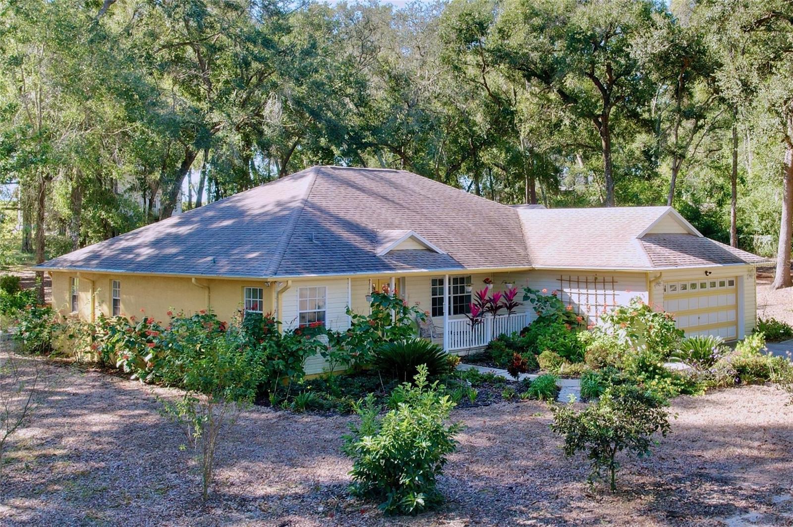 Under contract-accepting backup offers. HOME WITH ATTACHED GUEST HOUSE & RV PARKING!!! Here’s your OPPORTUNITY to own this one of a kind 3/2/2 Home on OVER an ACRE with an Attached INLAW/GUEST Home with Full Bedroom, Full Bath, Full Living Room, and a Full Kitchen. If you have an RV or if you have friends or family who come to visit with an RV this property can accommodate your needs. The RV Port has full electric service with a Convenient Storage Shed out back. The Main Home has 1765 Sq. Ft. with an Open Great Room Floor Plan. The Guest House has 828 Sq. Ft., Or you can open the 2 areas up and have 2593 Sq. Ft. The Main House has 3 bedrooms, 2 baths, a full Laundry Room, Kitchen, Covered Lanai and a 2 car Garage. There is a HUGE Paver Patio that services both the Main Home and the Guest House and the property has Plum, Avocado, Orange, Mango, Starfruit and Loquat Trees and Butterfly Gardens with Breathtaking Flowering Plants. There is an irrigation system to keep everything watered. There’s also a fire pit for cozy fall evenings. The Versatile Guest House/Apartment/In-Law Quarters has it's own private entry and is fully functional with it’s own AC system. The Guest House has a patio, a full bedroom, a bathroom with a walk in shower, dining area, kitchen and spacious living room. The Lot is 1.63 acres zoned AR (Agricultural Residential). Easy access to US 301 – Dade City for shopping, dining & medical. These types of properties don’t come on the market very often so schedule your viewing today!