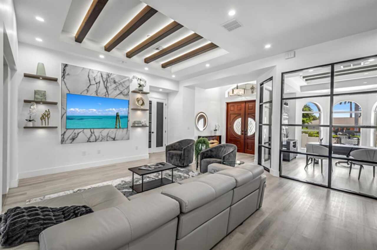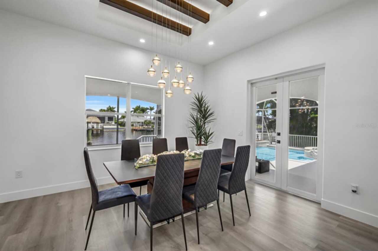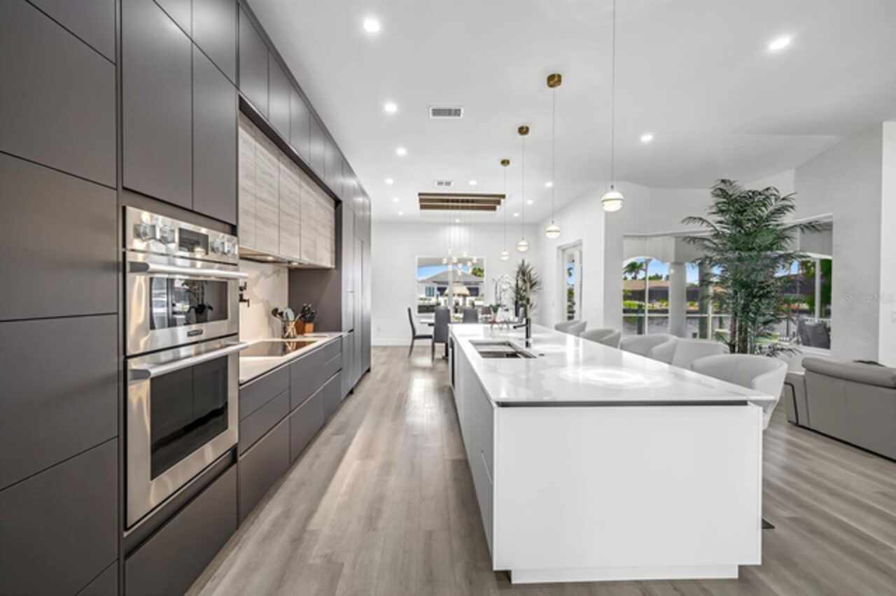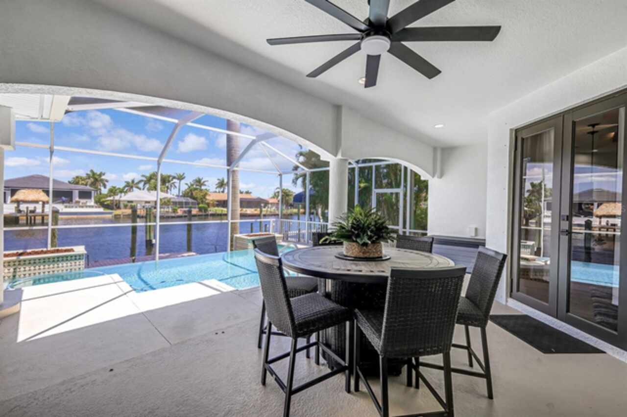 Welcome to your waterfront masterpiece in Cape Coral’s Savona boating community. This extraordinary residence offers deep water sailboat access on an oversized canal—ideal for large vessels. Just minutes from the Caloosahatchee River with no bridges, it’s a dream location for yachting enthusiasts and anyone seeking luxury waterfront living in sunny Southwest Florida. Boasting $600, 000 in premium upgrades, this home has been reimagined with both elegance and functionality in mind. Highlights include 10-foot ceilings, custom lighting, upgraded insulation, newer HVAC, and a freshly painted interior and exterior. The modern open-concept layout seamlessly blends indoor and outdoor living. At the heart of the home is a chef’s kitchen, complete with: an oversized island with under-mount lighting and deep sink with disposal, Subzero 48” refrigerator/freezer, Signature 2023 appliances including a steam oven, microwave, dishwasher, wine fridge, and a custom pullout coffee bar and pot filler for added convenience. The elegant dining area seats eight and opens via French doors to a resort-style patio with tranquil water views of the Sonata Canal. The Primary bedroom suite boasts French doors to the lanai, a stunning porcelain feature wall and mirror, and a designer walk-in closet with ambient lighting. The luxurious primary ensuite boasts a floating toilet, rain showerhead, body sprays, stylish vanities, modern plumbing fixtures, and designer lighting throughout. Two additional European-inspired bathrooms offer designer finishes and floor-to-ceiling porcelain tile with LED-lit mirrors. Outdoor living is equally impressive, with a newly painted pool lanai, new lighting and ceiling fan, and upgraded pool lighting to enhance nighttime ambiance. Boaters will love the 70-foot dock and captain’s walk, complete with lighting, electrical, and water—perfect for accommodating up to a 65-foot yacht. Best of all, this home is elevated above the floodplain and has never experienced water intrusion, offering true peace of mind during storm season. Don’t miss your chance to own this exclusive waterfront oasis—schedule your private tour today!