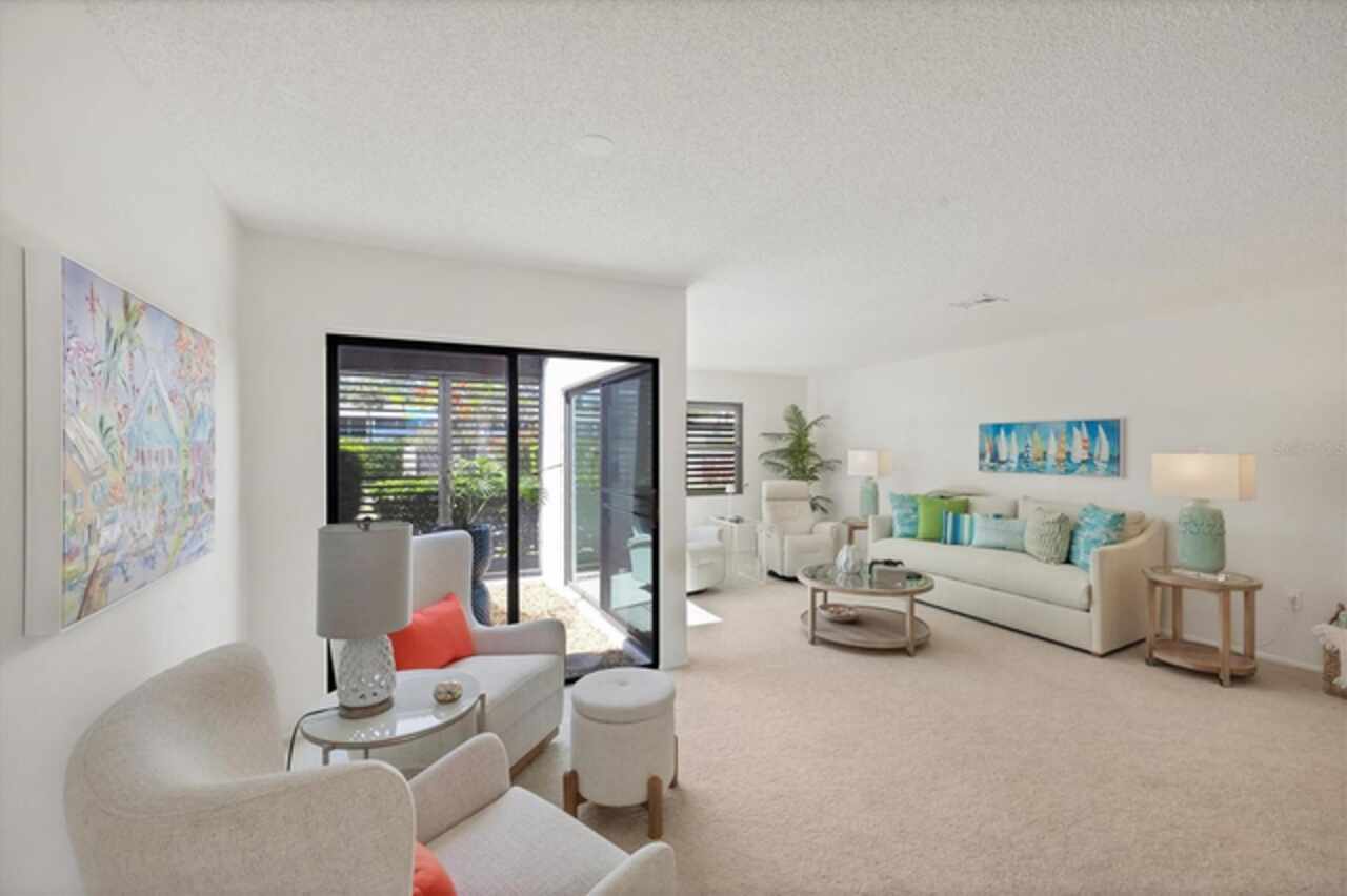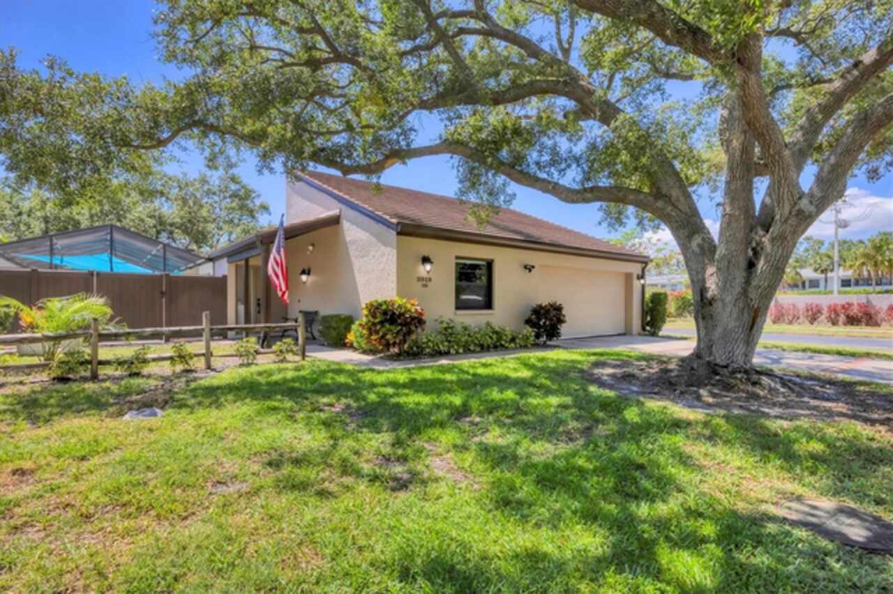 Welcome to Glen Oaks Manor...A boutique enclave of large Courtyard Villas carefully situated inside it's own park designed as a Canopy Tree neighborhood complete with paths, gazebos, park benches, lakes, a beautiful variety of trees and plants, and it is a dog friendly community. Mr. & Mrs. Clean live here! This is an END unit villa affording more windows and letting the Florida sunshine in. Be one with nature in your large 33 x 24 screened courtyard with a Pebble Tech type patio surface to make your own Zen garden AND ADDED BONUS... on the other side of your villa is an atrium with water and electric great for an orchid garden, fountain, kitty corral, aviary...it is a great space that lets the sun light shine in! This is a split plan with the bedrooms and bathrooms positioned at opposite ends of the home. Updates include a NEW roof, NEW HVAC, NEW kitchen appliances, NEW washer & dryer, NEW hot water tank, NEW hardware in the kitchen and on all doors, NEW ceiling fans, NEW switches and electric plugs throughout, Hot and cold fresh water lines replaced throughout, NEW gutters, NEW paint inside and in the courtyard, Beautiful NEW Lighted bathroom mirrors with various ambient light settings. Great news for getting insurance...this home has the "3rd Nail", a new roof and is located in the most desirable "X" flood zone for no flooding! Whether you are looking for a full time home, seasonal home or investor purchase...this is it and it is PRICED RIGHT! Don't wait! Don't Hesitate! It's time to make that move so come on over to see this Gem of a home. Price reduced to $379, 900