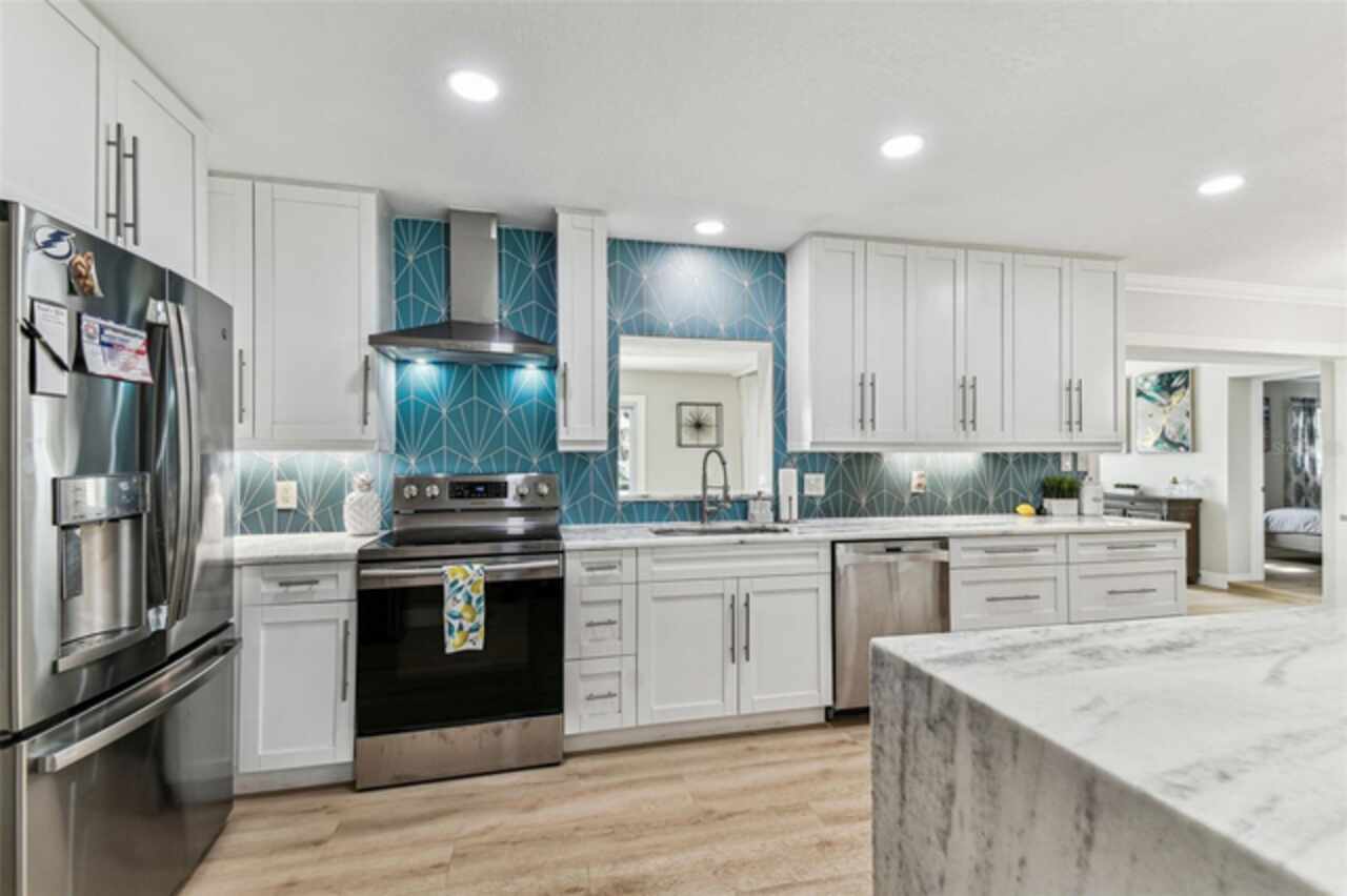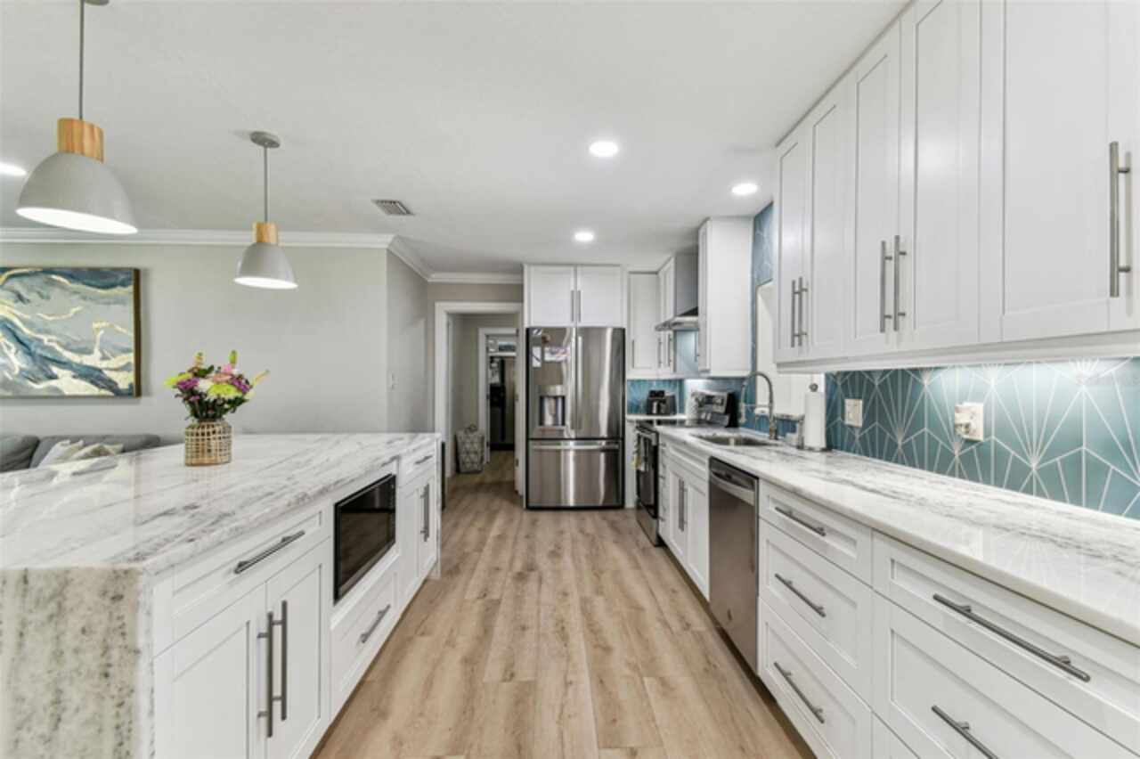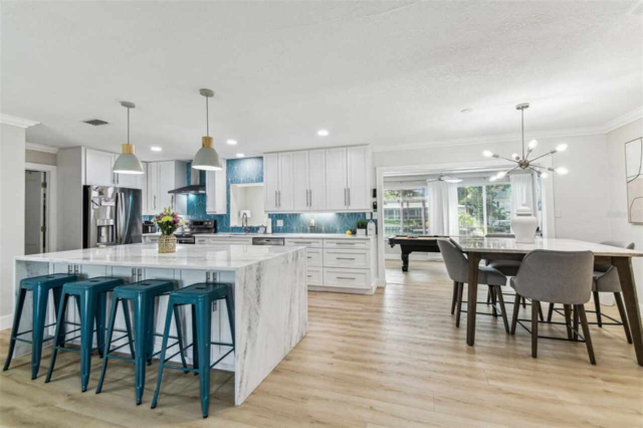 Under contract-accepting backup offers. Seller says bring all offers! Welcome to Dana Shores! This single-story residence features 2, 088 sq ft of living space, 4 beds, 2 baths, 2 car garage, and a patio with dock! Be greeted to stunning COASTAL CURB APPEAL with a NEWER ROOF (2021) and an OVERSIZED driveway. Clean lines, fresh paint, and MODERN LAMINATE FLOORs sprawl throughout the home! A HUGE OPEN family room combo runs into the DREAM KITCHEN that offers marble countertops, SLEEK CABINETRY, RECESSED LIGHTING, STAINLESS STEEL appliances, huge island, pendent lights, under cabinet lighting, range hood, built in microwave, and backsplash! The primary bedroom is a great size with two closets. Primary bath has a sleek vanity with huge SHOWER that has new seamless glass doors! All the secondary bedrooms are well sized with ample closet space. Enjoy TRUE FLORIDA LIVING lounging on your patio or toss some lines off your dock! It's all about the SALT LIFE OUT HERE! Bring your BOAT/RV as this neighborhood has NO HOA! Additional features include: UPDATED SEAWALL, UPDATED WINDOWS, NEWER HVAC'S, PERGOLA, TANKLESS WATER HEATER, NEW SOD/LANDSCAPE, DEISGNER FIXTURES, CROWN MOLDING, FIREPIT, HAMMOCK, & so much more! All while showcasing a perfect central location CLOSE TO EVERYTHING TAMPA BAY HAS TO OFFER. Make your appointment today!