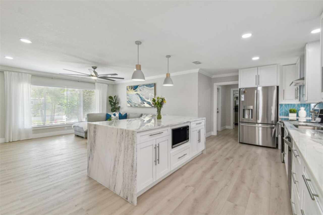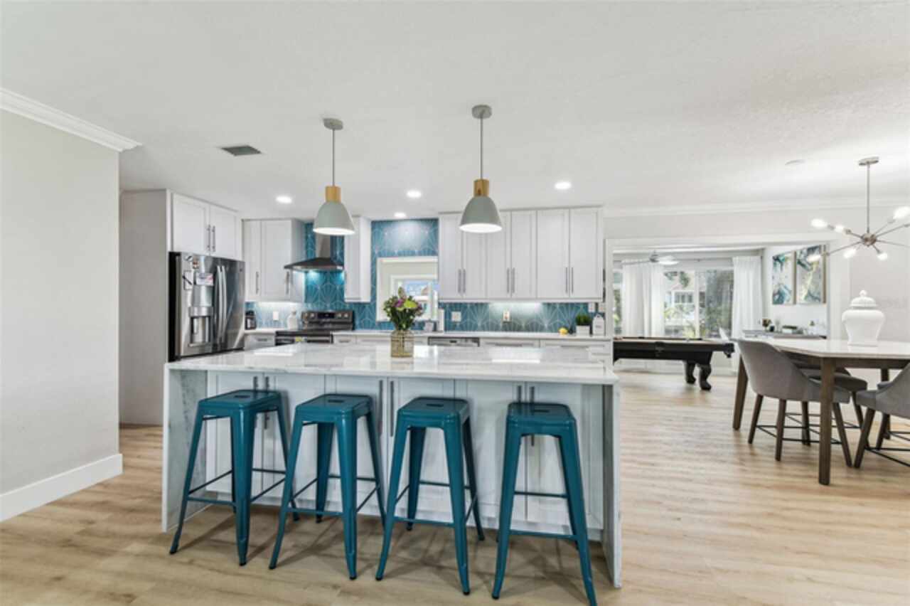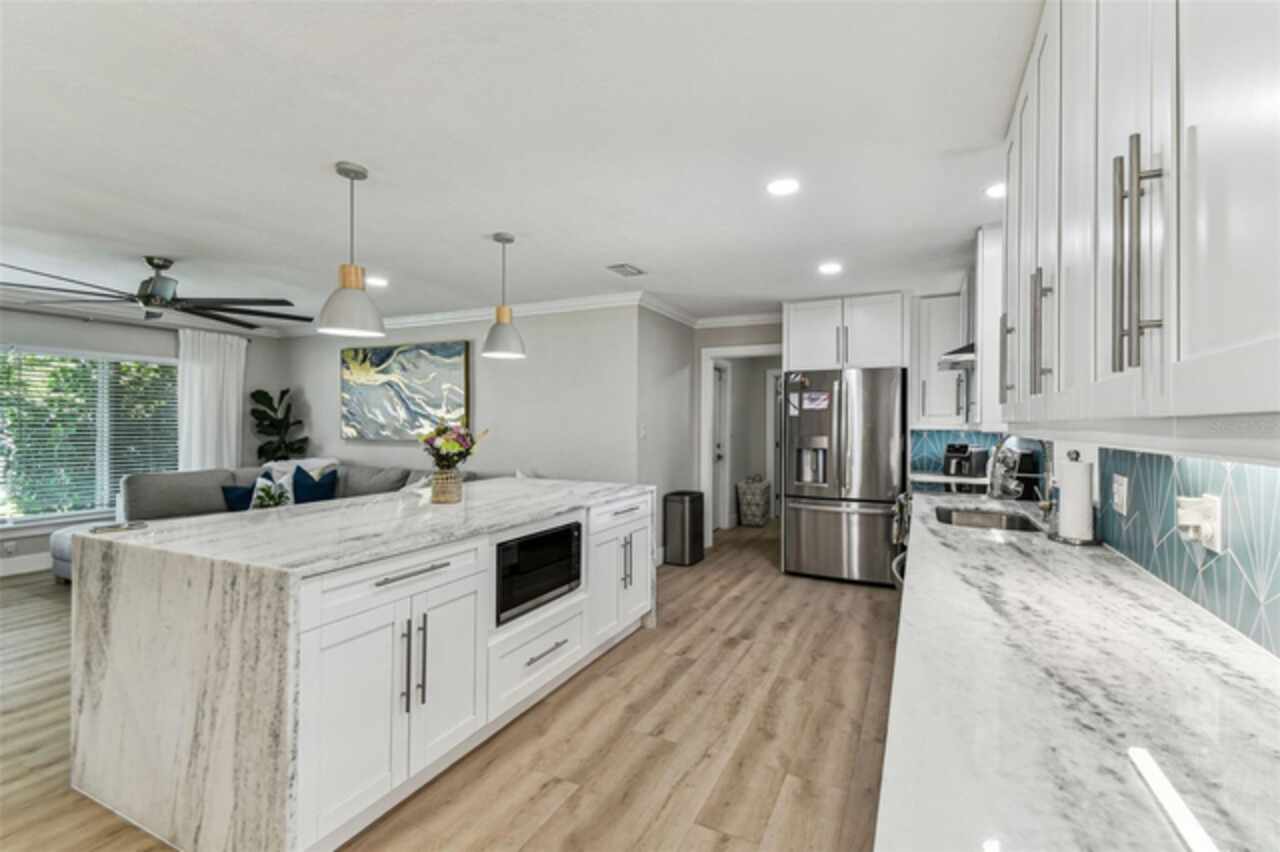 Under contract-accepting backup offers. Seller says bring all offers! Welcome to Dana Shores! This single-story residence features 2, 088 sq ft of living space, 4 beds, 2 baths, 2 car garage, and a patio with dock! Be greeted to stunning COASTAL CURB APPEAL with a NEWER ROOF (2021) and an OVERSIZED driveway. Clean lines, fresh paint, and MODERN LAMINATE FLOORs sprawl throughout the home! A HUGE OPEN family room combo runs into the DREAM KITCHEN that offers marble countertops, SLEEK CABINETRY, RECESSED LIGHTING, STAINLESS STEEL appliances, huge island, pendent lights, under cabinet lighting, range hood, built in microwave, and backsplash! The primary bedroom is a great size with two closets. Primary bath has a sleek vanity with huge SHOWER that has new seamless glass doors! All the secondary bedrooms are well sized with ample closet space. Enjoy TRUE FLORIDA LIVING lounging on your patio or toss some lines off your dock! It's all about the SALT LIFE OUT HERE! Bring your BOAT/RV as this neighborhood has NO HOA! Additional features include: UPDATED SEAWALL, UPDATED WINDOWS, NEWER HVAC'S, PERGOLA, TANKLESS WATER HEATER, NEW SOD/LANDSCAPE, DEISGNER FIXTURES, CROWN MOLDING, FIREPIT, HAMMOCK, & so much more! All while showcasing a perfect central location CLOSE TO EVERYTHING TAMPA BAY HAS TO OFFER. Make your appointment today!