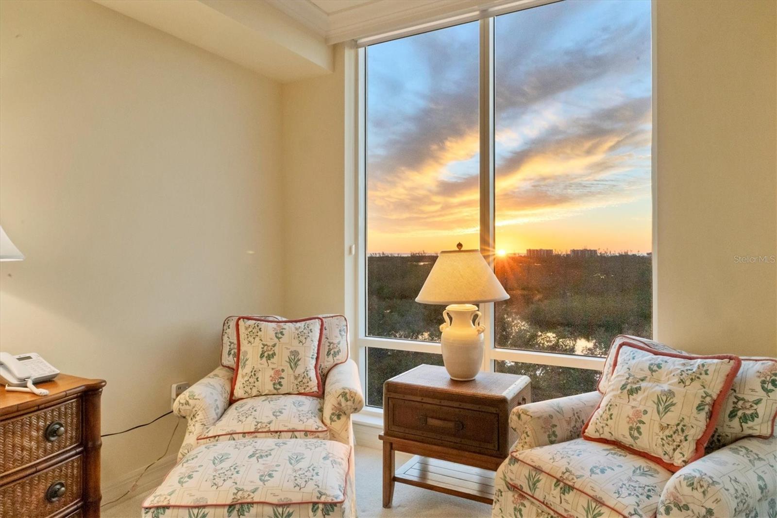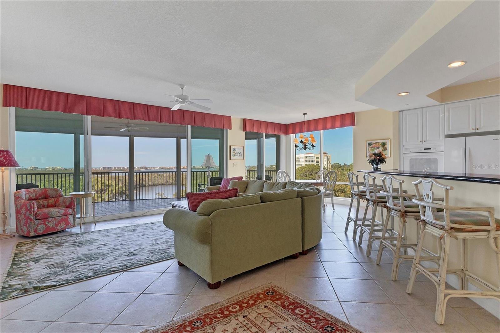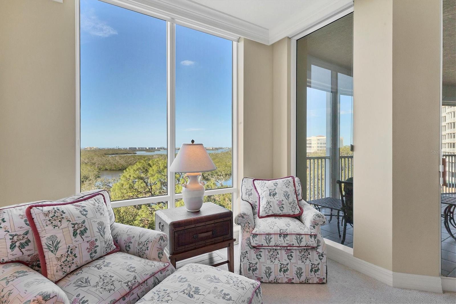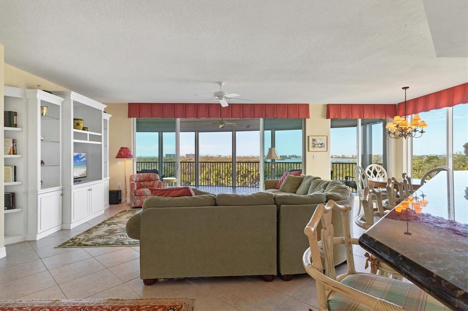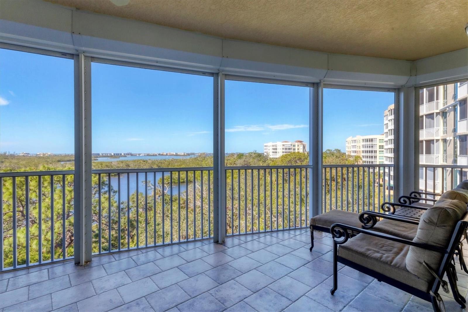 Immerse yourself in the unparalleled, unobstructed views of Little Sarasota Bay, the Gulf of Mexico and Midnight Pass, with Casey Key and Siesta Key gracing the horizon from this 6th-Floor Corner Unit Condo. Marvel at the gorgeous water views during the day and the stunning sunsets in the evening from your expansive, sweeping balcony, which feels like an additional room. Experience the epitome of seamless indoor-outdoor living in this expansive condo that spans nearly 2, 800 square feet. Designed to emulate the ambiance of a single-family home, the open floor plan features a great room, a separate dining area, and a versatile den. The great room impresses with soaring 10-foot ceilings, floor-to-ceiling windows, and sliding doors that effortlessly blend the indoors with the outdoors, leading to a large, screened balcony with breathtaking water views. This harmonious flow floods the living space with natural light and offers a tranquil backdrop of sparkling vistas. The spacious kitchen is a culinary delight, boasting an eat-in area and granite high bar countertops, perfect for casual meals and entertaining guests. The popular split floor plan provides privacy and convenience, featuring 3 bedrooms and 3 baths. The den adds a layer of versatility to the home. The large kitchen includes an eat-in space and granite high bar countertops. The luxurious primary suite is separate from the guest rooms for privacy and includes stunning water views, large walk-in closets, and a luxurious bathroom. Additional features include an elegant entry, and an exclusive private foyer and elevator. The lanai is equipped with electric hurricane shutters ensuring safety and peace of mind. This secure building offers a wonderful lifestyle with private entry and elevator access. This unit is available for purchase fully furnished and is well-maintained. The Oaks community offers a distinguished, 24-hour guarded country club experience with numerous accolades, including Platinum Club of America, Emerald Club of the World, Elite Distinguished Club of the World. Amenities include three restaurants, a ballroom, two 18-hole championship golf courses, an award-winning racquets program with 12 Har-Tru Hydro-Grid tennis courts, 4 pickleball courts, a wonderful croquet facility, a state-of-the-art fitness center, a junior Olympic heated community swimming pool, bocce, a basketball court, a playground, a 7000 square foot fitness center, a brand new $9, 000, 000 dining room and bar with outdoor dining overlooking the golf course. Residents of the Meridian enjoy private amenities, including a heated pool and spa, a fitness center, and an outdoor grill. The Oaks provides well-lit sidewalks, ideal for strolls around the 100-acre preserve. It also boasts scenic trails, perfect for biking and walking while taking in the views of nature. The Oaks is just minutes from the nationally ranked Pine View School the Legacy Bike Trail, shopping, and area beaches. It is conveniently situated near both Venice and Sarasota, offering easy access to the amenities and attractions of both cities, while providing a beautiful, luxurious, and well-rounded country club lifestyle. Membership is required, and there is no waitlist for golf or social membership. Be sure to make an appointment to see this stunning condominium **ENJOY THE 3D VIRTUAL TOUR**