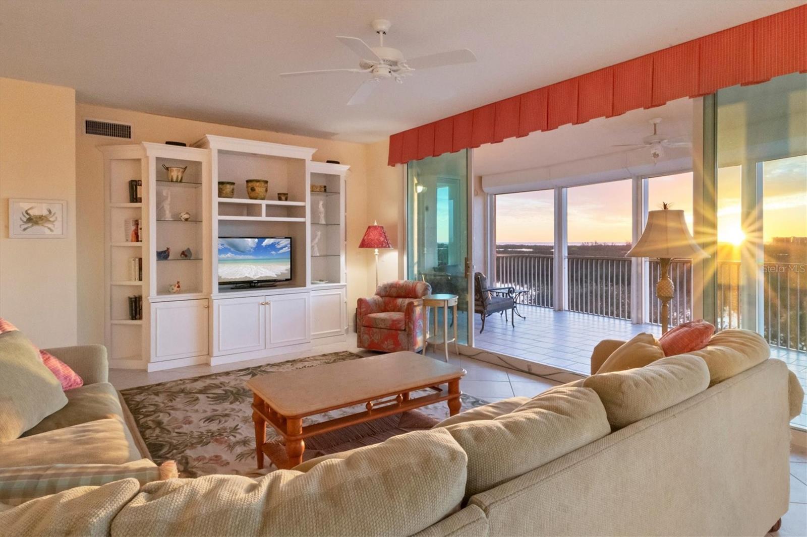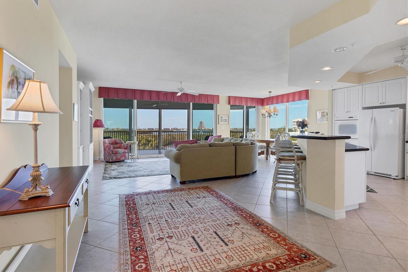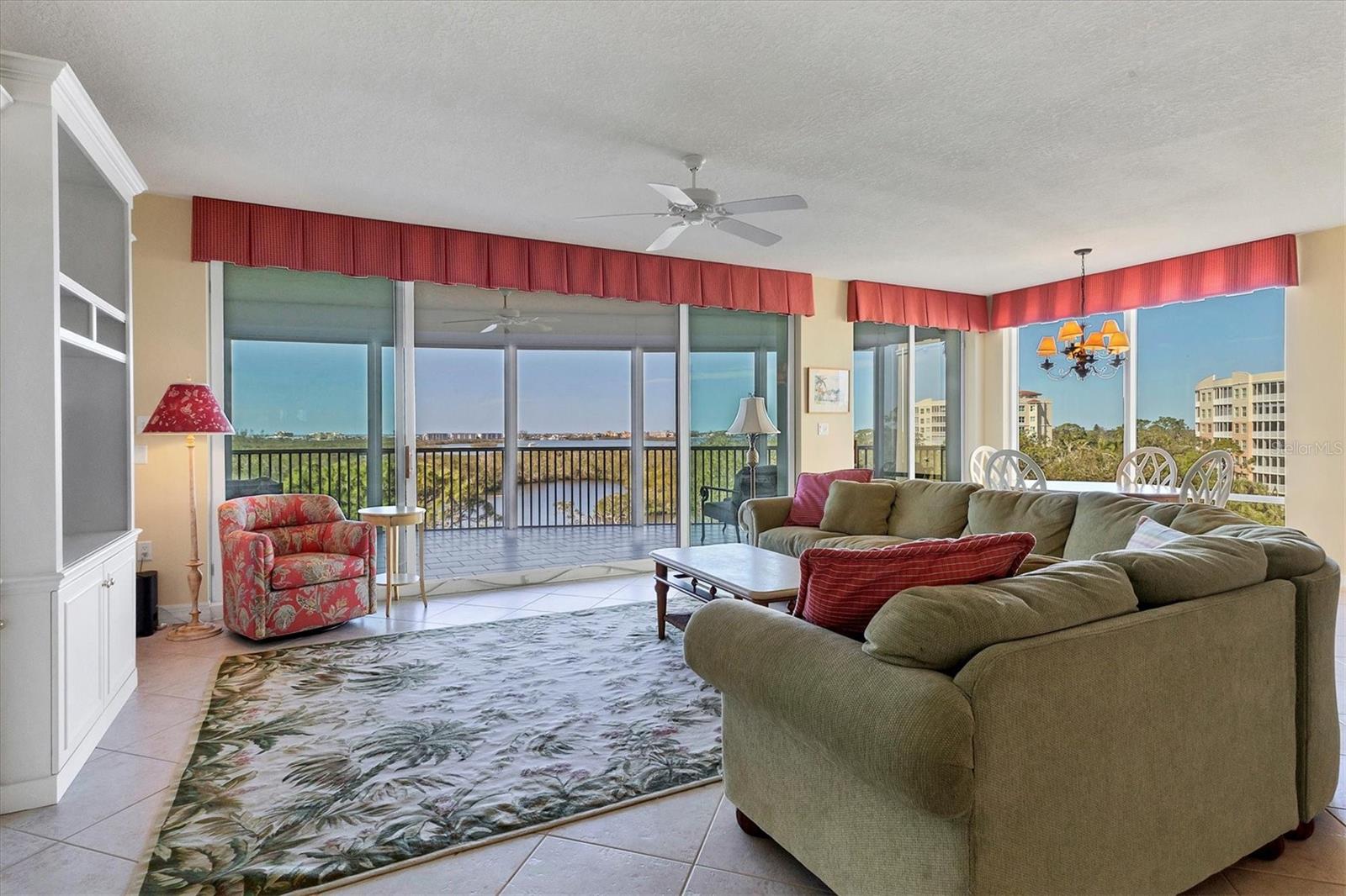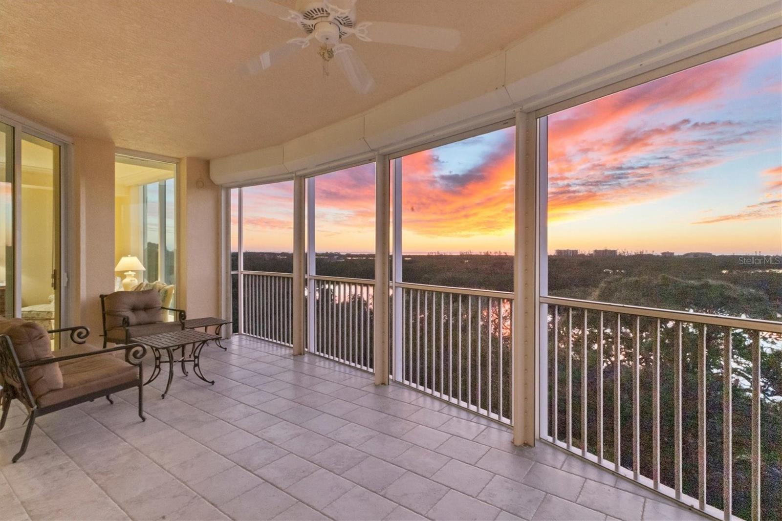 Immerse yourself in the unparalleled, unobstructed views of Little Sarasota Bay, the Gulf of Mexico and Midnight Pass, with Casey Key and Siesta Key gracing the horizon from this 6th-Floor Corner Unit Condo. Marvel at the gorgeous water views during the day and the stunning sunsets in the evening from your expansive, sweeping balcony, which feels like an additional room. Experience the epitome of seamless indoor-outdoor living in this expansive condo that spans nearly 2, 800 square feet. Designed to emulate the ambiance of a single-family home, the open floor plan features a great room, a separate dining area, and a versatile den. The great room impresses with soaring 10-foot ceilings, floor-to-ceiling windows, and sliding doors that effortlessly blend the indoors with the outdoors, leading to a large, screened balcony with breathtaking water views. This harmonious flow floods the living space with natural light and offers a tranquil backdrop of sparkling vistas. The spacious kitchen is a culinary delight, boasting an eat-in area and granite high bar countertops, perfect for casual meals and entertaining guests. The popular split floor plan provides privacy and convenience, featuring 3 bedrooms and 3 baths. The den adds a layer of versatility to the home. The large kitchen includes an eat-in space and granite high bar countertops. The luxurious primary suite is separate from the guest rooms for privacy and includes stunning water views, large walk-in closets, and a luxurious bathroom. Additional features include an elegant entry, and an exclusive private foyer and elevator. The lanai is equipped with electric hurricane shutters ensuring safety and peace of mind. This secure building offers a wonderful lifestyle with private entry and elevator access. This unit is available for purchase fully furnished and is well-maintained. The Oaks community offers a distinguished, 24-hour guarded country club experience with numerous accolades, including Platinum Club of America, Emerald Club of the World, Elite Distinguished Club of the World. Amenities include three restaurants, a ballroom, two 18-hole championship golf courses, an award-winning racquets program with 12 Har-Tru Hydro-Grid tennis courts, 4 pickleball courts, a wonderful croquet facility, a state-of-the-art fitness center, a junior Olympic heated community swimming pool, bocce, a basketball court, a playground, a 7000 square foot fitness center, a brand new $9, 000, 000 dining room and bar with outdoor dining overlooking the golf course. Residents of the Meridian enjoy private amenities, including a heated pool and spa, a fitness center, and an outdoor grill. The Oaks provides well-lit sidewalks, ideal for strolls around the 100-acre preserve. It also boasts scenic trails, perfect for biking and walking while taking in the views of nature. The Oaks is just minutes from the nationally ranked Pine View School the Legacy Bike Trail, shopping, and area beaches. It is conveniently situated near both Venice and Sarasota, offering easy access to the amenities and attractions of both cities, while providing a beautiful, luxurious, and well-rounded country club lifestyle. Membership is required, and there is no waitlist for golf or social membership. Be sure to make an appointment to see this stunning condominium **ENJOY THE 3D VIRTUAL TOUR**