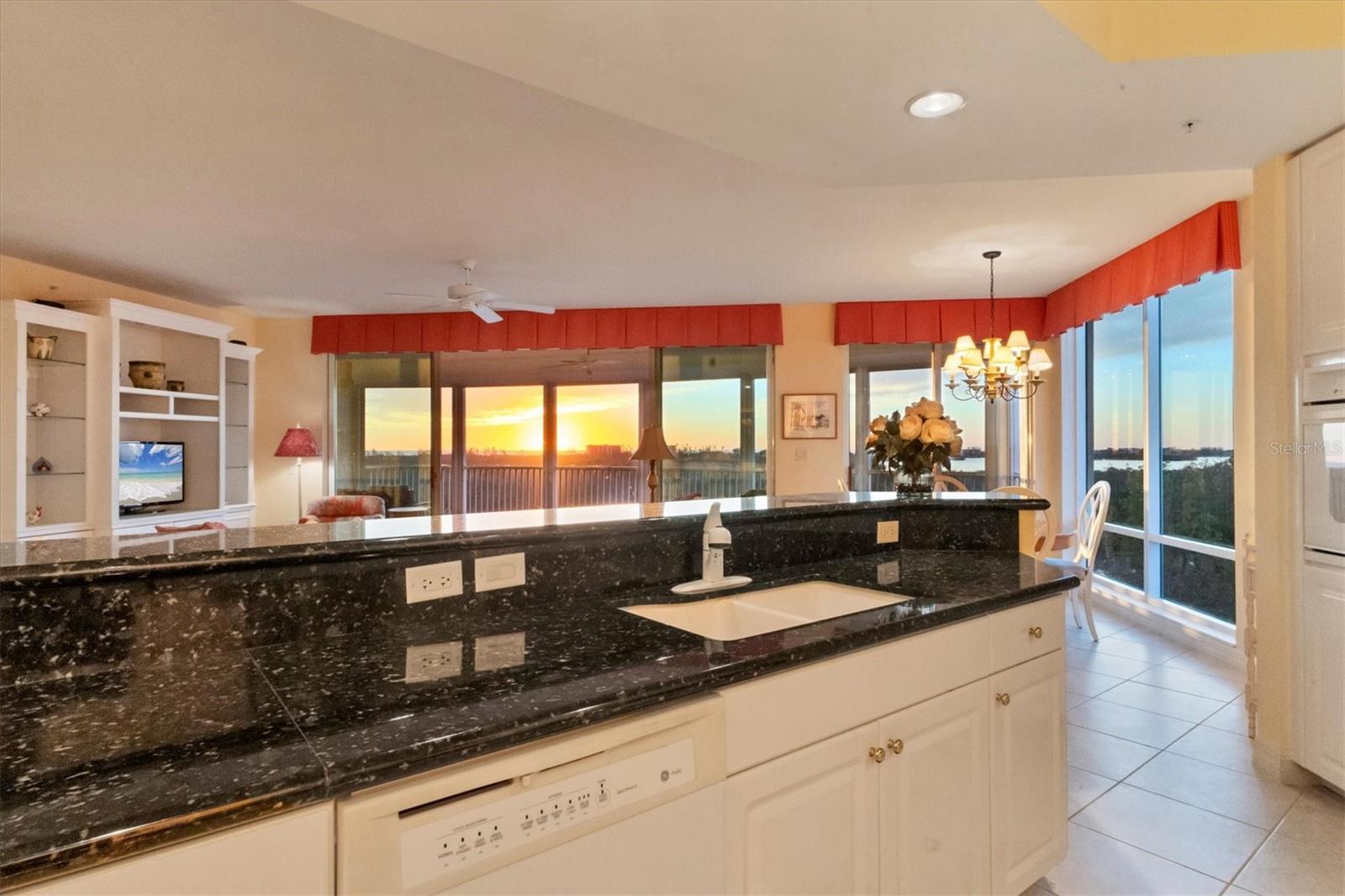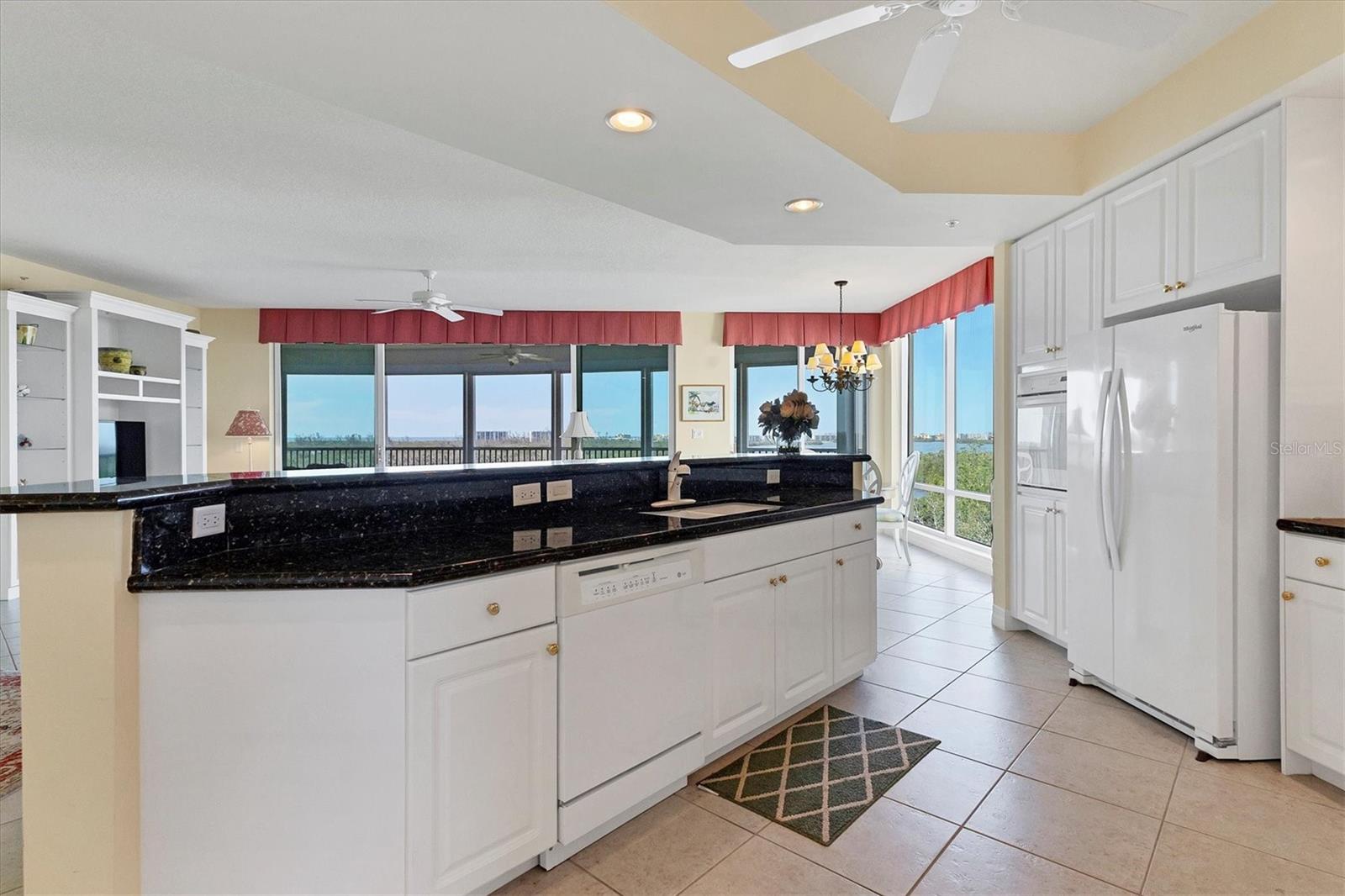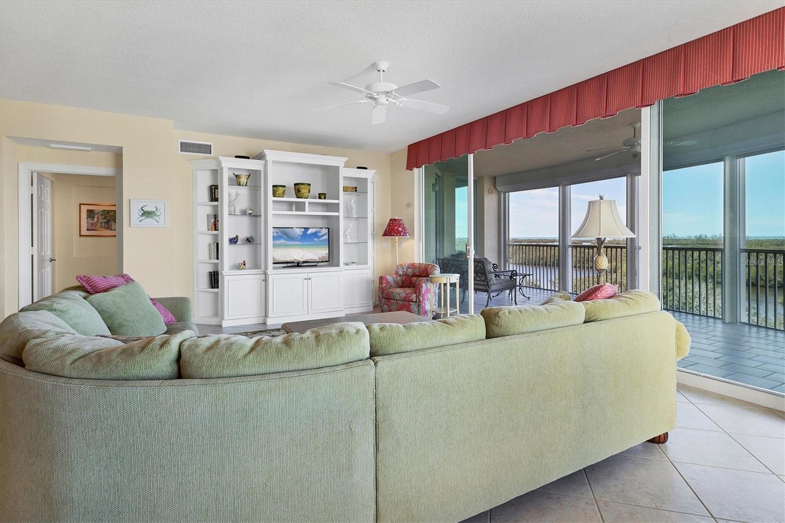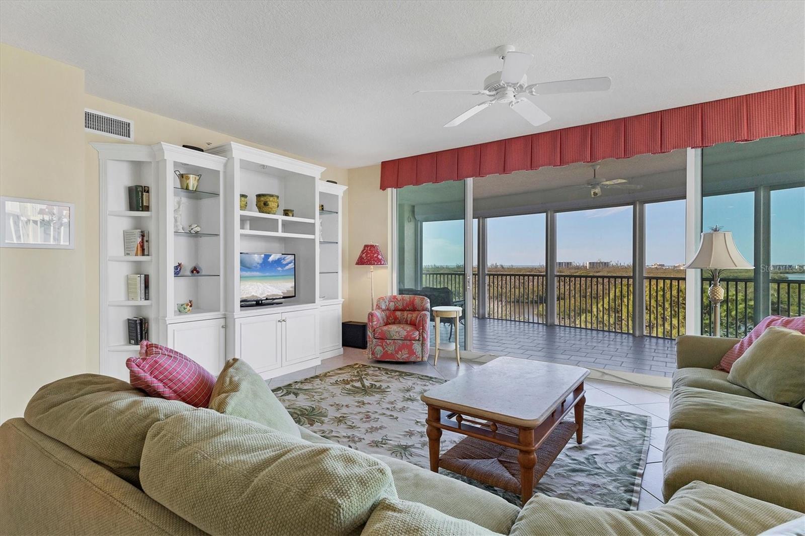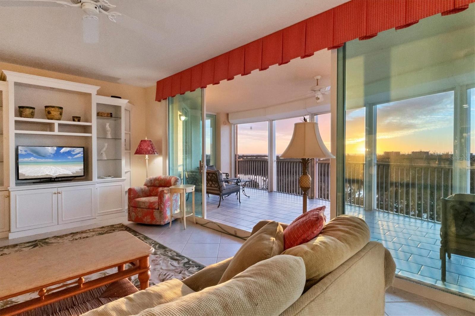 Immerse yourself in the unparalleled, unobstructed views of Little Sarasota Bay, the Gulf of Mexico and Midnight Pass, with Casey Key and Siesta Key gracing the horizon from this 6th-Floor Corner Unit Condo. Marvel at the gorgeous water views during the day and the stunning sunsets in the evening from your expansive, sweeping balcony, which feels like an additional room. Experience the epitome of seamless indoor-outdoor living in this expansive condo that spans nearly 2, 800 square feet. Designed to emulate the ambiance of a single-family home, the open floor plan features a great room, a separate dining area, and a versatile den. The great room impresses with soaring 10-foot ceilings, floor-to-ceiling windows, and sliding doors that effortlessly blend the indoors with the outdoors, leading to a large, screened balcony with breathtaking water views. This harmonious flow floods the living space with natural light and offers a tranquil backdrop of sparkling vistas. The spacious kitchen is a culinary delight, boasting an eat-in area and granite high bar countertops, perfect for casual meals and entertaining guests. The popular split floor plan provides privacy and convenience, featuring 3 bedrooms and 3 baths. The den adds a layer of versatility to the home. The large kitchen includes an eat-in space and granite high bar countertops. The luxurious primary suite is separate from the guest rooms for privacy and includes stunning water views, large walk-in closets, and a luxurious bathroom. Additional features include an elegant entry, and an exclusive private foyer and elevator. The lanai is equipped with electric hurricane shutters ensuring safety and peace of mind. This secure building offers a wonderful lifestyle with private entry and elevator access. This unit is available for purchase fully furnished and is well-maintained. The Oaks community offers a distinguished, 24-hour guarded country club experience with numerous accolades, including Platinum Club of America, Emerald Club of the World, Elite Distinguished Club of the World. Amenities include three restaurants, a ballroom, two 18-hole championship golf courses, an award-winning racquets program with 12 Har-Tru Hydro-Grid tennis courts, 4 pickleball courts, a wonderful croquet facility, a state-of-the-art fitness center, a junior Olympic heated community swimming pool, bocce, a basketball court, a playground, a 7000 square foot fitness center, a brand new $9, 000, 000 dining room and bar with outdoor dining overlooking the golf course. Residents of the Meridian enjoy private amenities, including a heated pool and spa, a fitness center, and an outdoor grill. The Oaks provides well-lit sidewalks, ideal for strolls around the 100-acre preserve. It also boasts scenic trails, perfect for biking and walking while taking in the views of nature. The Oaks is just minutes from the nationally ranked Pine View School the Legacy Bike Trail, shopping, and area beaches. It is conveniently situated near both Venice and Sarasota, offering easy access to the amenities and attractions of both cities, while providing a beautiful, luxurious, and well-rounded country club lifestyle. Membership is required, and there is no waitlist for golf or social membership. Be sure to make an appointment to see this stunning condominium **ENJOY THE 3D VIRTUAL TOUR**