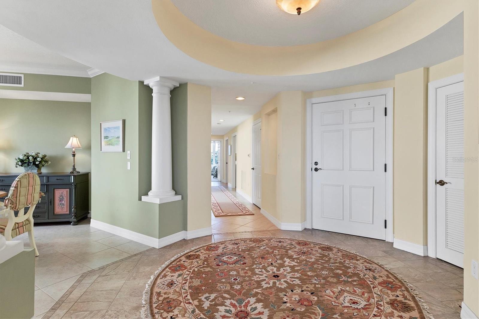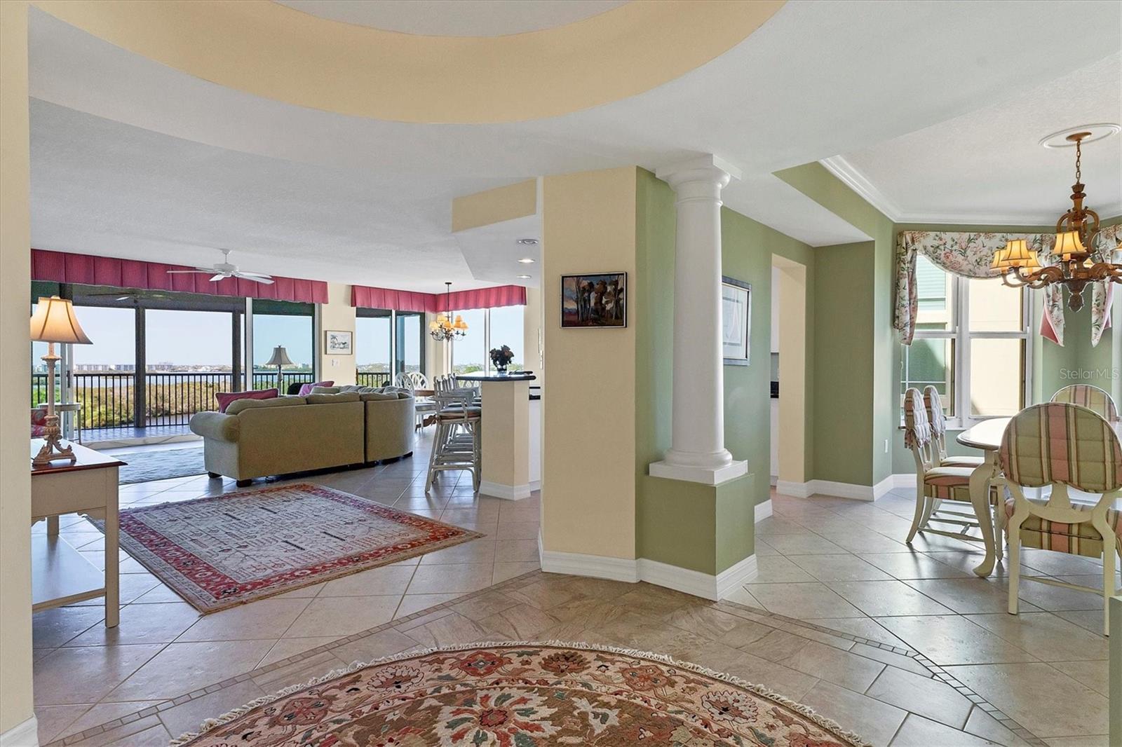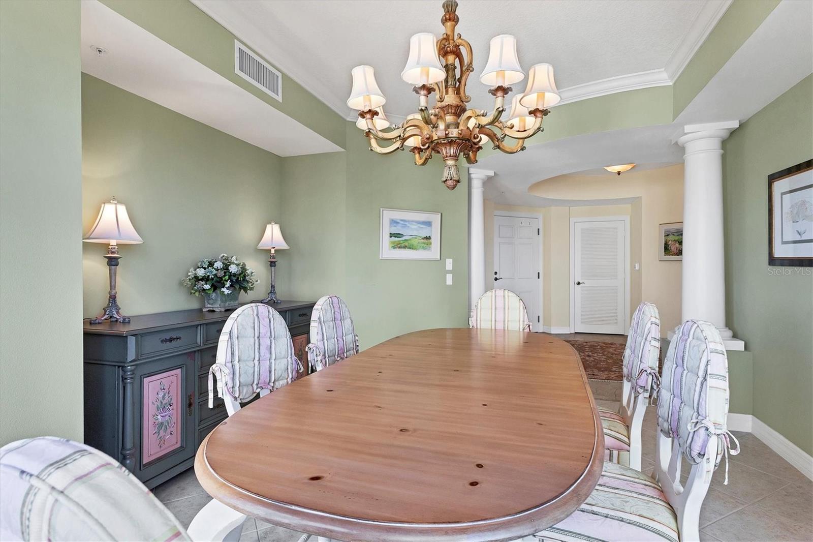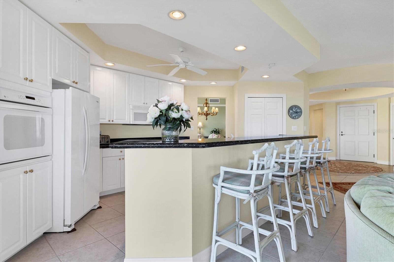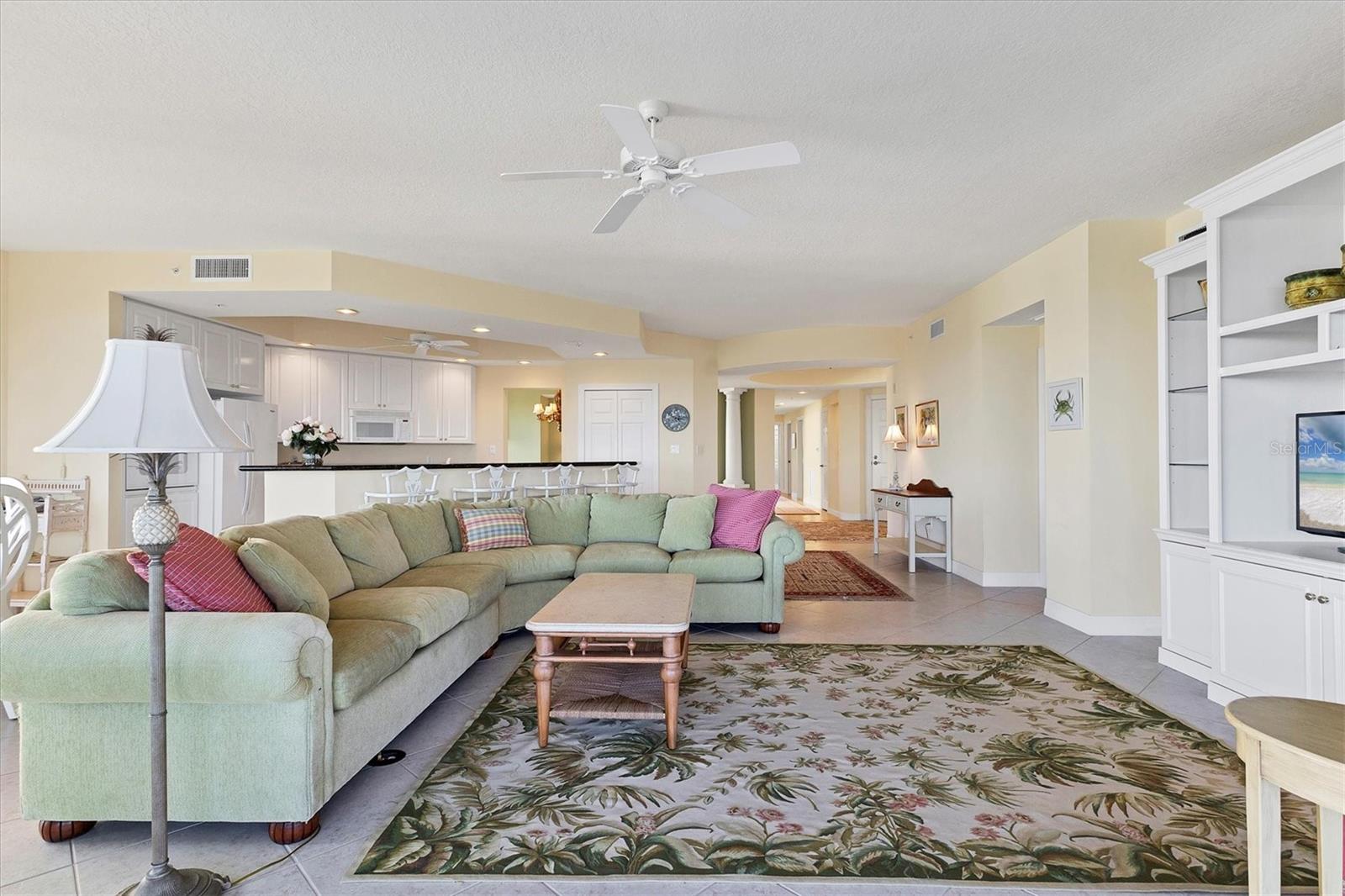 Immerse yourself in the unparalleled, unobstructed views of Little Sarasota Bay, the Gulf of Mexico and Midnight Pass, with Casey Key and Siesta Key gracing the horizon from this 6th-Floor Corner Unit Condo. Marvel at the gorgeous water views during the day and the stunning sunsets in the evening from your expansive, sweeping balcony, which feels like an additional room. Experience the epitome of seamless indoor-outdoor living in this expansive condo that spans nearly 2, 800 square feet. Designed to emulate the ambiance of a single-family home, the open floor plan features a great room, a separate dining area, and a versatile den. The great room impresses with soaring 10-foot ceilings, floor-to-ceiling windows, and sliding doors that effortlessly blend the indoors with the outdoors, leading to a large, screened balcony with breathtaking water views. This harmonious flow floods the living space with natural light and offers a tranquil backdrop of sparkling vistas. The spacious kitchen is a culinary delight, boasting an eat-in area and granite high bar countertops, perfect for casual meals and entertaining guests. The popular split floor plan provides privacy and convenience, featuring 3 bedrooms and 3 baths. The den adds a layer of versatility to the home. The large kitchen includes an eat-in space and granite high bar countertops. The luxurious primary suite is separate from the guest rooms for privacy and includes stunning water views, large walk-in closets, and a luxurious bathroom. Additional features include an elegant entry, and an exclusive private foyer and elevator. The lanai is equipped with electric hurricane shutters ensuring safety and peace of mind. This secure building offers a wonderful lifestyle with private entry and elevator access. This unit is available for purchase fully furnished and is well-maintained. The Oaks community offers a distinguished, 24-hour guarded country club experience with numerous accolades, including Platinum Club of America, Emerald Club of the World, Elite Distinguished Club of the World. Amenities include three restaurants, a ballroom, two 18-hole championship golf courses, an award-winning racquets program with 12 Har-Tru Hydro-Grid tennis courts, 4 pickleball courts, a wonderful croquet facility, a state-of-the-art fitness center, a junior Olympic heated community swimming pool, bocce, a basketball court, a playground, a 7000 square foot fitness center, a brand new $9, 000, 000 dining room and bar with outdoor dining overlooking the golf course. Residents of the Meridian enjoy private amenities, including a heated pool and spa, a fitness center, and an outdoor grill. The Oaks provides well-lit sidewalks, ideal for strolls around the 100-acre preserve. It also boasts scenic trails, perfect for biking and walking while taking in the views of nature. The Oaks is just minutes from the nationally ranked Pine View School the Legacy Bike Trail, shopping, and area beaches. It is conveniently situated near both Venice and Sarasota, offering easy access to the amenities and attractions of both cities, while providing a beautiful, luxurious, and well-rounded country club lifestyle. Membership is required, and there is no waitlist for golf or social membership. Be sure to make an appointment to see this stunning condominium **ENJOY THE 3D VIRTUAL TOUR**