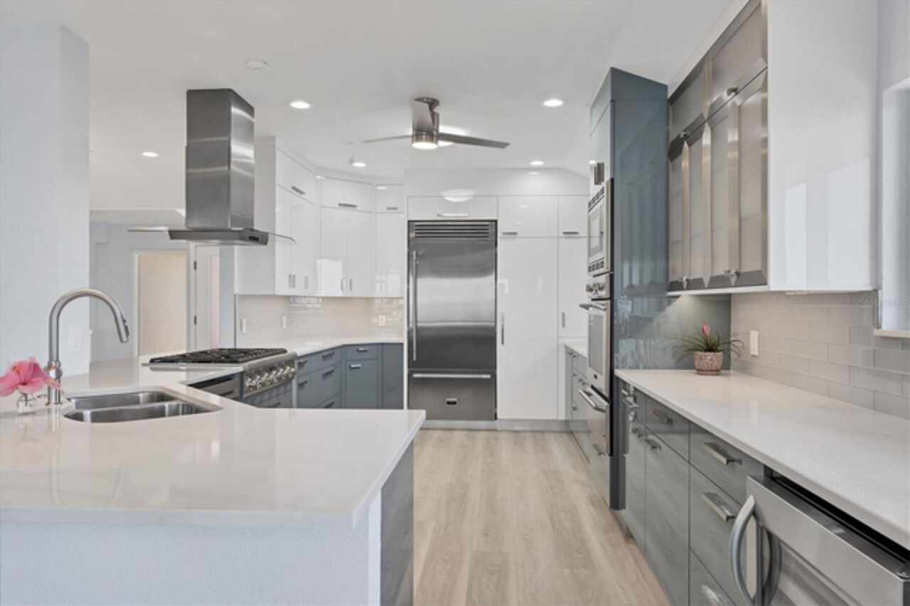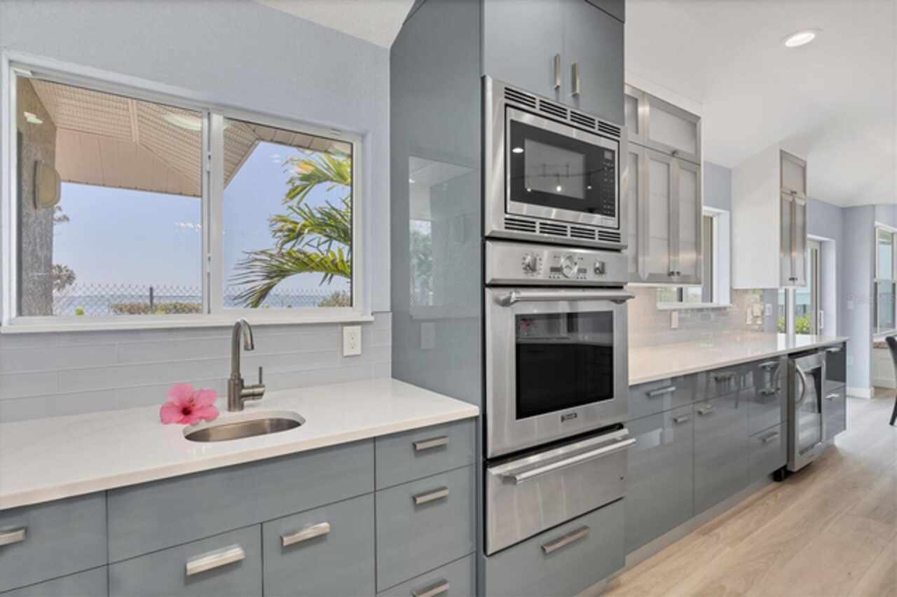 One or more photo(s) has been virtually staged. Welcome to Beyond the Gates, where timeless elegance meets coastal serenity in the heart of the historic Indian Beach neighborhood. Perfectly nestled between Sarasota Jungle Gardens and the iconic Ringling Museum, this MOVE IN READY bayfront estate offers an unmatched blend of privacy, architectural distinction, and location. Reimagined in 2010 by renowned architect Terry Green and meticulously updated in 2025, this 4-bedroom, 3-bathroom modern Coastal retreat showcases clean lines, warm textures, and panoramic water views that will take your breath away. By day, watch sailboats drift across the turquoise bay; by night, the lights of Longboat Key dance across the water, creating a magical ambiance that soothes the soul. Whether you are entertaining guests or enjoying a quiet evening at home, the views alone are a masterpiece—providing a daily dose of peace and inspiration. Inside, an eclectic blend of historic charm and modern design welcomes you into spacious living areas filled with natural light, seamlessly blending indoor comfort with outdoor beauty. Each room is thoughtfully designed to encompass views of Sarasota Bay and the surrounding landscape and provide a sense of effortless luxury. This exceptional residence is not just a home, it is a private sanctuary where luxury, location, and lifestyle converge.
