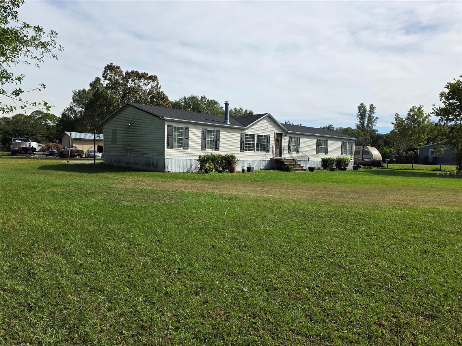 Spacious, private, well maintained, 3 car garage workshop in the back for your latest project, close enough to shopping but away from main traffic of Saint Cloud, 2 master suites along with 3 bedrooms for your growing or completed family. All of these describe this fantastic 2004 manufactured home on a full acre of fenced land. This property has the feel of a brick and stucco home, with a split plan. The two master suites sit on opposite sides of the property, allowing for maximum privacy for the occupants of the home. Separated in the middle by a beautiful kitchen and great room, with the dining room off to the right of kitchen makes the layout aesthetically helpful for the chef in the family. With new appliances, all the living space, and workspace offered this property is a pleaser. Property is fully fenced with gate remotes and a camera to monitor guests as they come and go.