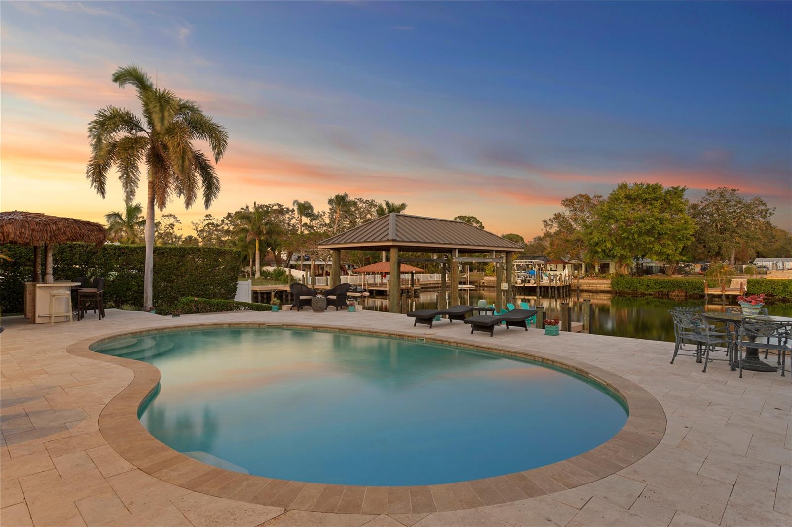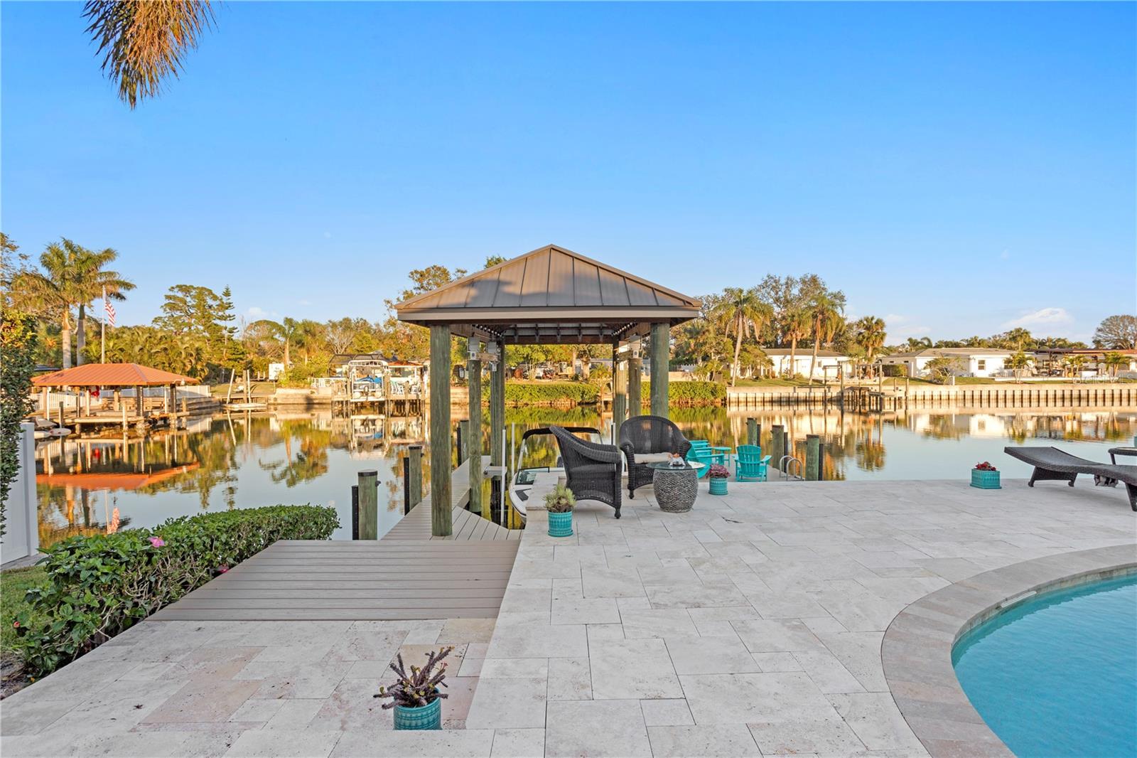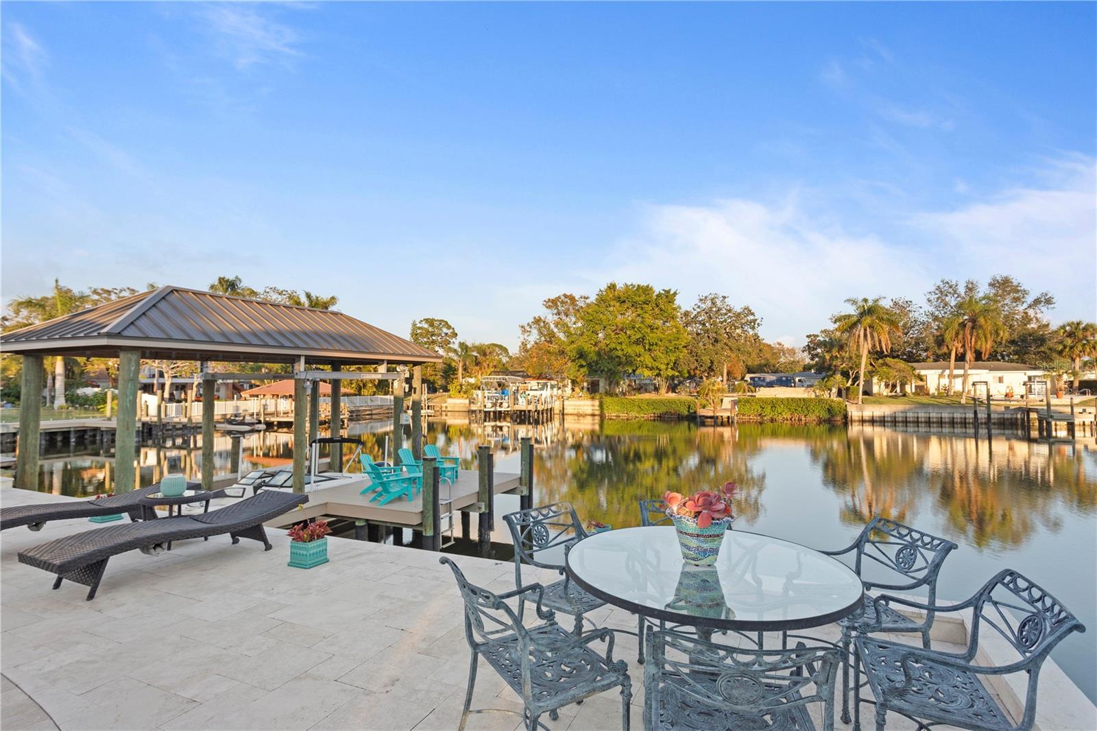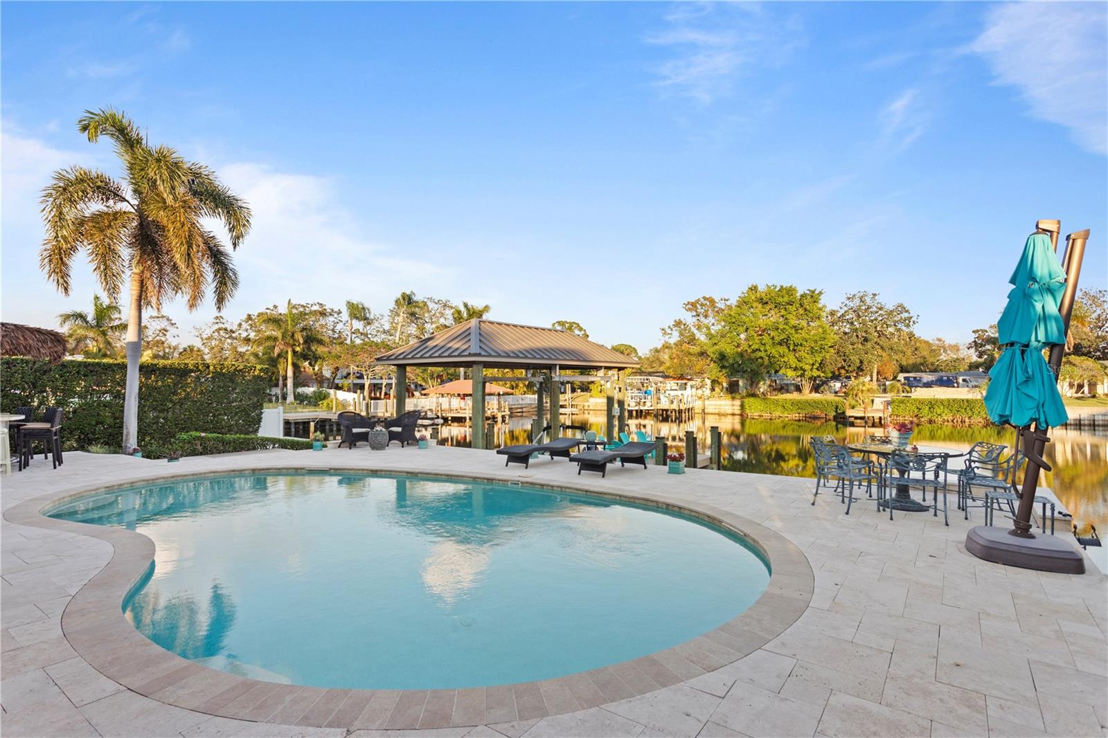 Under contract-accepting backup offers. Outdoor oasis in the waterfront community of Dana Shores in Tampa. This beautifully updated residence blends classic charm with modern upgrades, offering 3 bedrooms, 2.5 baths, and 1, 886 sq. ft. of living space on a lushly landscaped lot with private water access. The home’s inviting curb appeal showcases a brick-paved driveway leading to a 2-car garage, framed by mature palms and tropical greenery. Inside, a spacious family room with soaring cathedral ceilings, a wraparound fireplace, and oversized ceiling fans creates a warm yet open environment, seamlessly connecting to the dining area and outdoor living spaces. The heart of the home is the recently renovated kitchen, featuring sleek built-in cabinetry, quartz-style countertops, stainless steel appliances, including a built-in oven, cooktop, dishwasher, double-door smart refrigerator, and an overhead microwave. The L-shaped layout with a kitchen peninsula, double sink, and abundant storage provides both style and functionality. The primary suite offers comfort and privacy with plantation shutters, patio access, and an en-suite bathroom featuring a rainfall shower, walk-in closet with custom shelving, and dual vanities. Two additional bedrooms share a tastefully updated bathroom. Expansive sliding doors open to a stunning backyard retreat where a covered patio overlooks the pool deck, a sparkling pool, and wide canal views of Tampa Bay, making it ideal for entertaining or enjoying quiet sunsets. Boating enthusiasts will appreciate the 13, 000-pound boat lift, covered dock, and fishing deck, offering immediate access to the open bay. Dana Shores residents enjoy a private, tranquil community with convenient proximity to Tampa International Airport, Rocky Point Golf Course, Skyway Park, dining along the Causeway, Westshore business district, and the vibrant downtown and Gulf beaches. Combining timeless elegance with waterfront living, this home offers a rare opportunity to enjoy the best of Tampa Bay lifestyle in one of its most desirable neighborhoods.