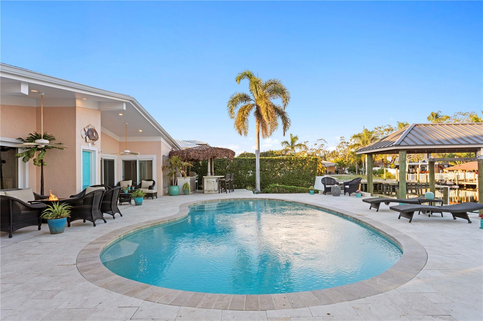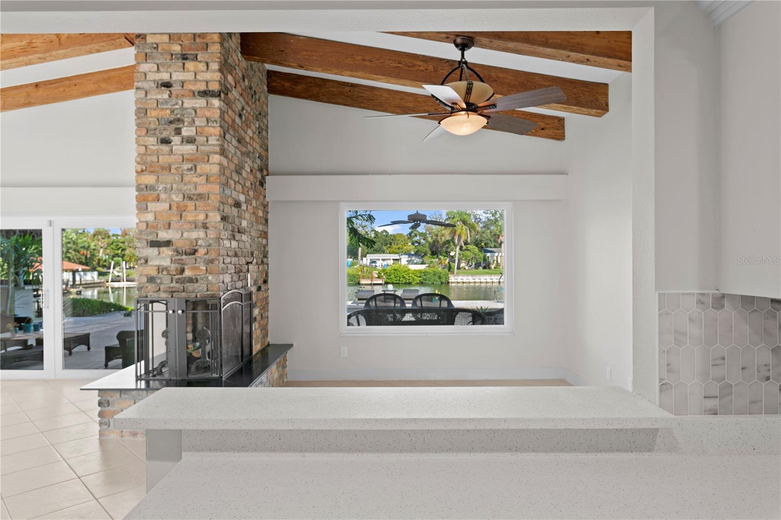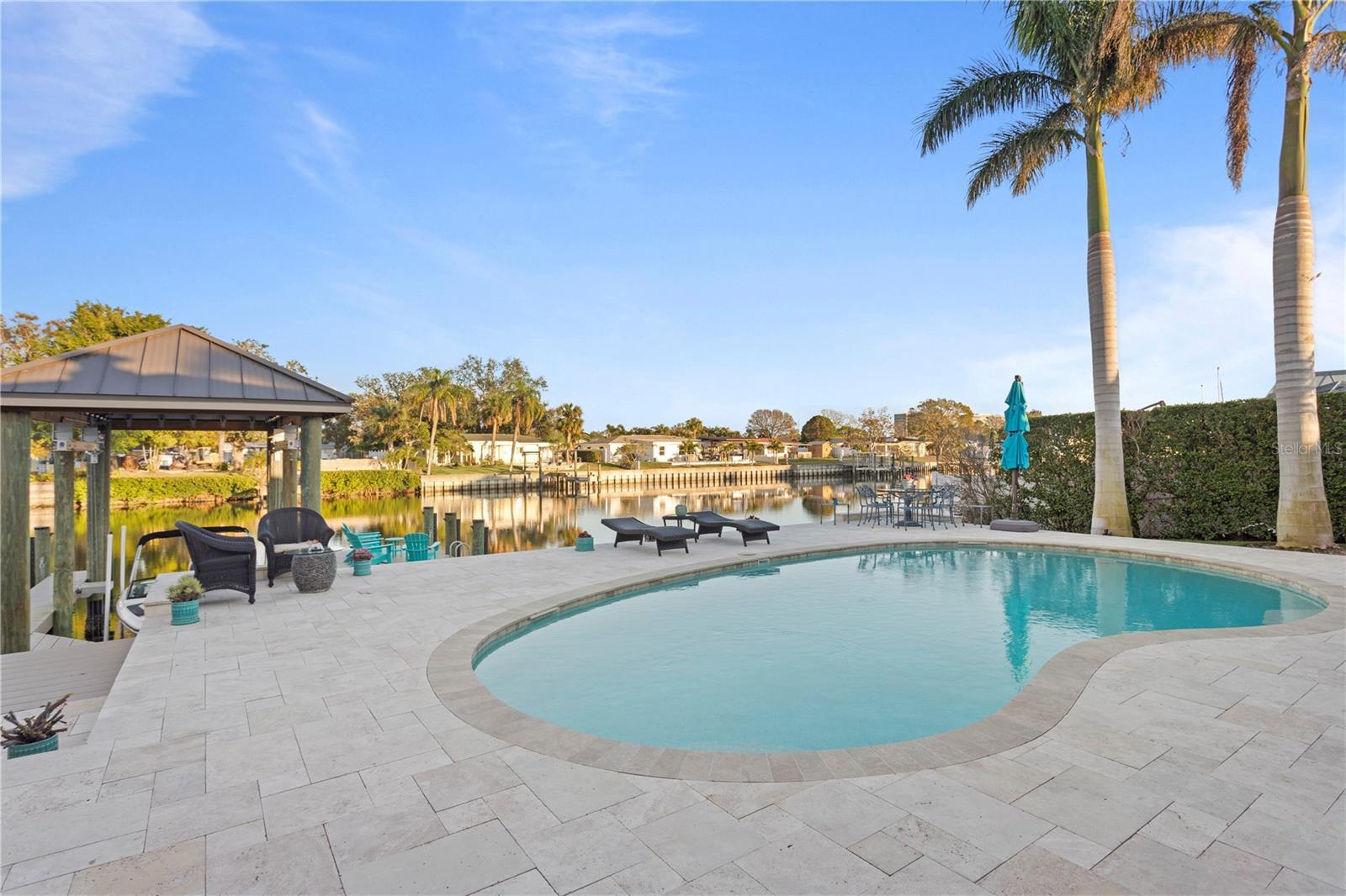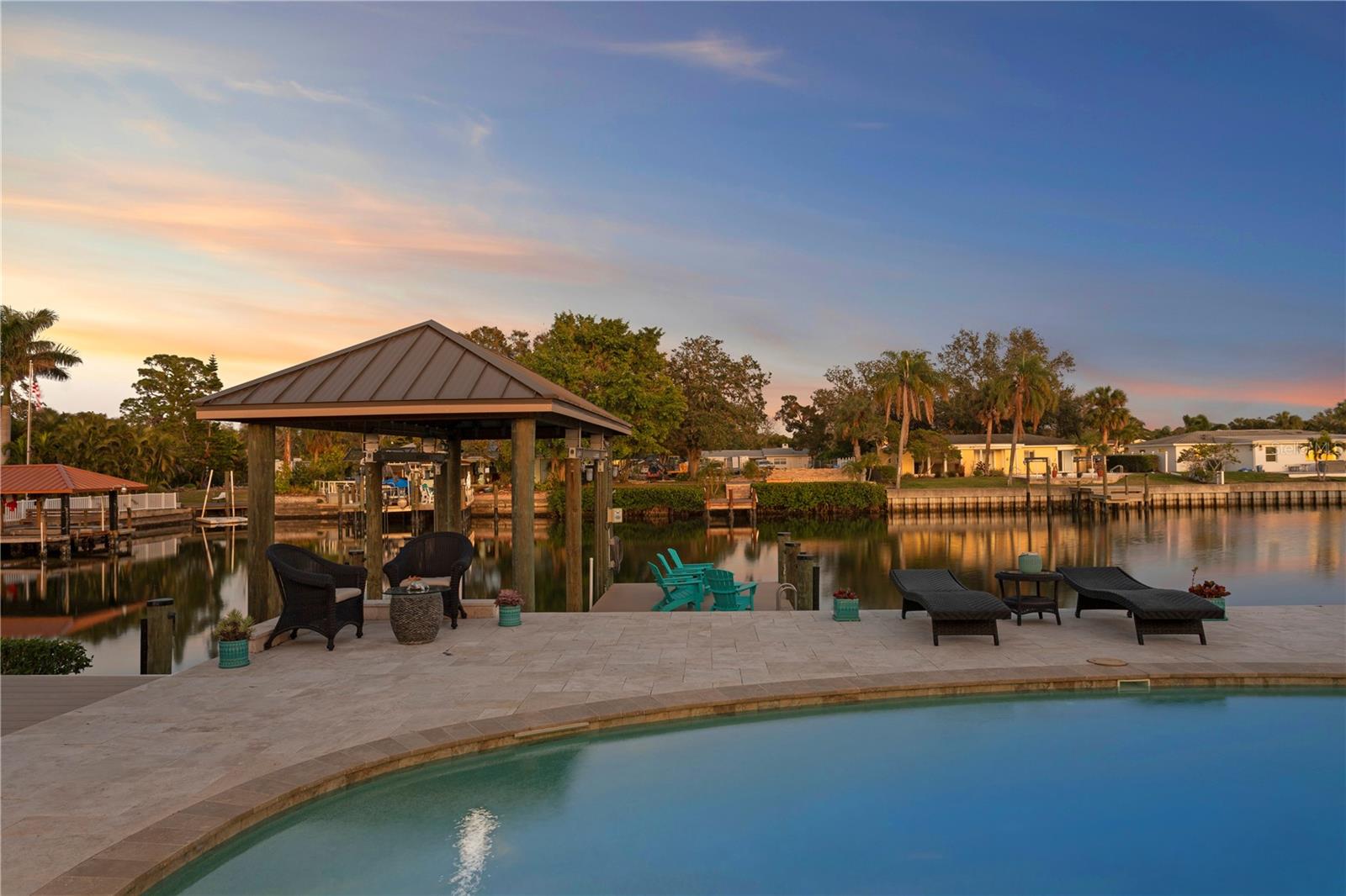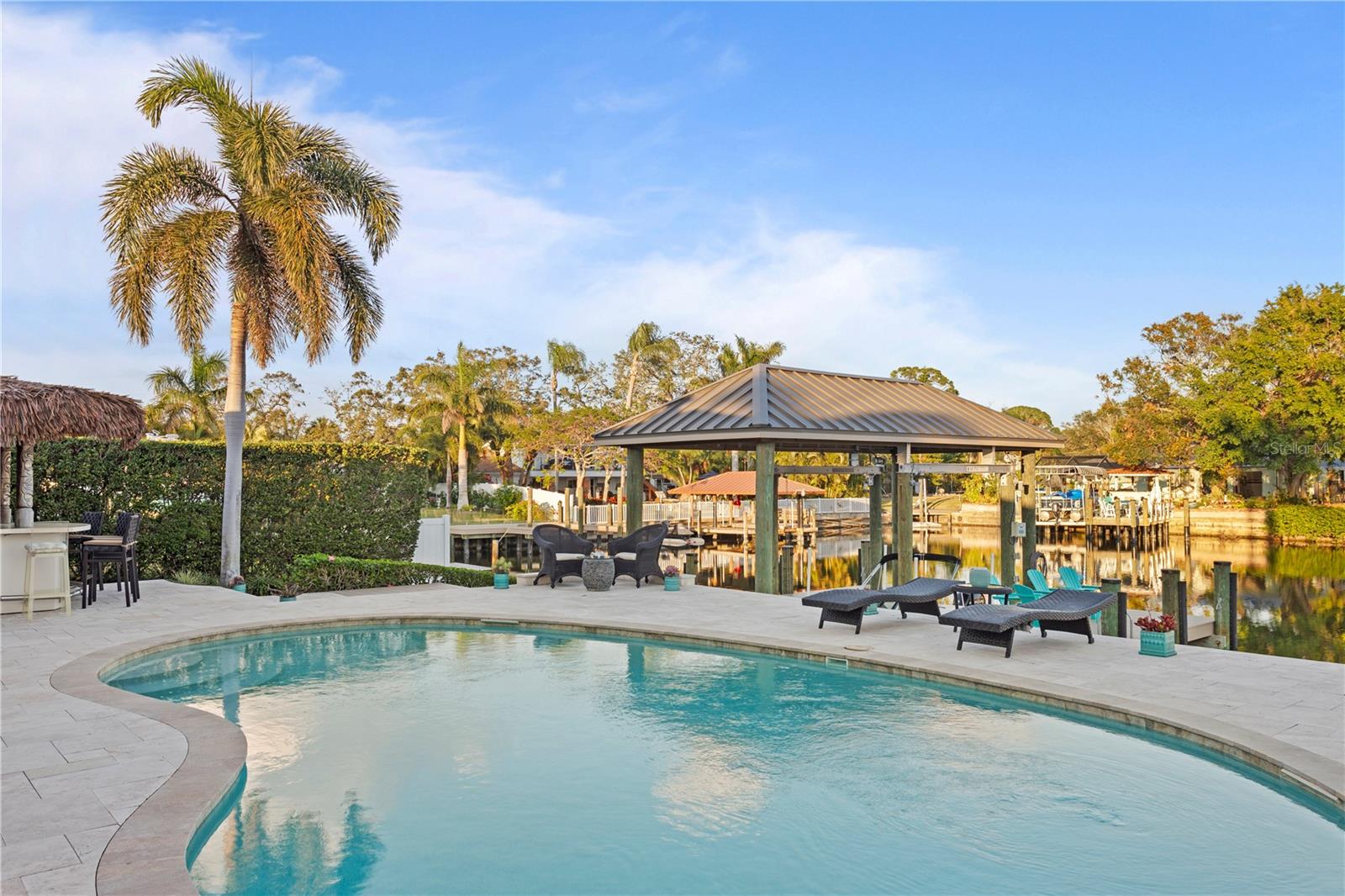 Under contract-accepting backup offers. Outdoor oasis in the waterfront community of Dana Shores in Tampa. This beautifully updated residence blends classic charm with modern upgrades, offering 3 bedrooms, 2.5 baths, and 1, 886 sq. ft. of living space on a lushly landscaped lot with private water access. The home’s inviting curb appeal showcases a brick-paved driveway leading to a 2-car garage, framed by mature palms and tropical greenery. Inside, a spacious family room with soaring cathedral ceilings, a wraparound fireplace, and oversized ceiling fans creates a warm yet open environment, seamlessly connecting to the dining area and outdoor living spaces. The heart of the home is the recently renovated kitchen, featuring sleek built-in cabinetry, quartz-style countertops, stainless steel appliances, including a built-in oven, cooktop, dishwasher, double-door smart refrigerator, and an overhead microwave. The L-shaped layout with a kitchen peninsula, double sink, and abundant storage provides both style and functionality. The primary suite offers comfort and privacy with plantation shutters, patio access, and an en-suite bathroom featuring a rainfall shower, walk-in closet with custom shelving, and dual vanities. Two additional bedrooms share a tastefully updated bathroom. Expansive sliding doors open to a stunning backyard retreat where a covered patio overlooks the pool deck, a sparkling pool, and wide canal views of Tampa Bay, making it ideal for entertaining or enjoying quiet sunsets. Boating enthusiasts will appreciate the 13, 000-pound boat lift, covered dock, and fishing deck, offering immediate access to the open bay. Dana Shores residents enjoy a private, tranquil community with convenient proximity to Tampa International Airport, Rocky Point Golf Course, Skyway Park, dining along the Causeway, Westshore business district, and the vibrant downtown and Gulf beaches. Combining timeless elegance with waterfront living, this home offers a rare opportunity to enjoy the best of Tampa Bay lifestyle in one of its most desirable neighborhoods.