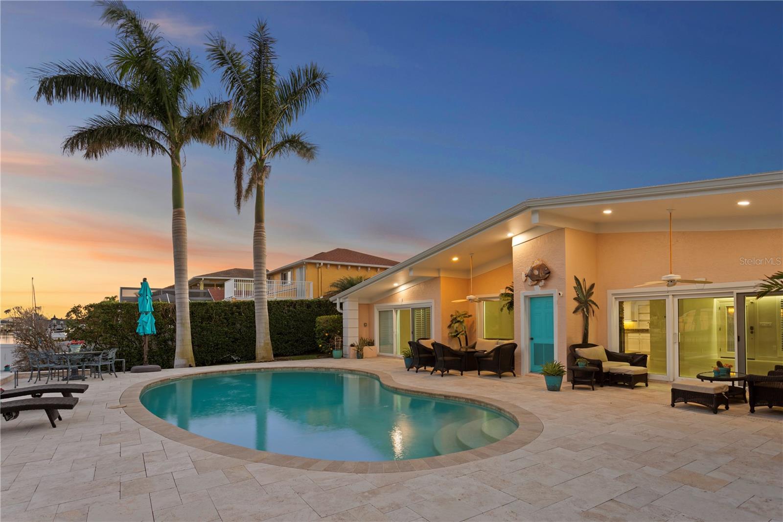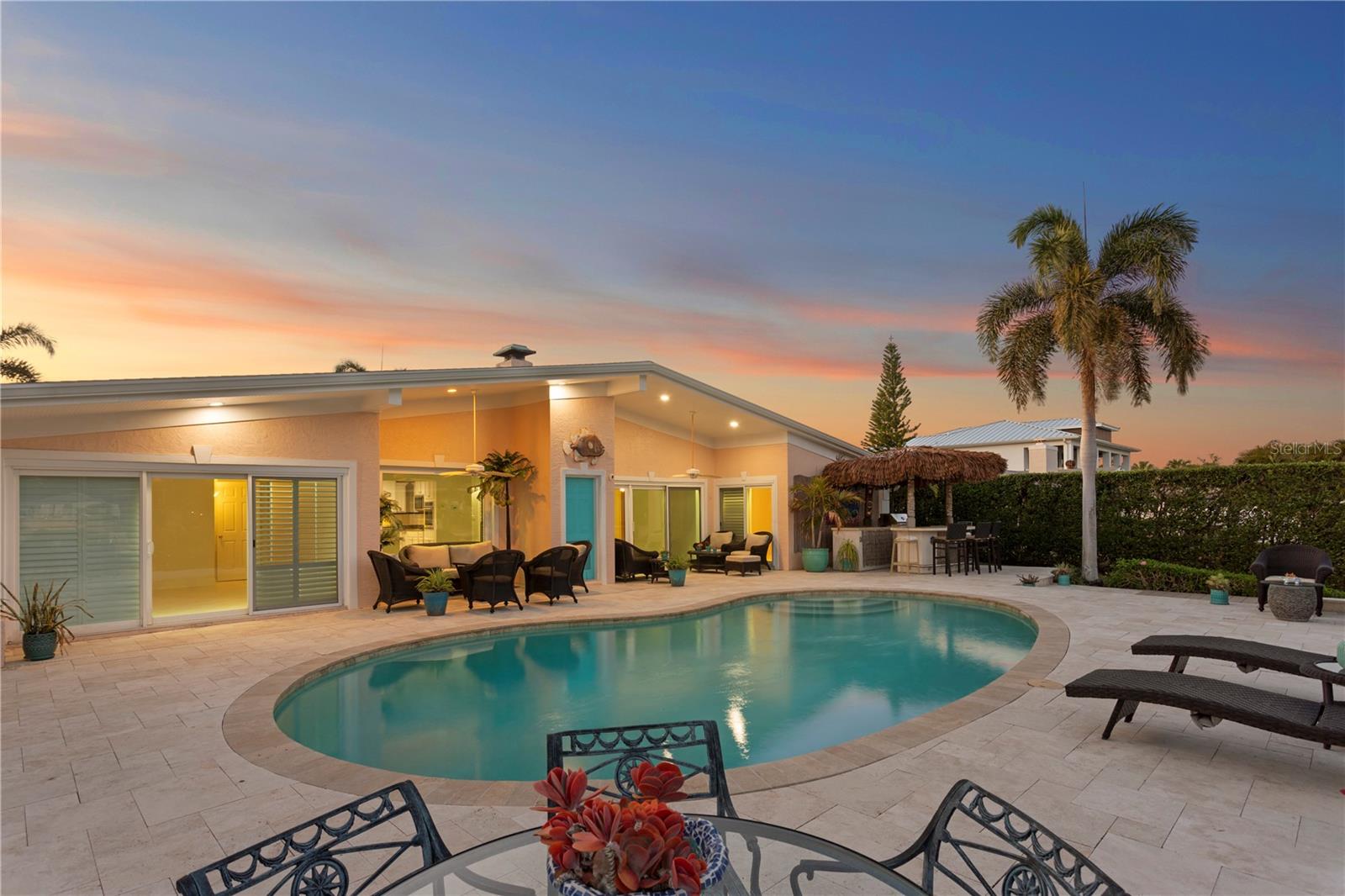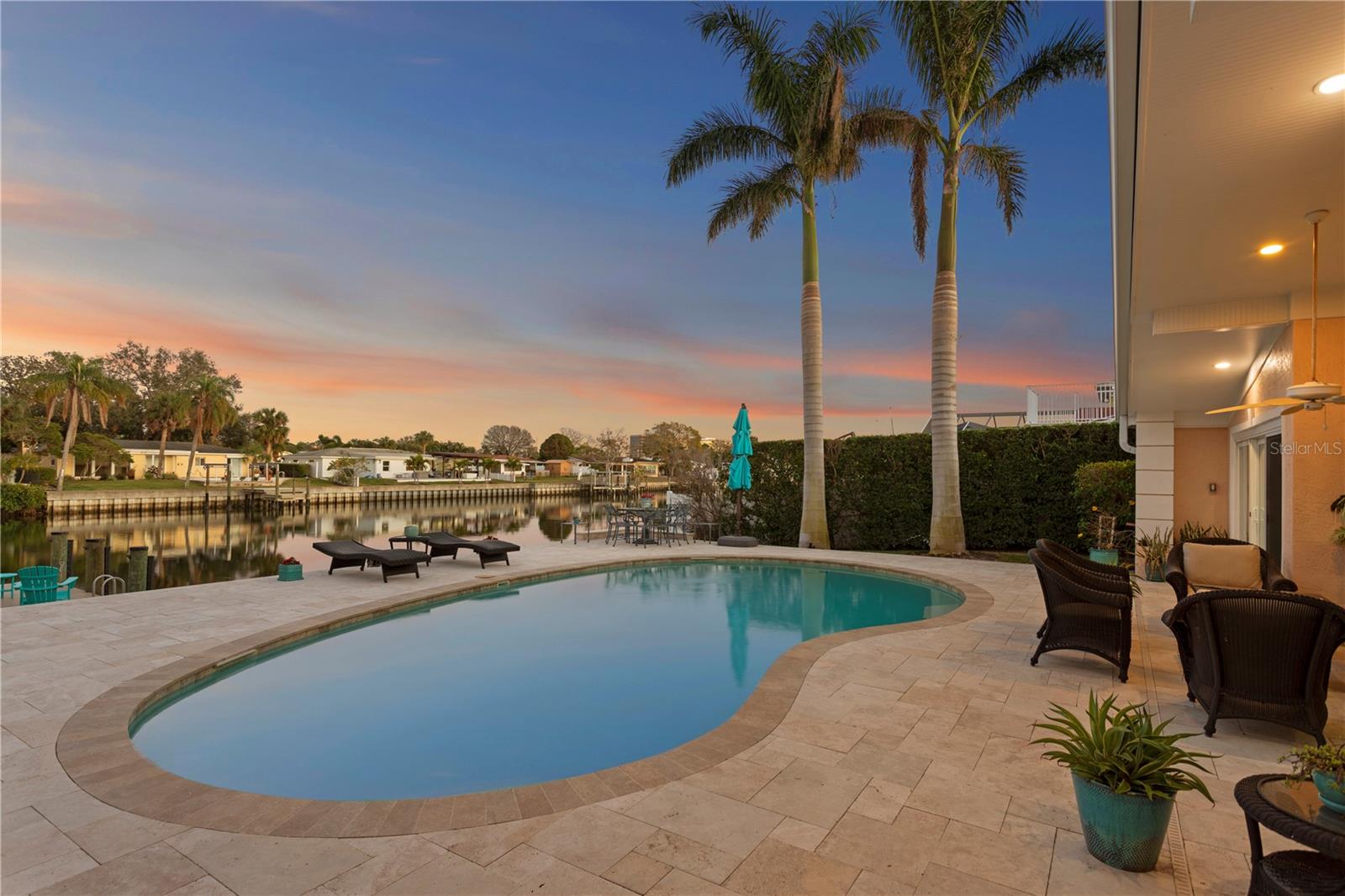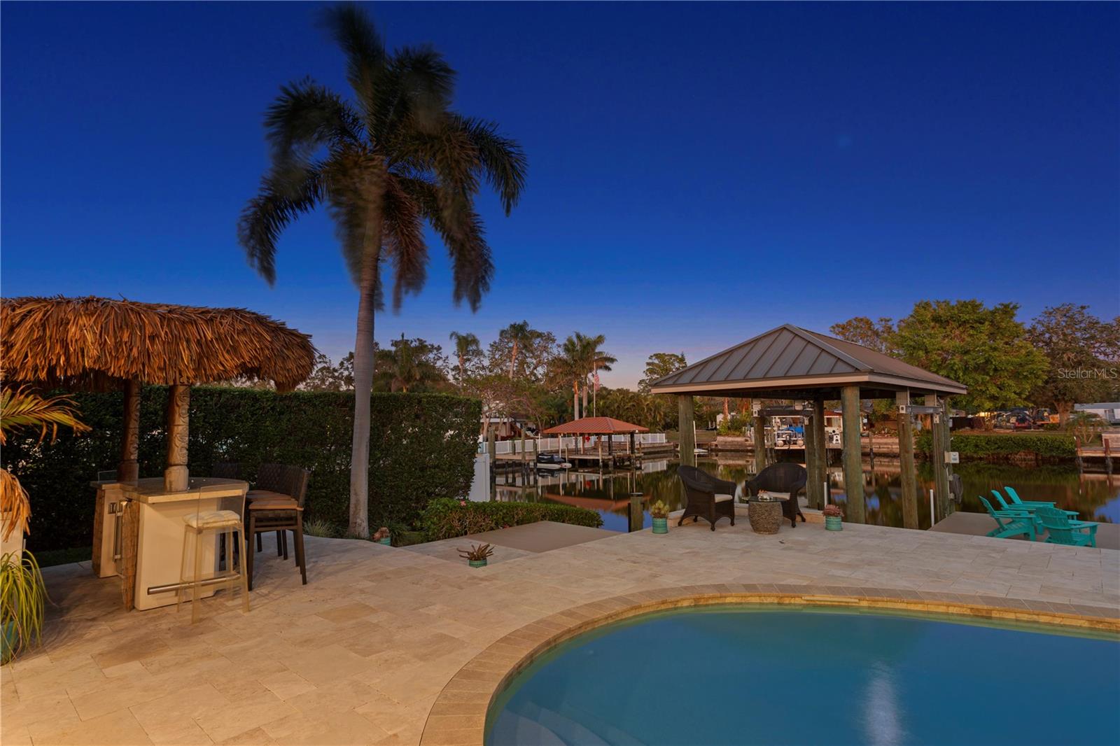 Under contract-accepting backup offers. Outdoor oasis in the waterfront community of Dana Shores in Tampa. This beautifully updated residence blends classic charm with modern upgrades, offering 3 bedrooms, 2.5 baths, and 1, 886 sq. ft. of living space on a lushly landscaped lot with private water access. The home’s inviting curb appeal showcases a brick-paved driveway leading to a 2-car garage, framed by mature palms and tropical greenery. Inside, a spacious family room with soaring cathedral ceilings, a wraparound fireplace, and oversized ceiling fans creates a warm yet open environment, seamlessly connecting to the dining area and outdoor living spaces. The heart of the home is the recently renovated kitchen, featuring sleek built-in cabinetry, quartz-style countertops, stainless steel appliances, including a built-in oven, cooktop, dishwasher, double-door smart refrigerator, and an overhead microwave. The L-shaped layout with a kitchen peninsula, double sink, and abundant storage provides both style and functionality. The primary suite offers comfort and privacy with plantation shutters, patio access, and an en-suite bathroom featuring a rainfall shower, walk-in closet with custom shelving, and dual vanities. Two additional bedrooms share a tastefully updated bathroom. Expansive sliding doors open to a stunning backyard retreat where a covered patio overlooks the pool deck, a sparkling pool, and wide canal views of Tampa Bay, making it ideal for entertaining or enjoying quiet sunsets. Boating enthusiasts will appreciate the 13, 000-pound boat lift, covered dock, and fishing deck, offering immediate access to the open bay. Dana Shores residents enjoy a private, tranquil community with convenient proximity to Tampa International Airport, Rocky Point Golf Course, Skyway Park, dining along the Causeway, Westshore business district, and the vibrant downtown and Gulf beaches. Combining timeless elegance with waterfront living, this home offers a rare opportunity to enjoy the best of Tampa Bay lifestyle in one of its most desirable neighborhoods.
