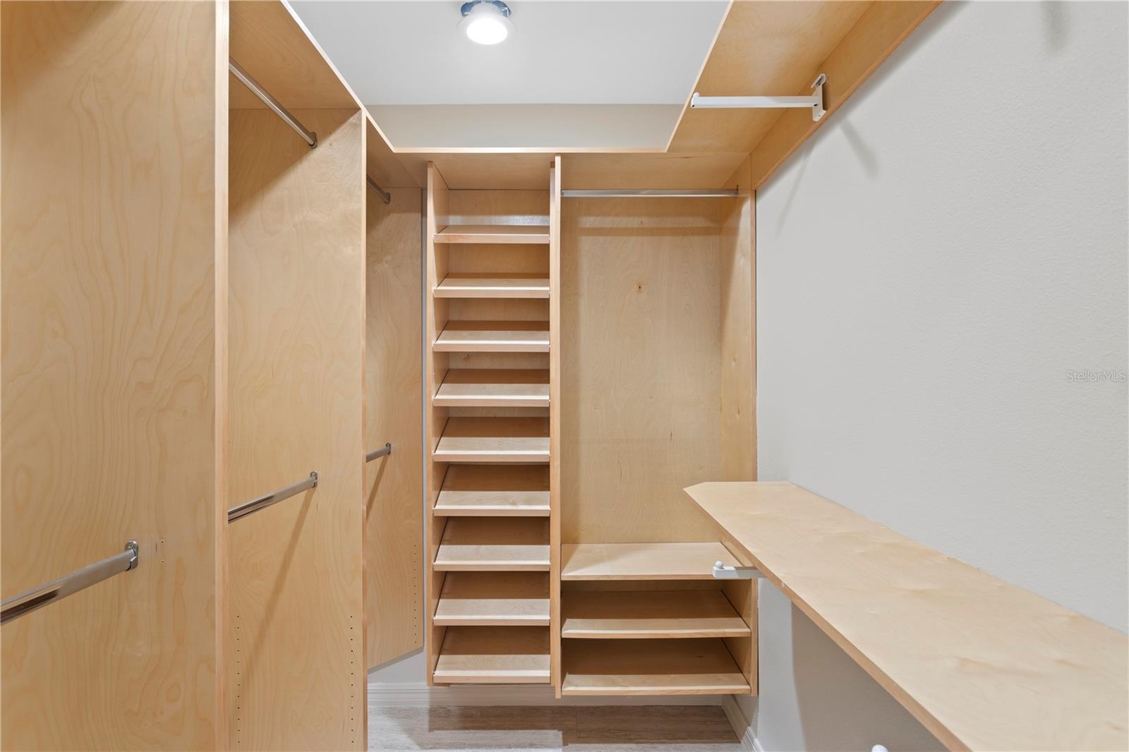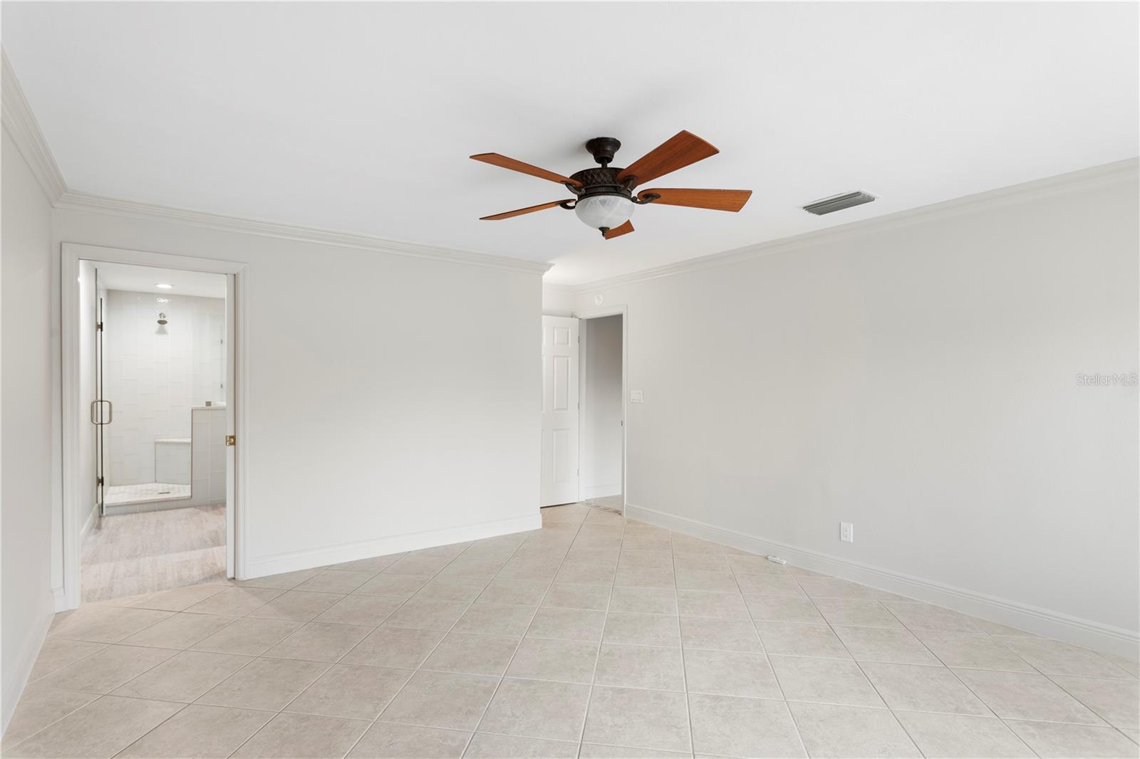 Built-in Features, Cathedral Ceiling(s), Ceiling Fans(s), Crown Molding, Eat-in Kitchen, High Ceilings, Living Room/Dining Room Combo, Other, Primary Bedroom Main Floor, Solid Surface Counters, Solid Wood Cabinets, Split Bedroom, Thermostat, Walk-In Closet(s)
