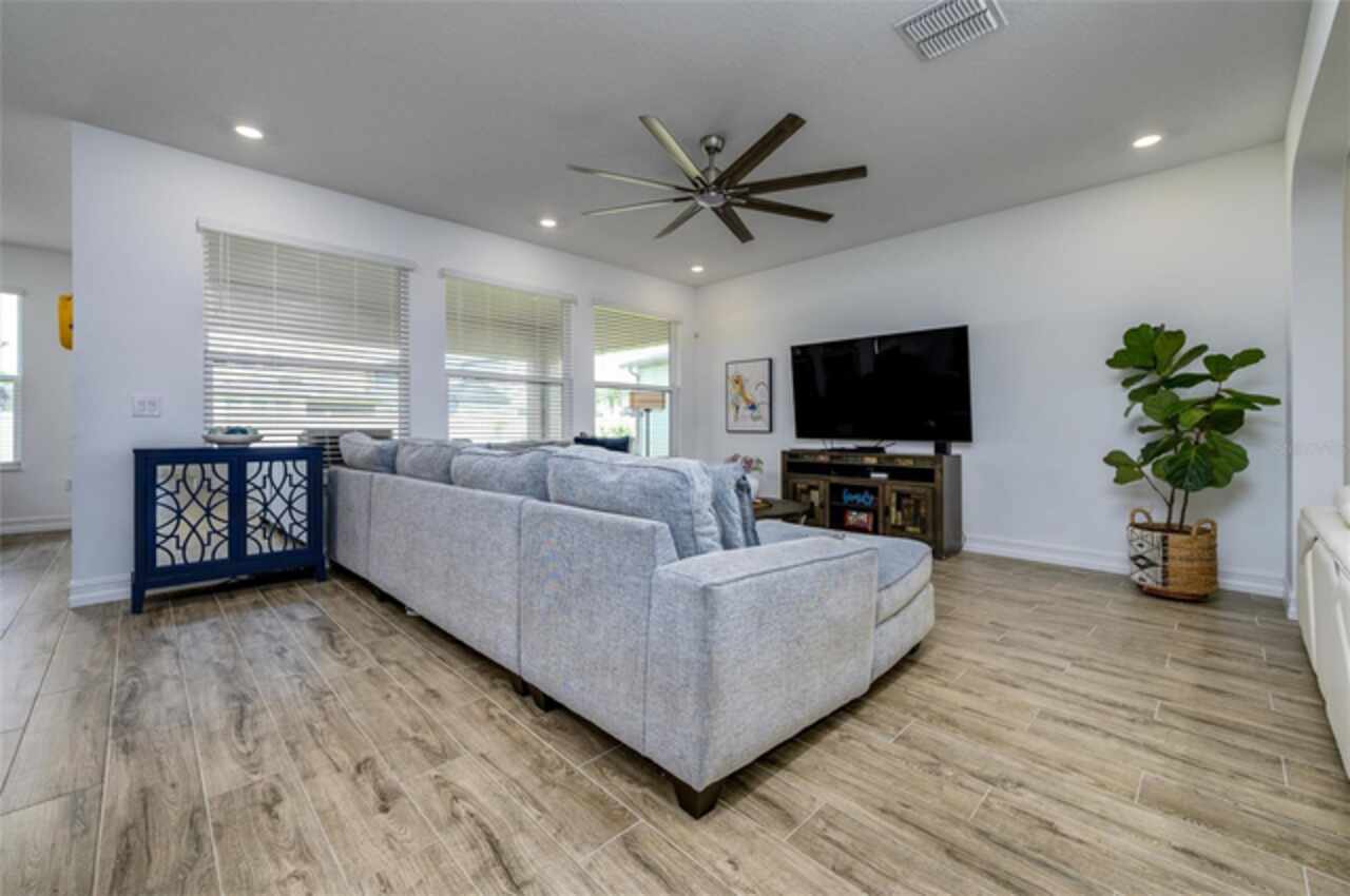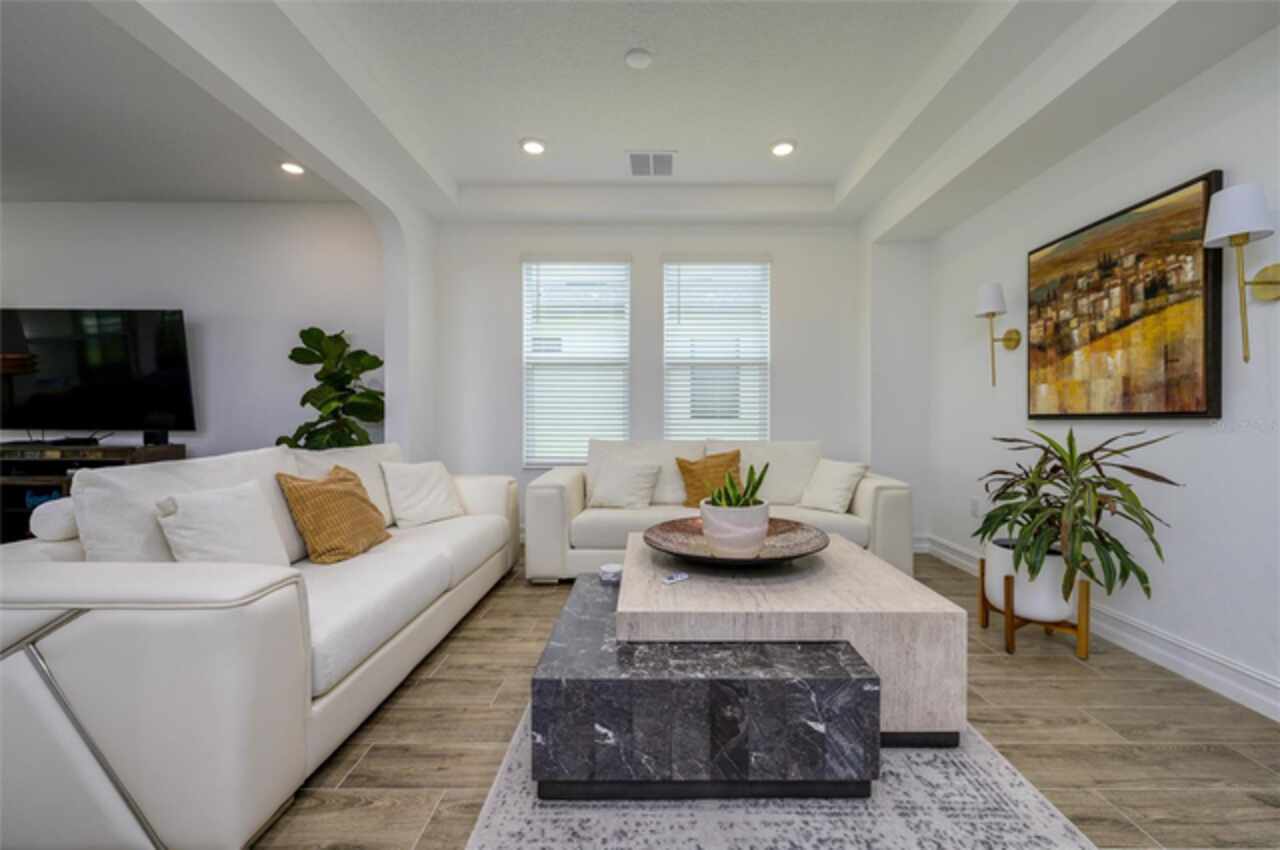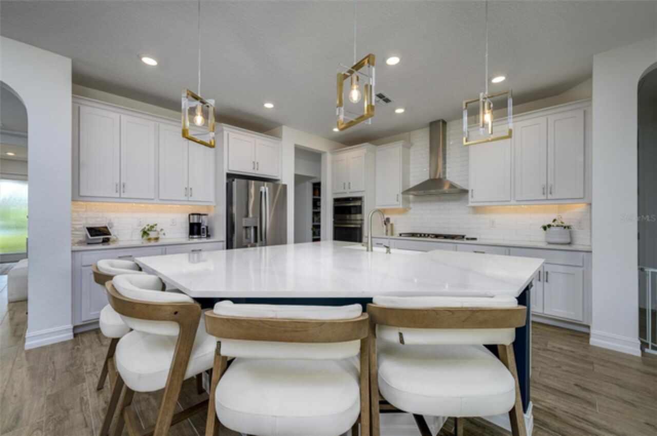 Under contract-accepting backup offers. Welcome to your dream home, the newest and last home built in the highly sought-after Estancia at Wiregrass! This immaculate 5-bedroom, 4-bath residence (with a potential 6th bedroom) offers the perfect blend of elegance, functionality, and space. Step into the grand foyer flooded with natural light, setting the tone for the rest of this stunning home. Enjoy the spacious private study/den with glass French doors ideal for a home office, library, or personal gym. Entertain with ease in the formal dining room, conveniently located off the expansive great room and gourmet kitchen - fully packed with quartz countertops, plenty of storage with soft-close cabinetry — the heart of the home, perfect for cozy movie nights, elegant dinners or simply hosting backyard BBQs. A guest suite with a full bath is thoughtfully located on the first floor, while the luxurious primary suite and three additional bedrooms await upstairs all boasting of walk-in closets, offering privacy and comfort for everyone. Some added features include a whole-house Culligan water softener and air purifier with UVC and PCO technology. All second-floor bedrooms boast of walk-in closets. Enjoy resort-style living just a short walk from your doorstep at the Estancia clubhouse — featuring a zero-entry pool with a thrilling water slide, Har-Tru tennis courts, pickleball, basketball courts, walking trails, parks, and dog parks. Zoned for Wiregrass Ranch High, John Long Middle and Wiregrass Elementary Schools. All this and much more is conveniently located near I-75, top-rated hospitals, shopping, dining, and entertainment. Don't miss your chance to own this exceptional home — schedule your private showing today!