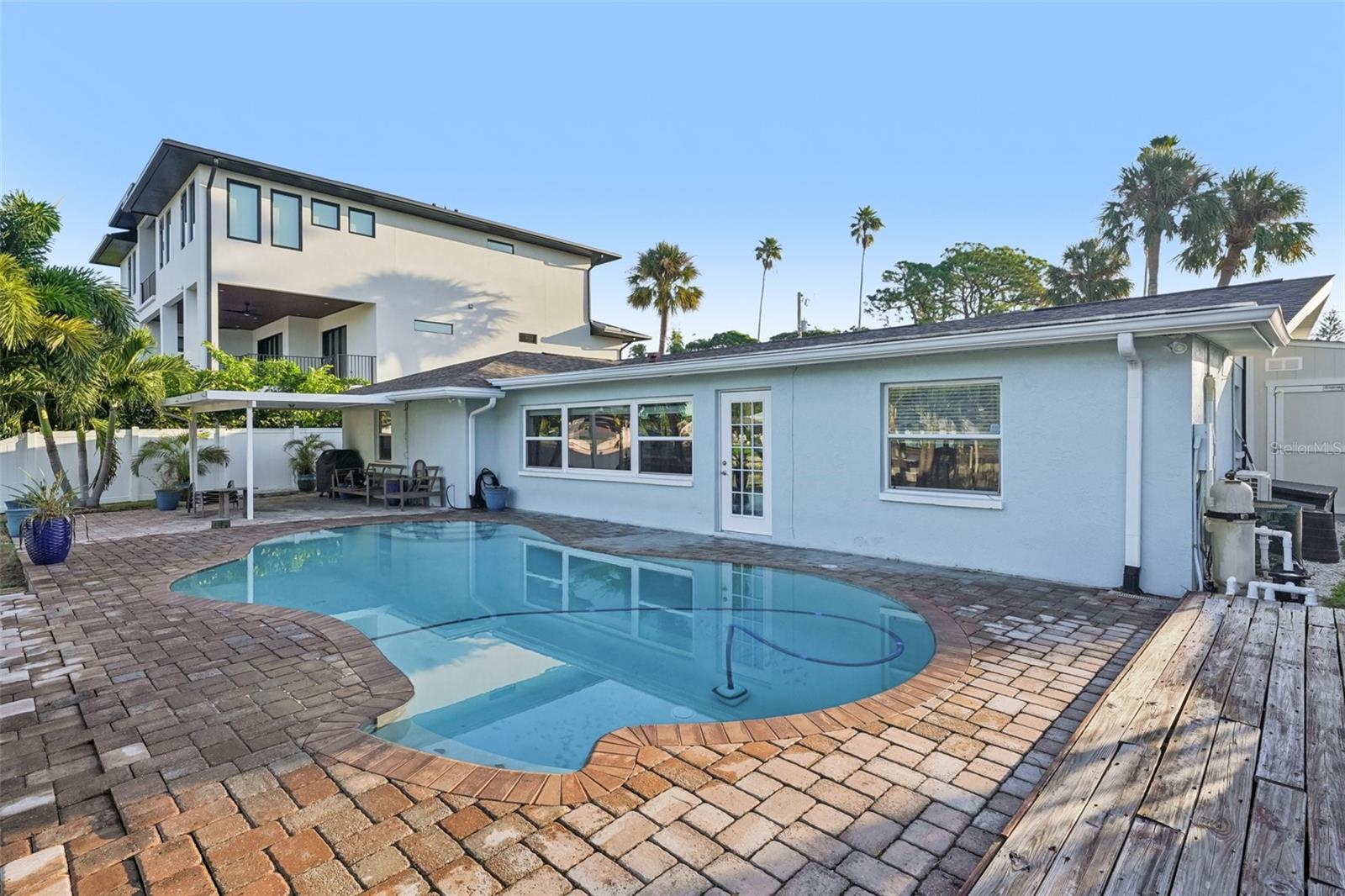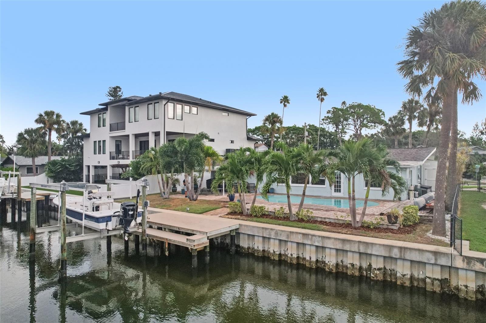 Welcome to your slice of paradise in the highly desirable Shore Acres community! This beautifully updated 3-bedroom, 2-bath, 1-car garage pool home combines solid block construction with elegant coastal style and peace of mind features — including updated windows, doors, roof, and a newer seawall. The home was completely renovated prior to Hurricane Helene, requiring only minimal work to restore it to its full glory. Inside, an open-concept, split-bedroom floor plan creates a bright and airy flow that’s perfect for Florida living. The kitchen features light wood cabinetry, tile countertops, and a comfortable dining area. One bedroom includes an attached bonus room, ideal as a home office, sitting area, or potential fourth bedroom. The spacious living area showcases panoramic water and pool views, connecting seamlessly to the outdoor oasis. Step outside to enjoy your private waterfront retreat featuring an in-ground pool, expansive wooden deck, covered entertainment area, Trex dock, and newer boat lift. From your dock, it’s just 10 minutes to Tampa Bay with no low bridges and a clear route under the Snell Isle Bridge — the dream setup for any boater. Perfectly located near downtown St. Petersburg, with easy access to Tampa, Sarasota, shopping, dining, and major highways via I-275, this property offers the ideal blend of convenience, comfort, and coastal charm. Don’t miss your chance to own this turnkey waterfront gem in one of St. Pete’s most sought-after neighborhoods!
