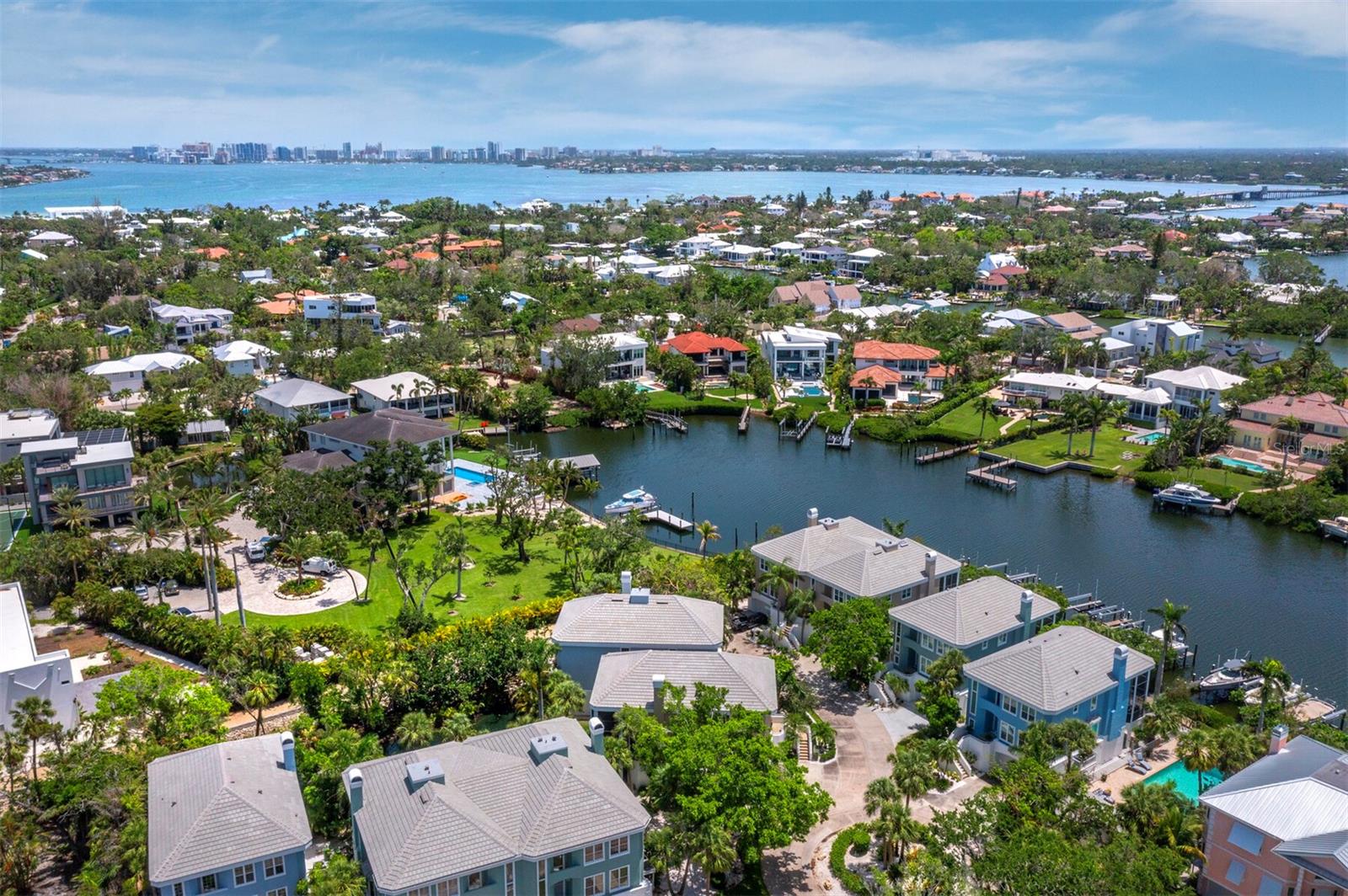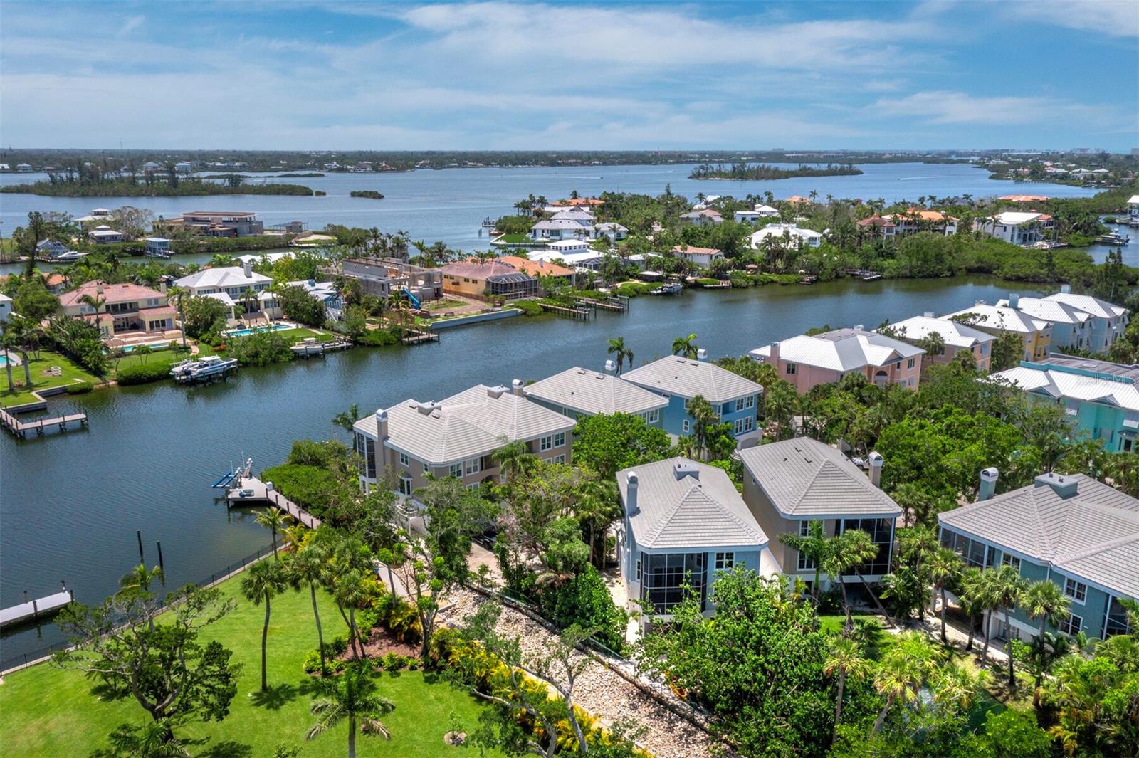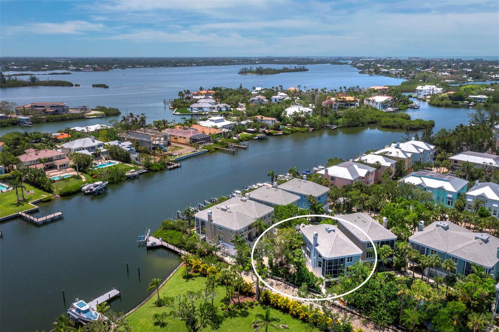 Boaters, this one is rare! On deep, protected water in Cocoanut Bayou with no fixed bridges. This fully remodeled home on Siesta Key’s north end includes a deeded dock with water, electric and a 20, 000-pound lift—holds up to a 40-foot boat—with fast access to Sarasota Bay and the Gulf in under 10 minutes. Inside and out, this free-standing four-bedroom, 3.5-bath home has been thoughtfully upgraded. Recent improvements include a new roof (2024), new impact-rated PGT hurricane windows and doors, a new two-story screened lanai, fresh exterior paint, and updated community amenities including pool and dock water, and electric. The home also features a private elevator and a large two-car garage, plus a finished bonus space on the lower level that adds flexibility and function (not included in the official square footage). In the gated community of Somerset Cove—just 11 homes total—this residence offers 2, 757 square feet of light-filled living space across the upper two floors. The main level includes a soaring great room with a fireplace and a show-stopping kitchen with Calacatta Blanca quartz island, Thermador induction cooktop with downdraft exhaust, built-in wall oven, microwave drawer and a wine bar with refrigerator. The layout is ideal for entertaining and includes a full dining area. Additionally, there is a large guest en-suite bedroom. Upstairs, the spacious primary suite includes a large walk-in closet, dual vanities, oversized shower, private water closet and excellent storage. Another en-suite guest bedroom plus a fourth bedroom, completes the top floor. Downstairs, the lower-level features 800-plus square feet of bonus space with durable Hardie-plank walls and access to a private covered patio. Somerset Cove is a maintenance-free community with a heated pool, new outdoor furnishings, lush landscaping and easy access to Shell Beach, Siesta Key Village, the main Siesta Key Beach and the North Bridge to get to the mainland in minutes. Community fees include wind and flood insurance, landscaping, dock and pool maintenance, and weekly trash and recycling pickup. With recent upgrades, private dockage and gated peace of mind—all in a prime north Siesta Key location—this is island living at its best.