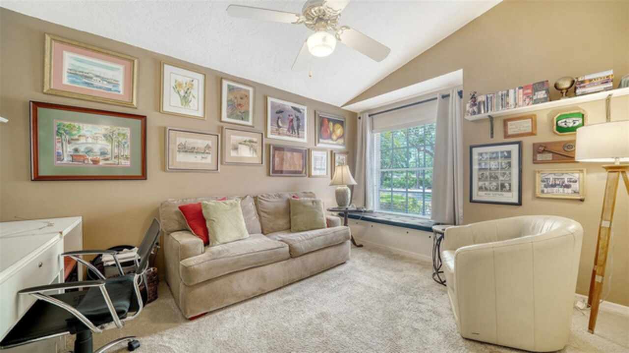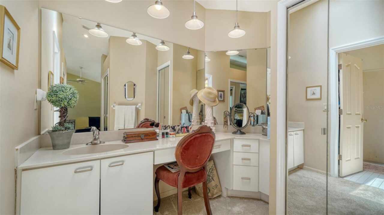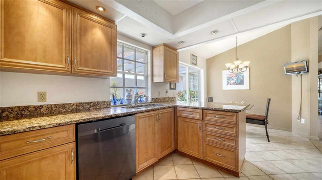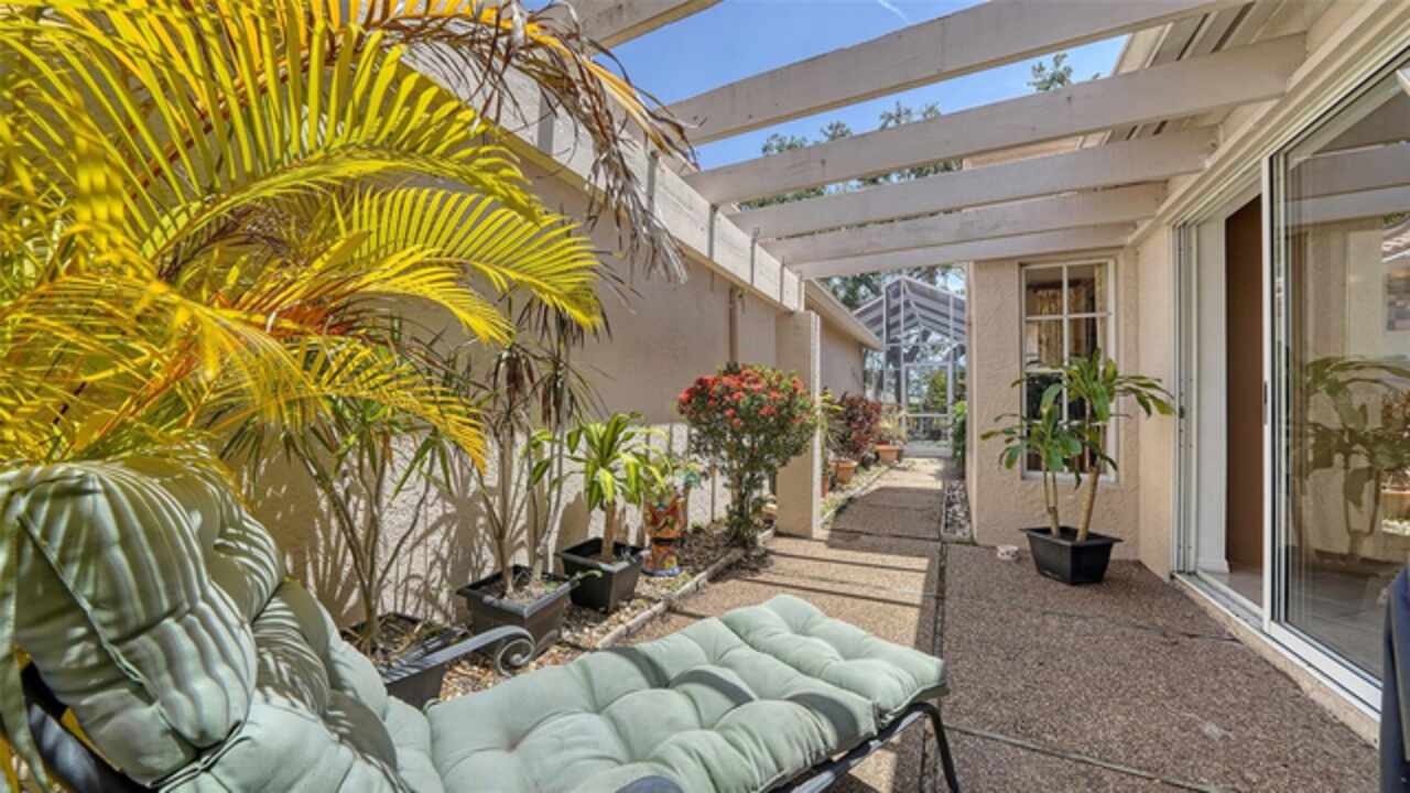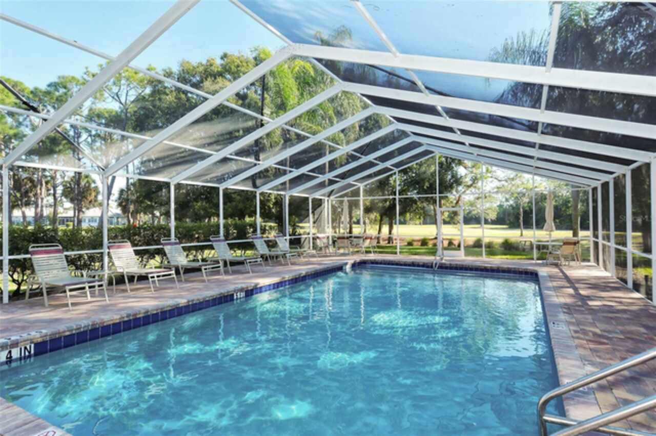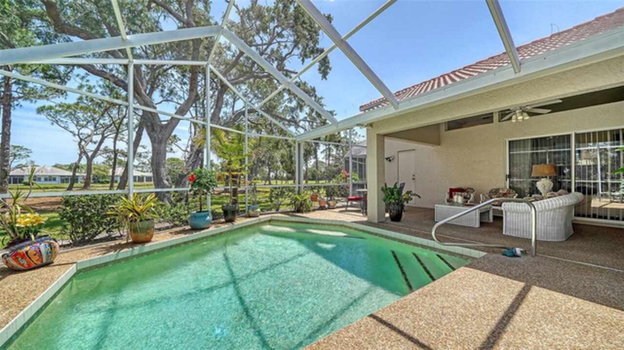 Easy living with no neighbors in sight! Maintenance-free pool home with serene golf course views in The Meadows, a park-like oasis in a thriving location. In the desirable Lyndhurst enclave, a paver driveway and gated courtyard welcome you home. Inside, you will love the cheerful ambiance with volume ceilings, expansive windows and natural light. The spacious screened-in lanai with private pool offers a retreat for cooling off after sports or enjoying a night swim under the stars. The updated kitchen features maple cabinetry, Portofino granite countertops and a charming grilling patio beneath a pergola. All adorned with tranquil golf views, near the heated community pool, and a short ride to all the fun The Meadows has to offer. The Meadows, 1, 600 park-like acres in a thriving location, is a resort lifestyle community 15 minutes from downtown. Residents enjoy 14 miles of trails, fun activities, fitness center, Junior Olympic pool, 10 pickleball courts, dining venues plus pay-to-play three 18-hole golf courses and a top-notch tennis complex. You’ll live near award-winning beaches, remarkable arts and culture, Nathan Benderson Park, Mote SEA Aquarium, Whole Foods, Trader Joe’s and The Mall at University Town Center, a world-class shopping, entertainment and dining destination. A fabulous Florida lifestyle awaits. 2025 pool pump, 2015 garage door, 2012 tile roof, 2010 air-conditioning system, above flood plain in zone X.
