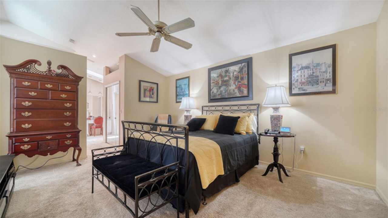 Cathedral Ceiling(s), Ceiling Fans(s), Eat-in Kitchen, High Ceilings, Living Room/Dining Room Combo, Solid Wood Cabinets, Split Bedroom, Stone Counters, Walk-In Closet(s), Wet Bar
