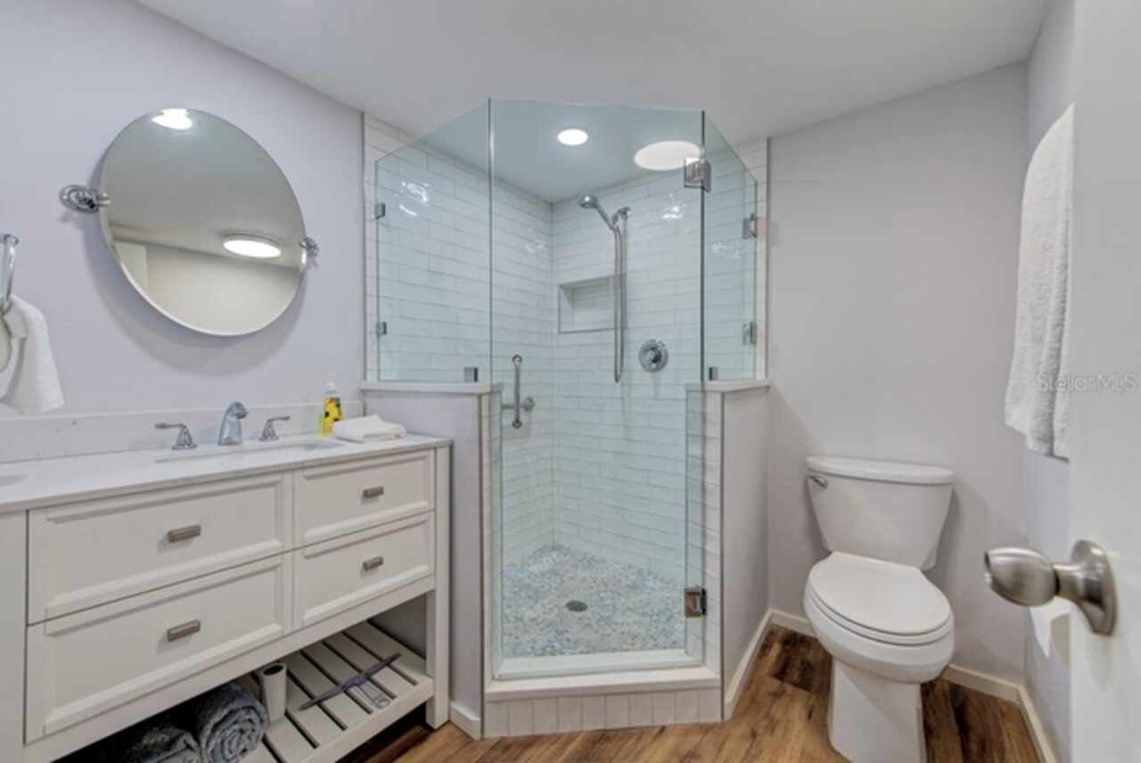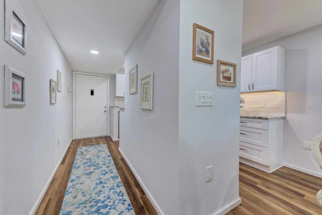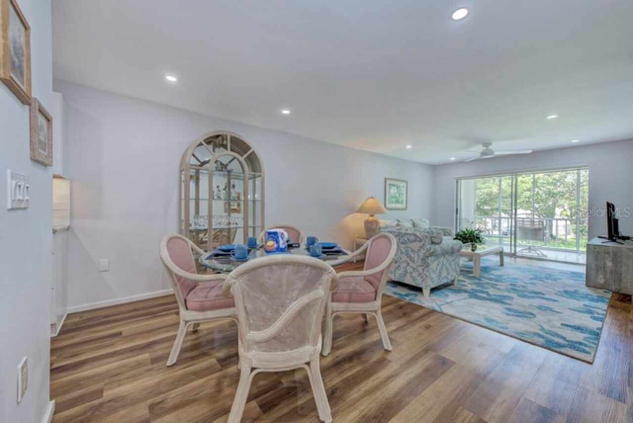 Under $200, 000 in Sarasota!! Newly renovated 2/2 second floor condo facing the pool and greenbelt for wonderful privacy and views. Almost 1, 000 square feet with new luxury vinyl flooring throughout. Quartz countertops in both baths and kitchen, new subway tile backsplash and in showers. Interior impact windows, recessed lighting with new electrical panel, all new stainless steel appliances including Bosch stackable washer and dryer. Enjoy a tiled and glassed in peaceful lanai. Save money, there is no need to own a car. Location is walkable to public transportation, restaurant, Publix, shopping, Starbucks and more. And, it is minutes to a golf course and the beautiful beaches. All buildings have elevators, and this 55 plus friendly community boasts a beautiful swimming pool, gas grills and clubhouse. HOA fees include grounds maintenance, private road, Internet and cable t.v., sewer, trash and water. AC 2016 and Water Heater 2017. New Roof - 2021 and no assessments.