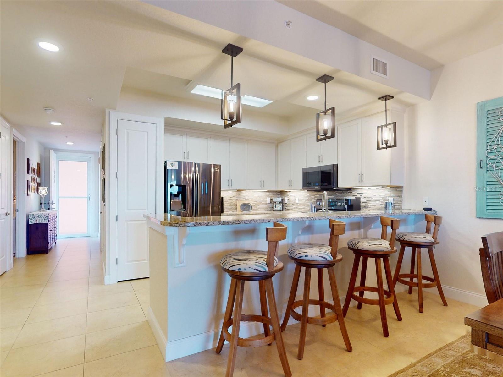 Welcome to Riverwalk – Waterfront Living at Its Finest! Experience the best of New Smyrna Beach in this stunning riverfront condo, perfectly positioned in the heart of town. Enjoy breathtaking views of the Intracoastal Waterway, vibrant sunsets, playful dolphins, passing boats, the iconic Ponce Inlet Lighthouse, seasonal fireworks, and even rocket launches—all from the comfort of your home. This exclusive floor plan is available only once per floor, offering uninterrupted water views from the kitchen, living room, primary suite, and expansive balcony. The open-concept layout creates a warm, inviting atmosphere the moment you walk in. The chef’s kitchen features granite countertops, white cabinetry, a breakfast bar, and a large pantry, flowing seamlessly into the dining area with built-in shelving and a bright, airy living room. The primary suite is a true retreat, complete with sliding glass doors to the balcony, a spacious walk-in closet, and a luxurious ensuite bath with dual vanities, a walk-in shower, and a jetted jacuzzi tub. Additional highlights include: A large laundry room with extra storage and utility sink. A generous balcony perfect for relaxing or entertaining, with an electric roll-down shade for sun and bug protection. Easy access to Canal Street, Flagler Avenue, and the beach—walk, bike, or golf cart your way around town to all the planned events, , art shows, car shows, farmers market and the best dining in town! Riverwalk offers resort style amenities with Clubhouse, fitness center, theatre room, fire pit, Bocce, Pickle ball, Tennis, shuffleboard, grills. This is more than a condo—it's a lifestyle. Come home to Riverwalk and embrace the beauty of coastal living. Call me today to schedule your personal tour!