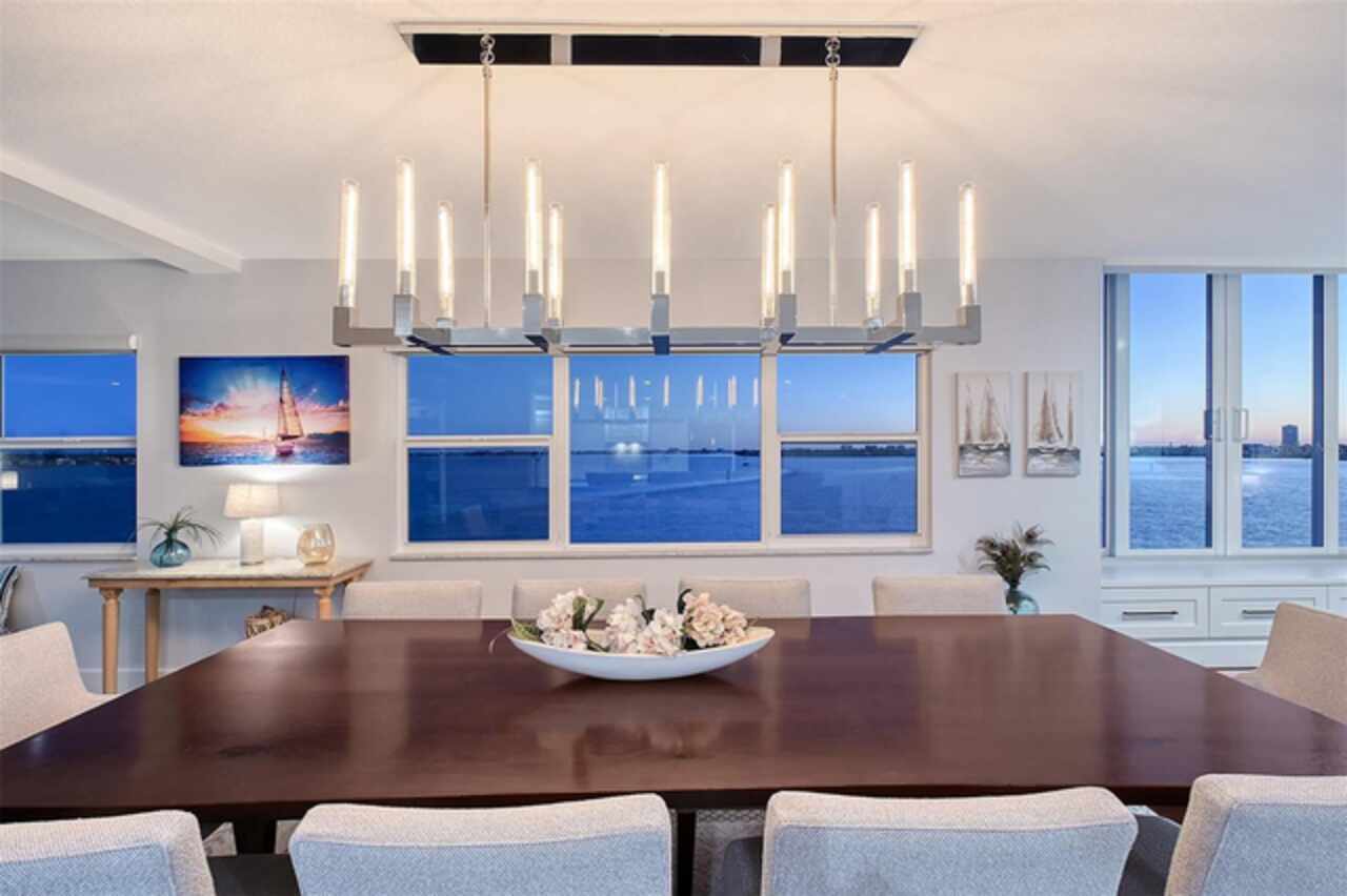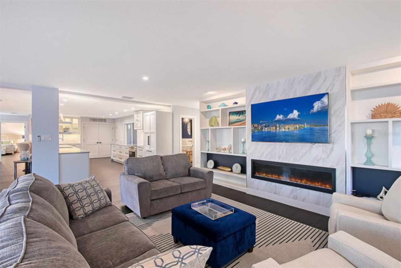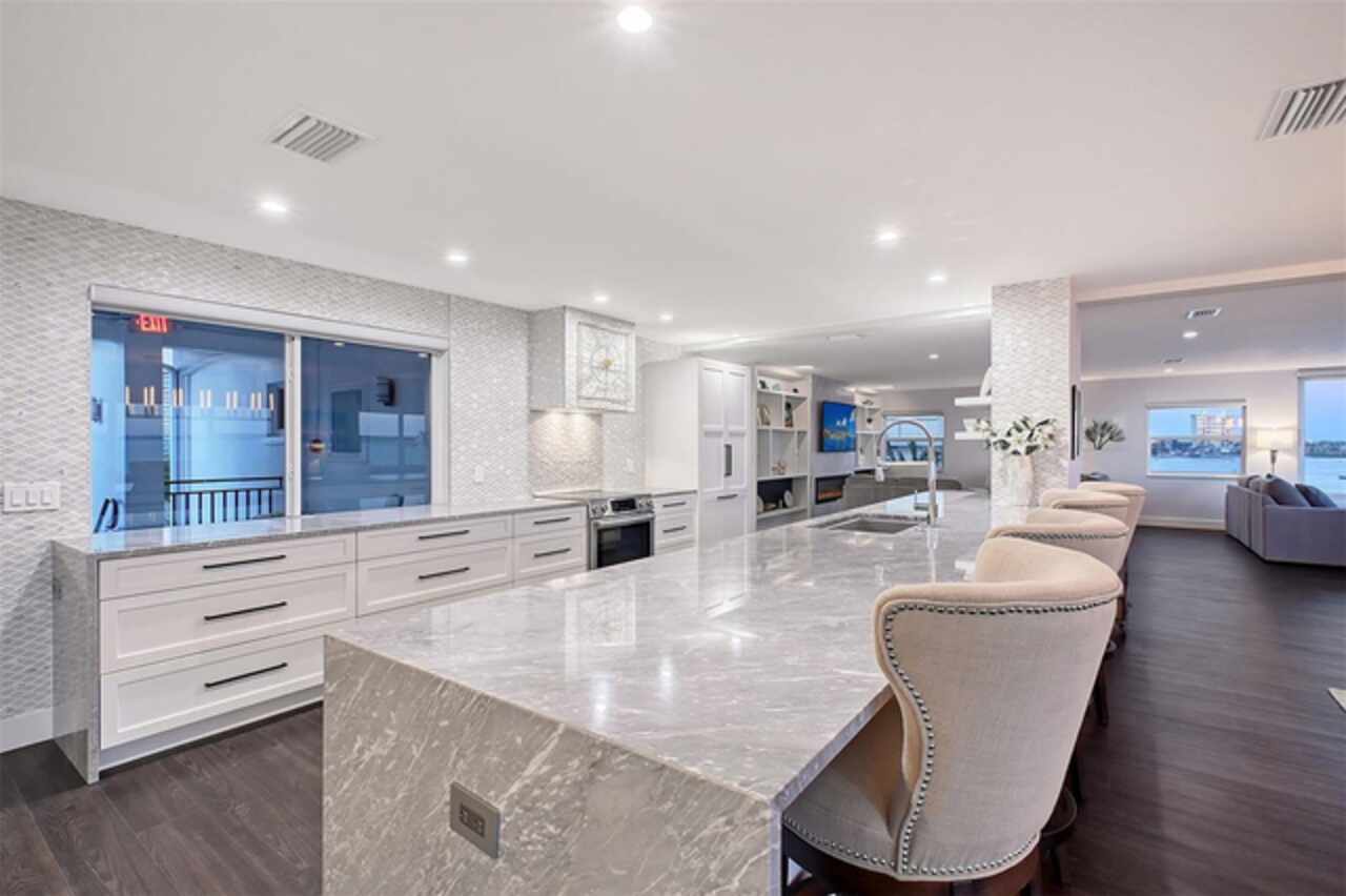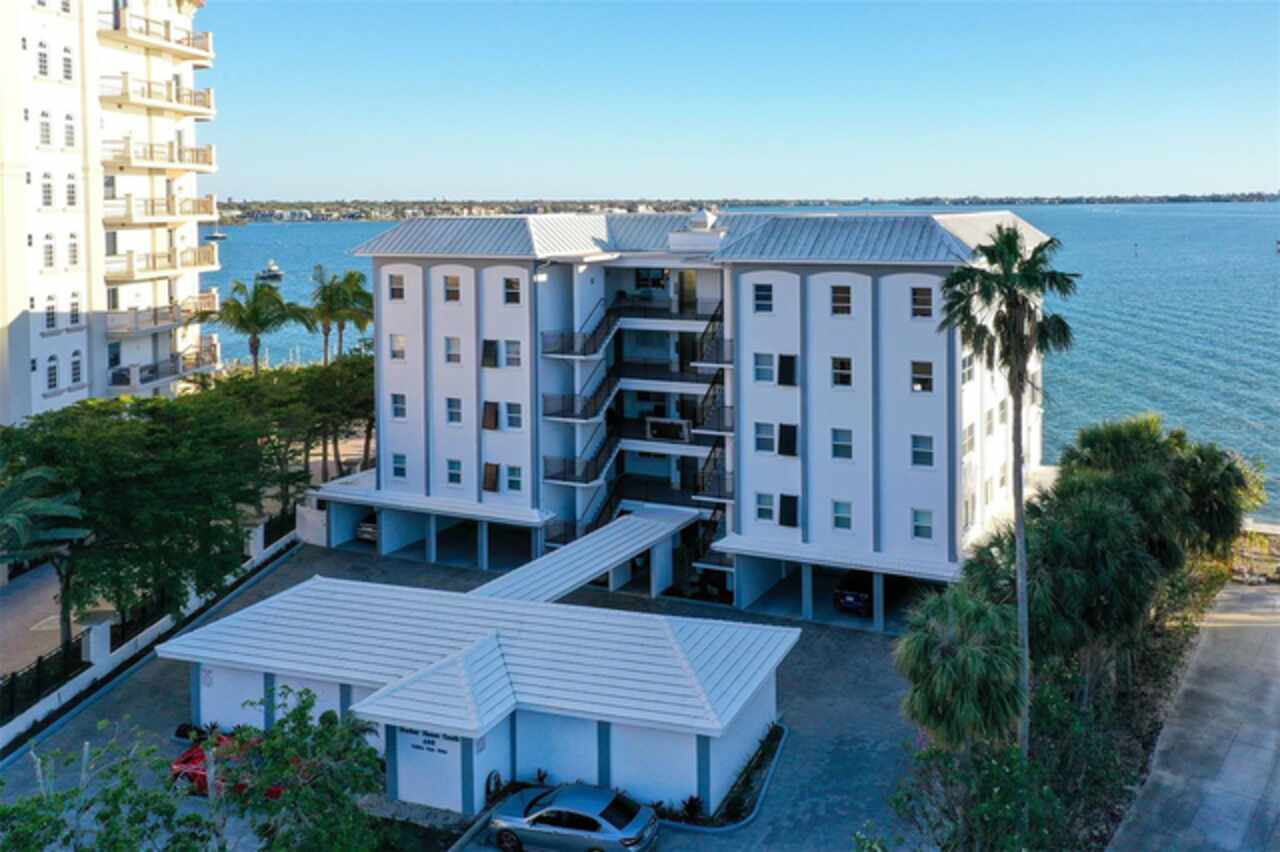 One of the most unique waterfront penthouses on Golden Gate Point in downtown Sarasota, this fully renovated condo was combined from two units and designed with an open floor plan to maximize the best views in the community. At the tip of Golden Gate Point, you will enjoy 180-degree panoramic views from the city to the marina, to the Ringling Bridge with sunrises, sunsets, marine life and boating activity. With nearly 3, 000 square feet and 75 linear feet of living space, there is plenty of room for relaxing or entertaining while enjoying the amazing views of the bay from the floor-to-ceiling windows. With three bedrooms and three-and-a-half baths, this is the condominium for families or for hosting guests. The main bedroom suite features waterfront views and includes a large closet with built-ins and an upgraded bath with dual vanities, soaking tub and shower. The gourmet kitchen features an expansive granite island with Bosch appliances and looks out toward the dining area with windows providing endless water views. A split floor plan, the other side of the condominium features an en-suite bedroom, second guest bedroom, full bath, half bath, laundry and utility room. The spacious front porch is a great place to enjoy the outside with convenient access to the elevator. Two parking spaces with a storage closet come with this condominium and are conveniently under the building. The location doesn't get much better than this, just a few minutes to Marina Jacks and downtown Sarasota and less than 10 minutes to St. Armands Circle and Lido Beach. Don't miss this opportunity to own a one-of-a-kind modern renovated condominium with some of the best views on Golden Gate Point.