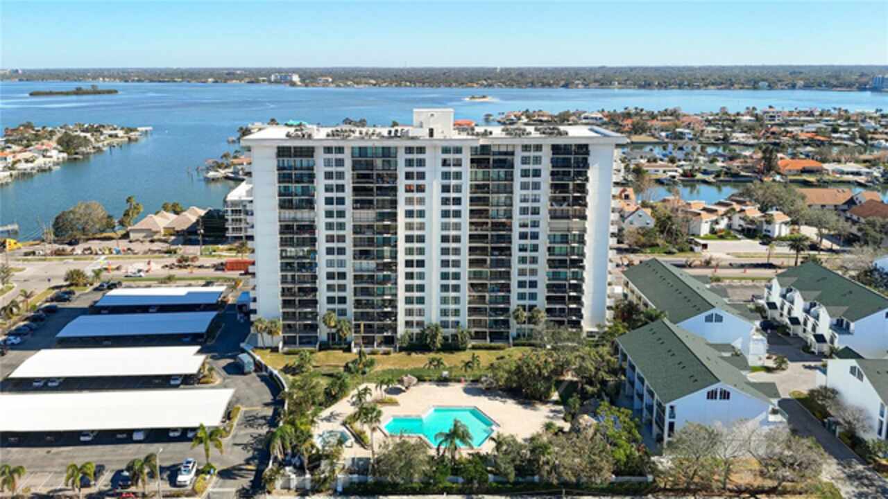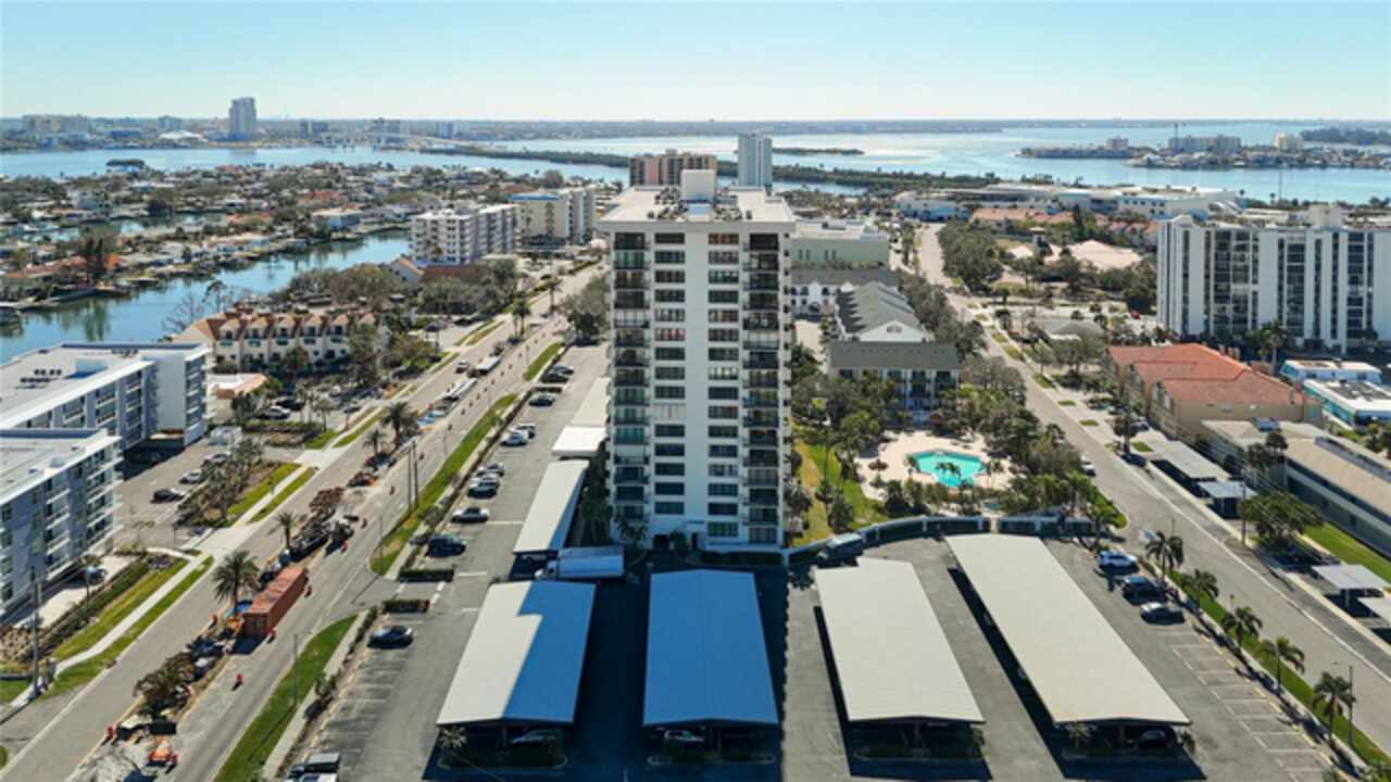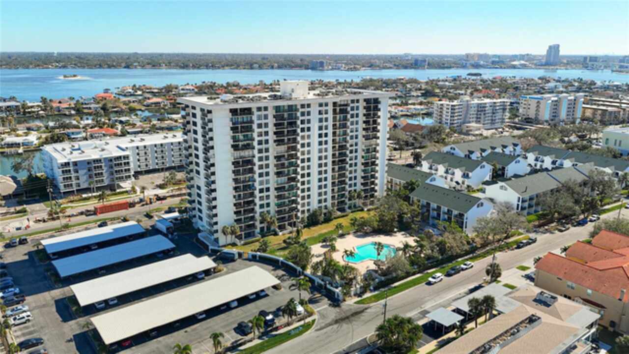 PROPERTY CAN BE FINANCED! Welcome to Clipper Cove in Island Estates! Experience the best of Clearwater Beach with this beautiful 2 bedroom, 2 bath full updated condo. Located on the 14th floor, this condo offers breathtaking views of the Intercoastal Waterway from your private balcony. Master bedroom features East facing views, 2 large closets & an en-suite bathroom. Open kitchen features a solid stone countertop breakfast bar area for additional dining or entertaining space/seating. Slider doors and windows replaced in 2022. Immerse yourself in the tropical resort-style area of the over-sized, heated swimming pool with jacuzzi, dine & unwind under charming tiki huts, sizzle up a feast on the BBQ grills. Additional building amenities include a party center with billiard table, storage unit (currently being renovated), exercise room with showers & dry saunas for unwinding. A prime placement parking spot, just steps away from the front entrance, conveys with this unit. Short distance to Marina & world-renowned Clearwater Beach that offers boating, water sports, dining, shopping, live entertainment, festivals & much more. Island Estates is an exclusive self-contained community & property is in close proximity to grocery store, pharmacy, banks, restaurants, dry cleaners, nail salons & more. Clipper Cove is located on the Jolley Trolley and public transportation routes & near the Clearwater Marine Aquarium. There is a park/play area around the corner as well. This condo offers the perfect opportunity to enjoy a getaway & all that Island Estates & the beaches have to offer.
