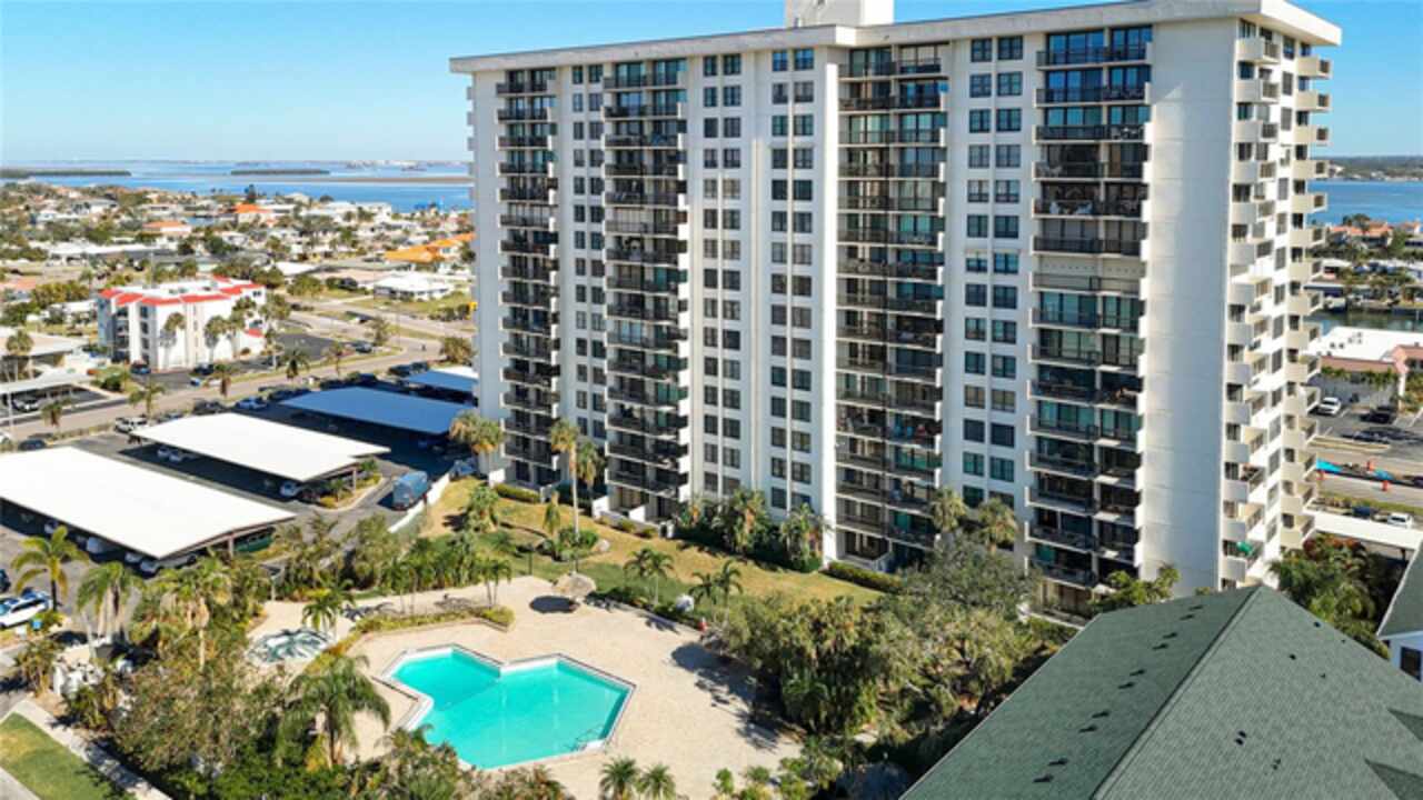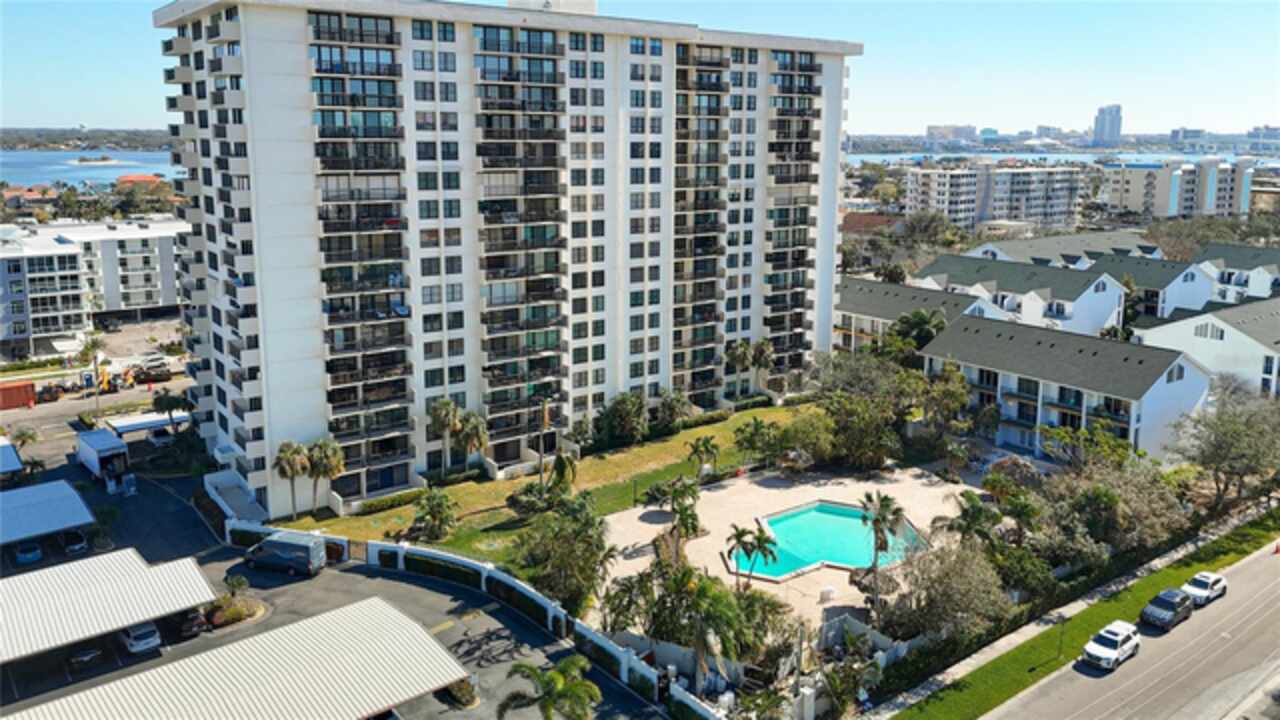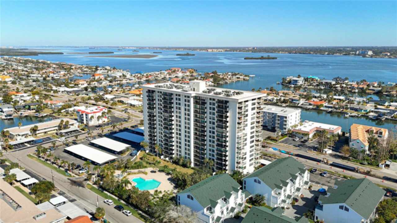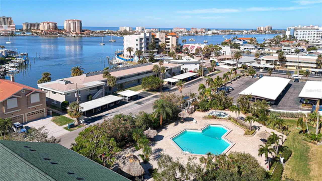 PROPERTY CAN BE FINANCED! Welcome to Clipper Cove in Island Estates! Experience the best of Clearwater Beach with this beautiful 2 bedroom, 2 bath full updated condo. Located on the 14th floor, this condo offers breathtaking views of the Intercoastal Waterway from your private balcony. Master bedroom features East facing views, 2 large closets & an en-suite bathroom. Open kitchen features a solid stone countertop breakfast bar area for additional dining or entertaining space/seating. Slider doors and windows replaced in 2022. Immerse yourself in the tropical resort-style area of the over-sized, heated swimming pool with jacuzzi, dine & unwind under charming tiki huts, sizzle up a feast on the BBQ grills. Additional building amenities include a party center with billiard table, storage unit (currently being renovated), exercise room with showers & dry saunas for unwinding. A prime placement parking spot, just steps away from the front entrance, conveys with this unit. Short distance to Marina & world-renowned Clearwater Beach that offers boating, water sports, dining, shopping, live entertainment, festivals & much more. Island Estates is an exclusive self-contained community & property is in close proximity to grocery store, pharmacy, banks, restaurants, dry cleaners, nail salons & more. Clipper Cove is located on the Jolley Trolley and public transportation routes & near the Clearwater Marine Aquarium. There is a park/play area around the corner as well. This condo offers the perfect opportunity to enjoy a getaway & all that Island Estates & the beaches have to offer.