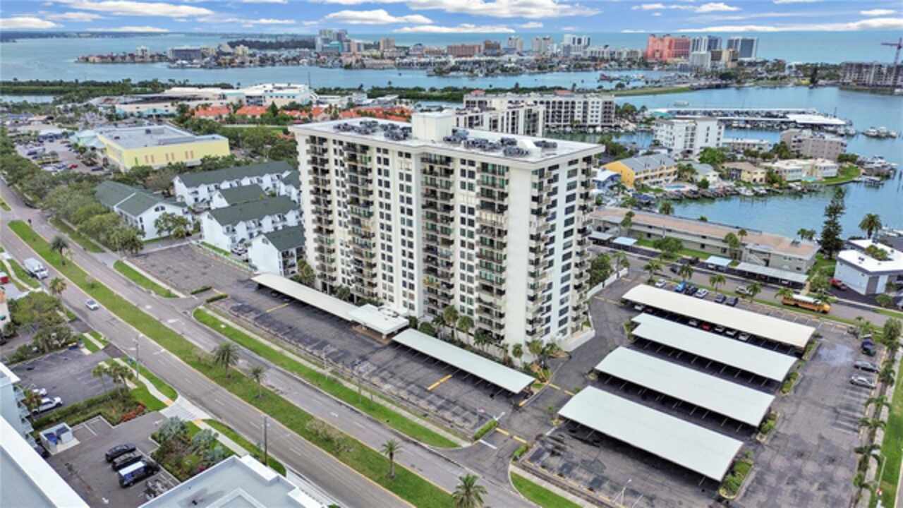 Experience coastal living at its finest in this beautiful 2-bedroom, 2-bath condo in the sought-after Starboard Tower on Island Way in Clearwater. Perfectly positioned on the 2nd floor, this home offers sweeping views of the resort-style pool and breathtaking sunsets — all visible from every room. Inside, the open floor plan is a spacious living area flooded with natural light and flows seamlessly into a well-appointed kitchen featuring ample cabinetry and the perfect layout for entertaining or casual meals. Both bedrooms are generously sized, providing peaceful retreats with serene views. The primary suite includes a large closet and a private ensuite bath with a walk-in shower. The condo includes a washer and dryer conveniently located in the unit making this condo move-in ready. Step out onto your private balcony to relax and enjoy the lush tropical landscaping and tranquil setting. Living at Starboard Tower offers more than a home — it’s a lifestyle. Residents enjoy a host of amenities including a sparkling heated pool, fitness center, and inviting community spaces. The building features controlled access for added security, along with dedicated parking for residents and guests. Located just minutes from world-famous Clearwater Beach, you'll have easy access to top-rated dining, shopping, and entertainment. Whether you're seeking a full-time residence or a luxurious vacation retreat, this condo offers the perfect blend of comfort, convenience, and resort-style living. Schedule your private tour today and see what makes this waterfront gem truly special.
