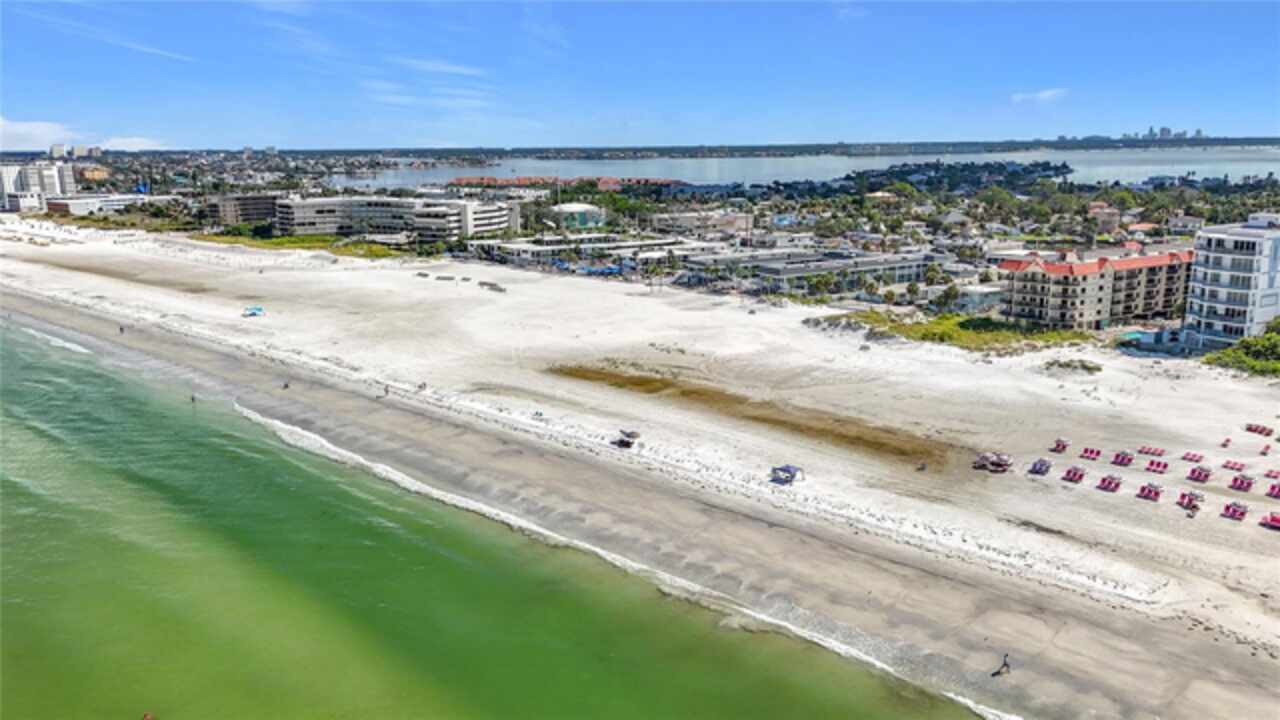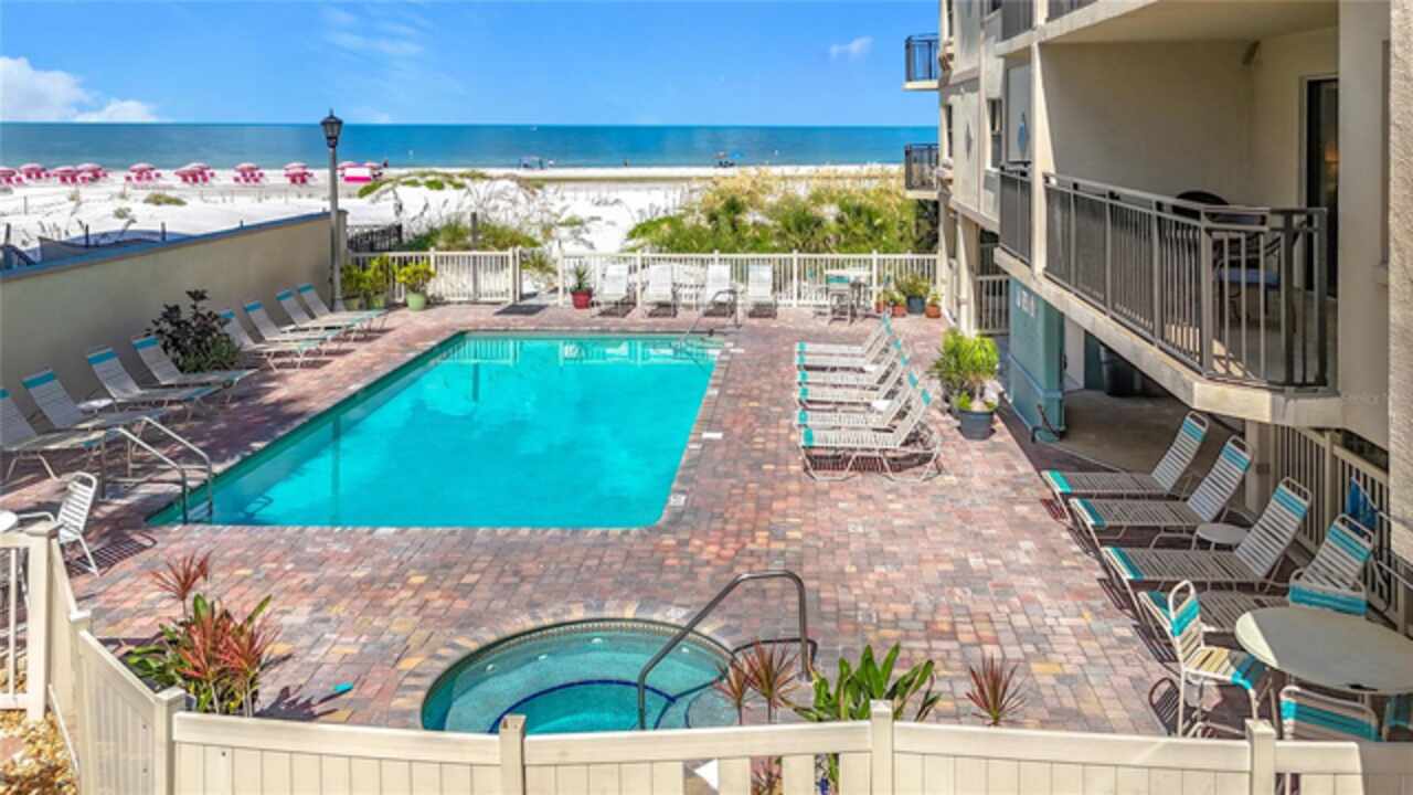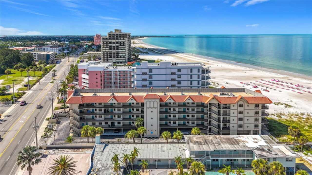 SELLERS ARE OPEN TO WORK WITH ALL OFFERS AND READY TO CLOSE QUICKLY! Perfect vacation home, investment opportunity, turn key and totally renovated gulf view condo with immediate rental income. This is the sought after Boutique District of St Pete Beach, noted for relaxing, toes in the powdery sand and situated right on the sparkling waters of the Gulf of Mexico. This condo is light and airy, open floor plan, roomy kitchen with large breakfast bar, comfy primary bedroom with ensuite bath. Guest room is right next to 2nd bath and the in unit washer and dryer. From this beautifully updated condo enjoy morning coffee with a gulf view on your private balcony, come down to relax by the pool and jacuzzi, take a walk down the private path to the beach and enjoy applause worthy sunsets right from your vacation home. Shopping, dining and entertainment is all nearby and both airports are easily accessible from our interstate highway system. This condo is also one of the deeded parking space units, protecting your vehicle under the building and out of the elements in space #20. Vistas on the Gulf is a reinforced concrete and steel structure that is built on pylons and a 6 foot raised tract of beach front land. Recent weather and water had little effect on the building making this a secure investment. The building, as of Sept. 2025, has a new roof, new elevator, fire panel and alarm system and new balcony floor treatments. Refresh your spirit and renew your soul with this beautiful ownership opportunity on covetted Saint Pete Beach.