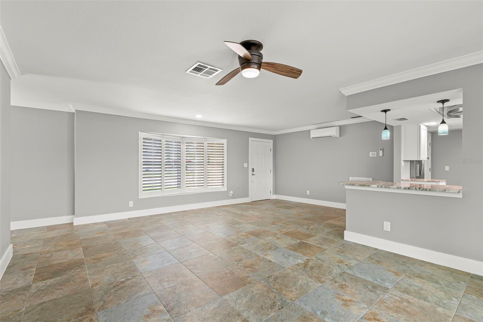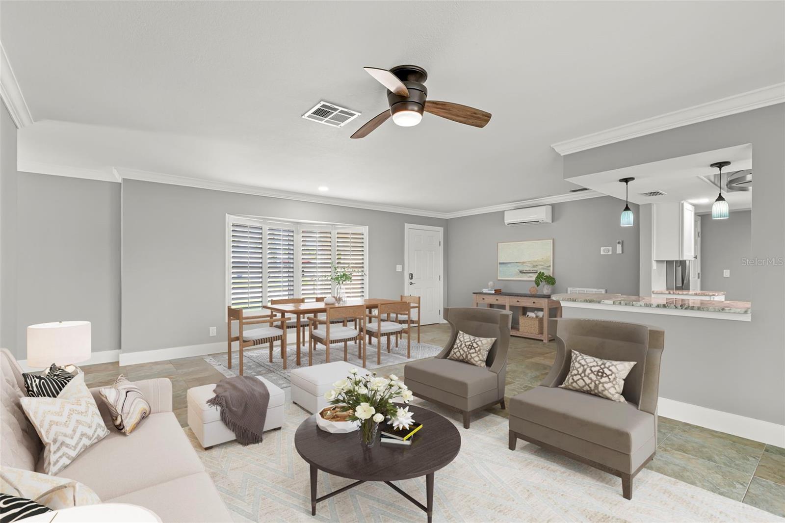 Ceiling Fans(s), Crown Molding, Eat-in Kitchen, High Ceilings, Living Room/Dining Room Combo, Open Floorplan, Primary Bedroom Main Floor