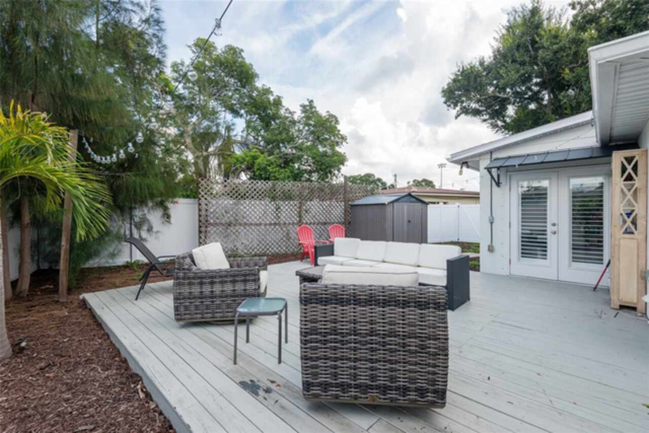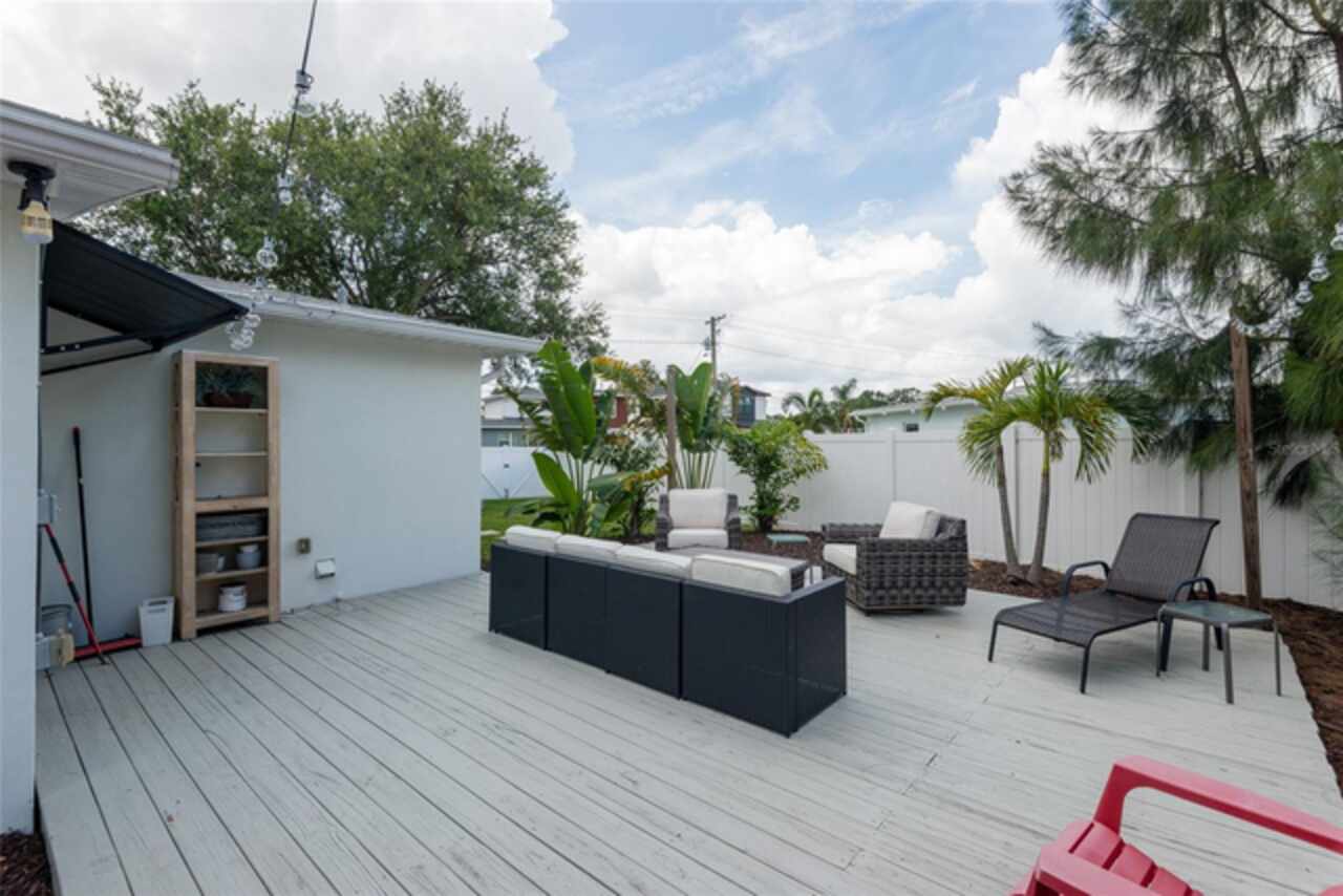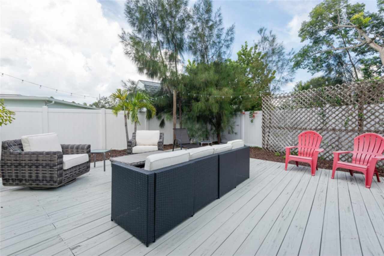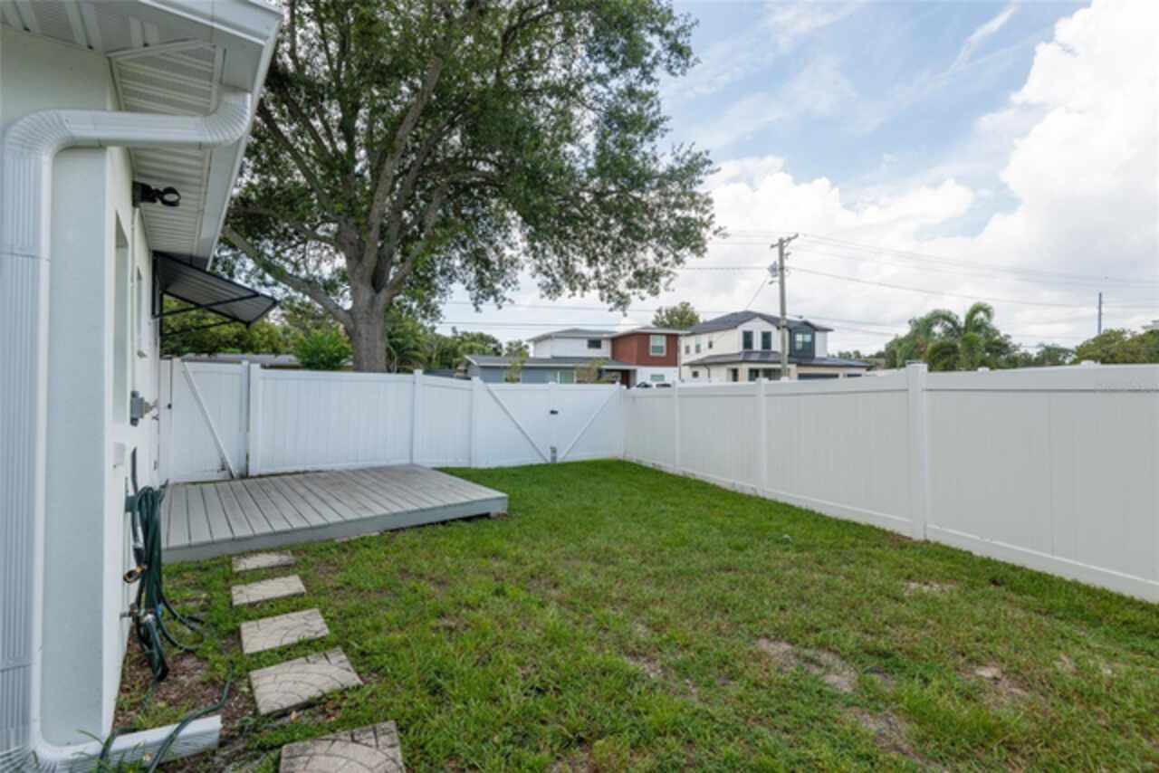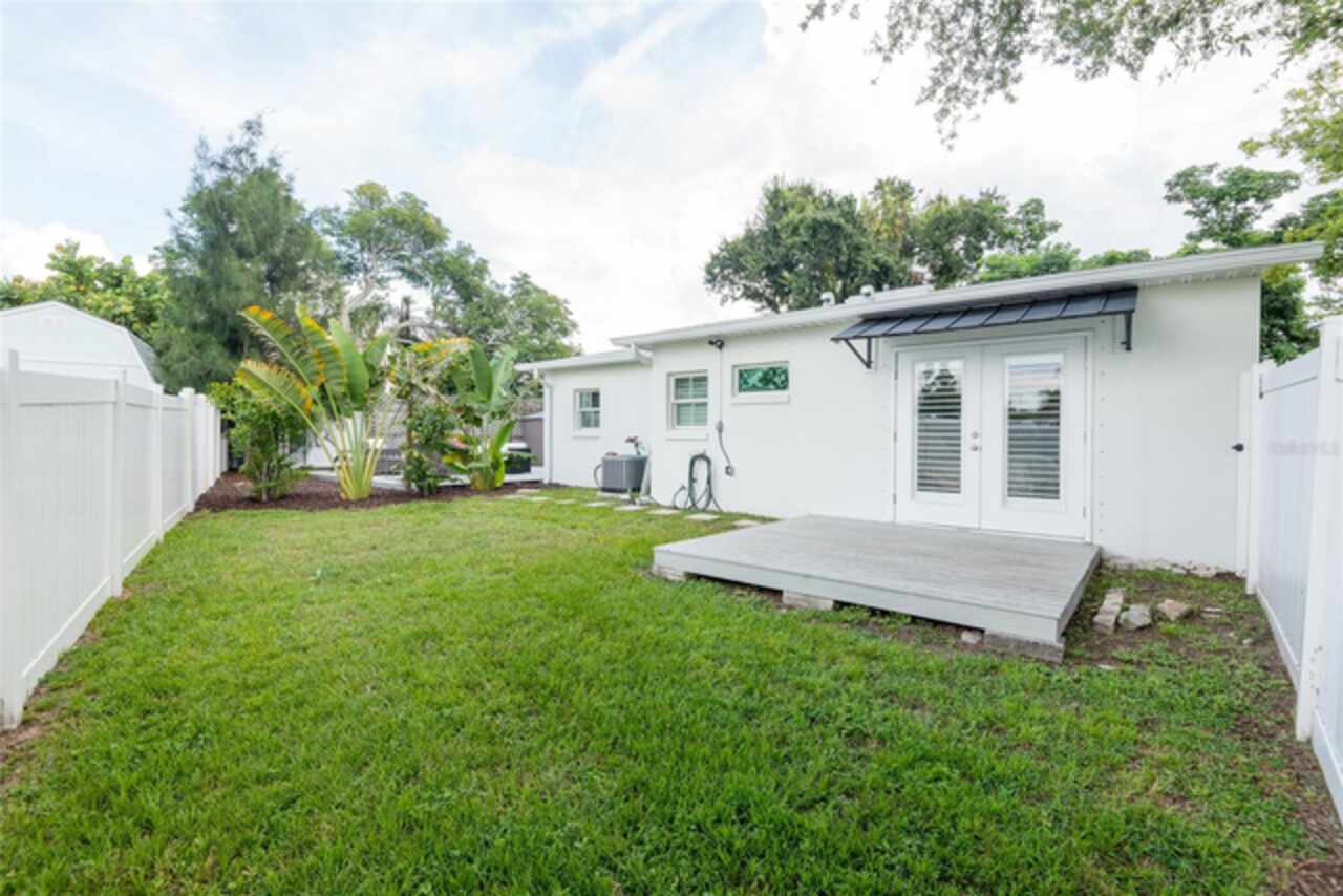 Under contract-accepting backup offers. Beautifully updated in 2018, this 3-bedroom, 2-bathroom home sits on a spacious 77' x 105' corner lot in a quiet neighborhood. Features include a circular driveway and an open-concept layout connecting the kitchen, dining, and living areas. The kitchen offers shaker cabinets, quartz countertops, and stainless steel appliances. French doors off the dining room open to a generous backyard deck—ideal for entertaining. The split floor plan offers privacy, with the primary suite featuring a walk-in closet, modern en-suite bath, and its own private deck. Two additional bedrooms and a renovated full bath are located on the opposite side of the home. Additional highlights include updated landscaping, mature shade trees, a dedicated laundry room, dual HVAC systems for enhanced efficiency, and side yard access with space to store a boat. Conveniently located near parks, top-rated schools, and major roadways including Gandy Blvd, Dale Mabry Hwy, and the Selmon Expressway.